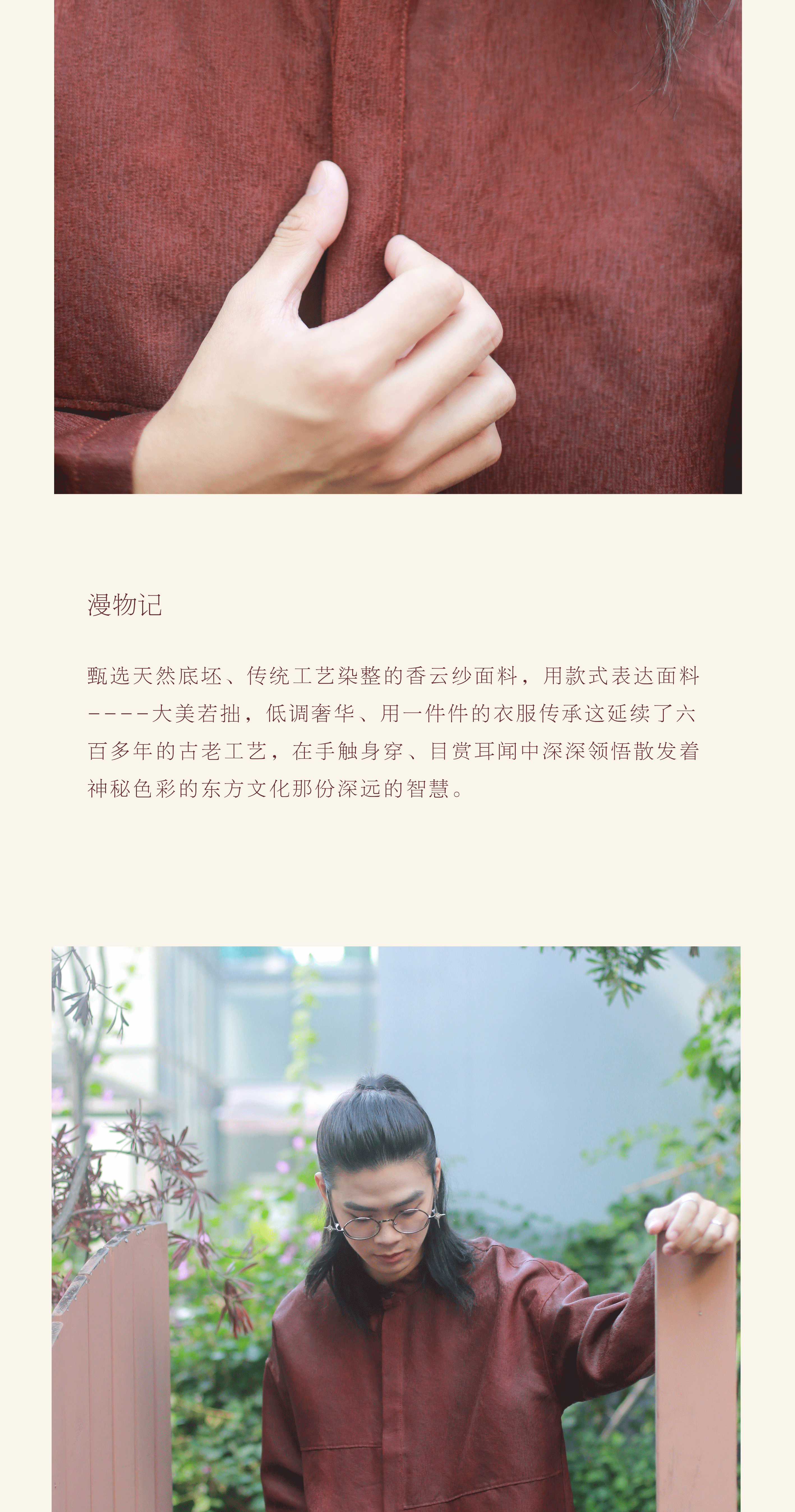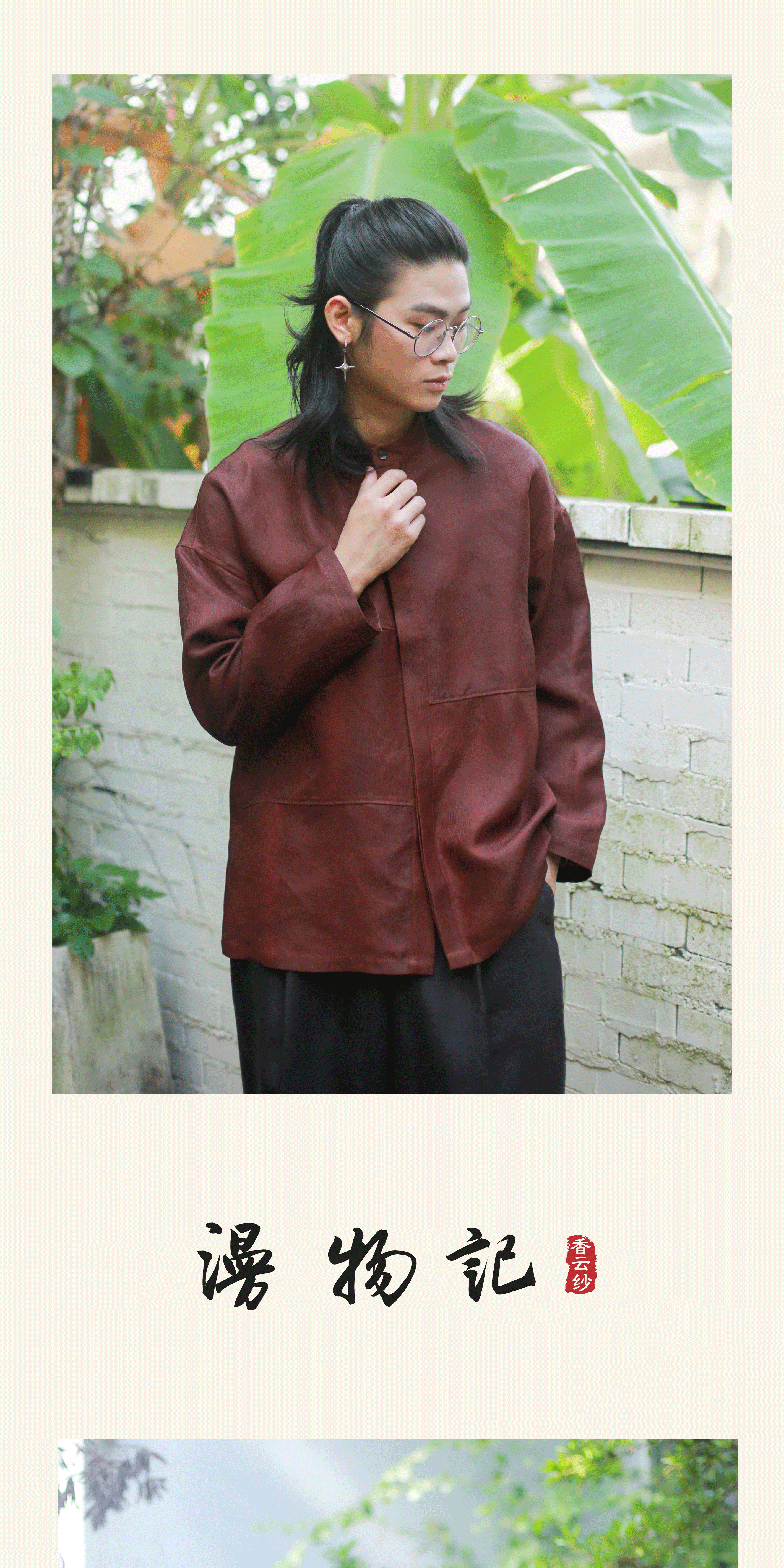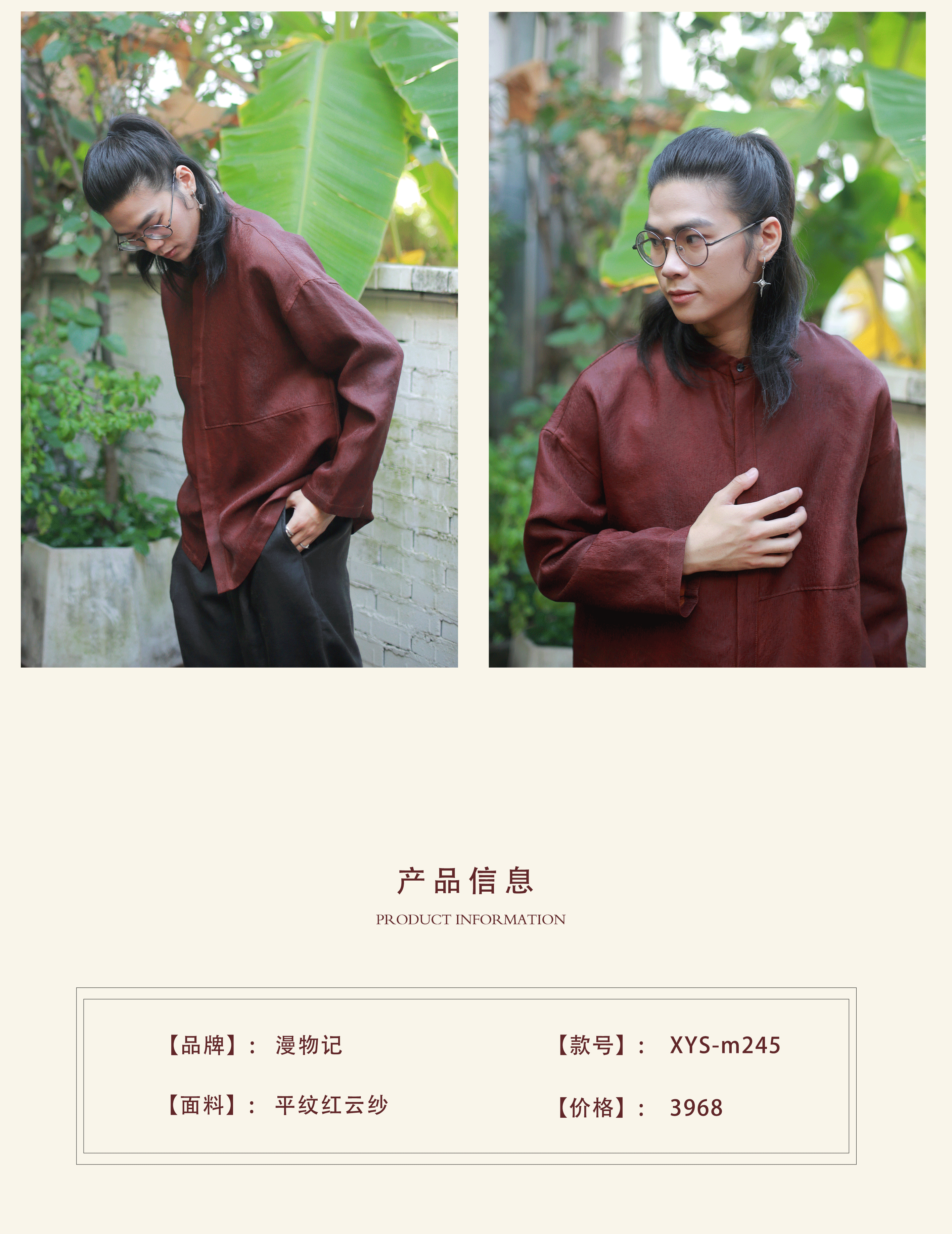 漫物记平纹红云纱立领暗门襟衬衫M245