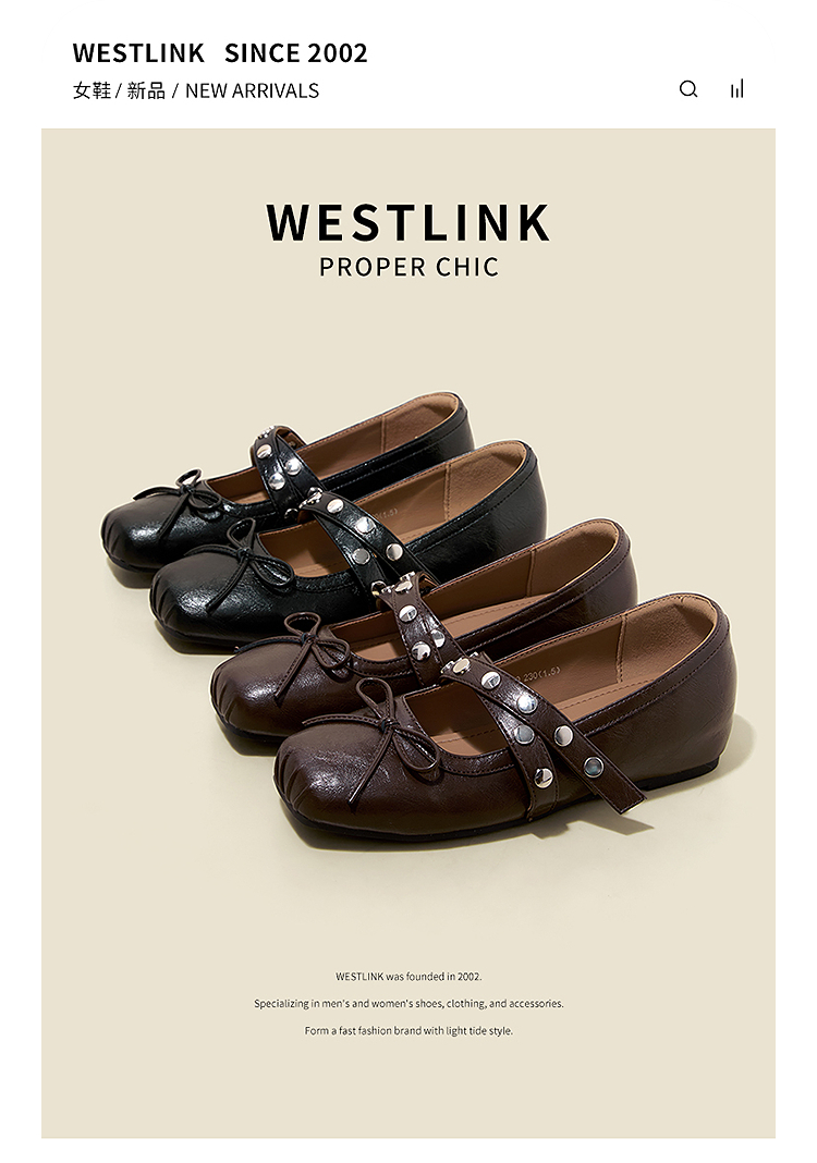 西遇玛丽珍女鞋2026春季新款蝴蝶结晚晚鞋浅口芭蕾方头单鞋V0166210