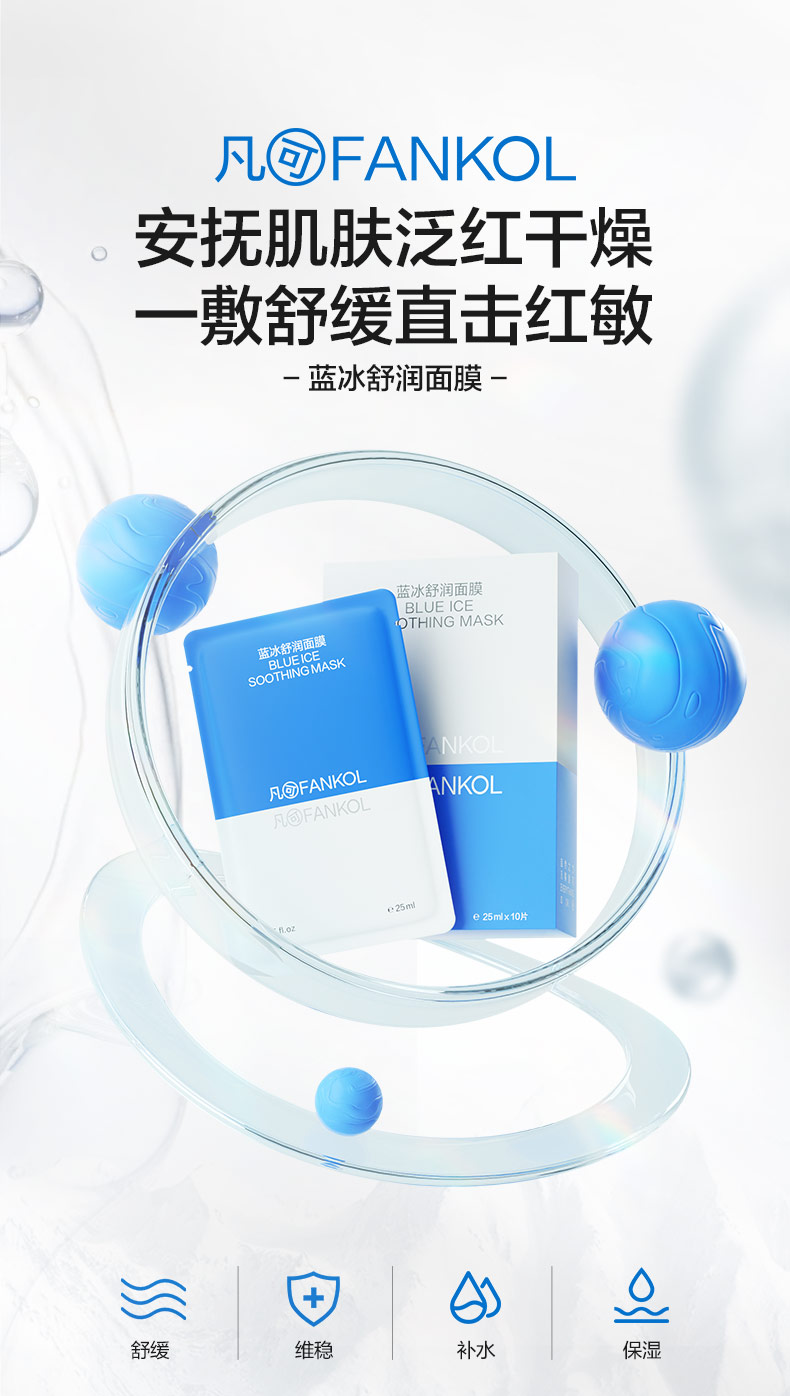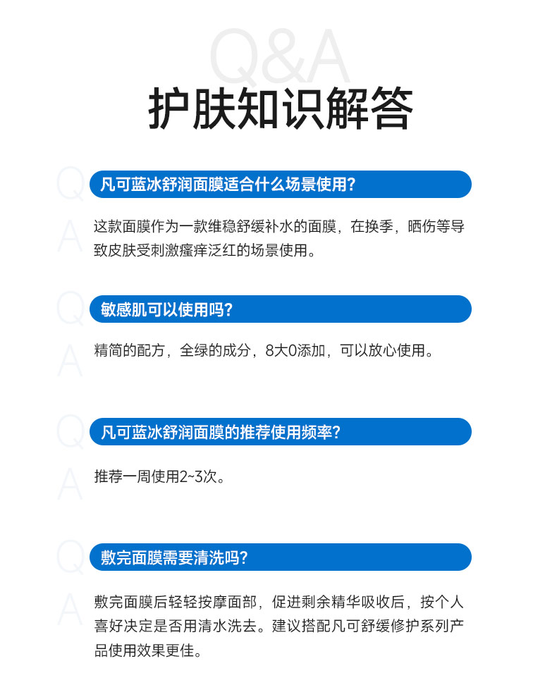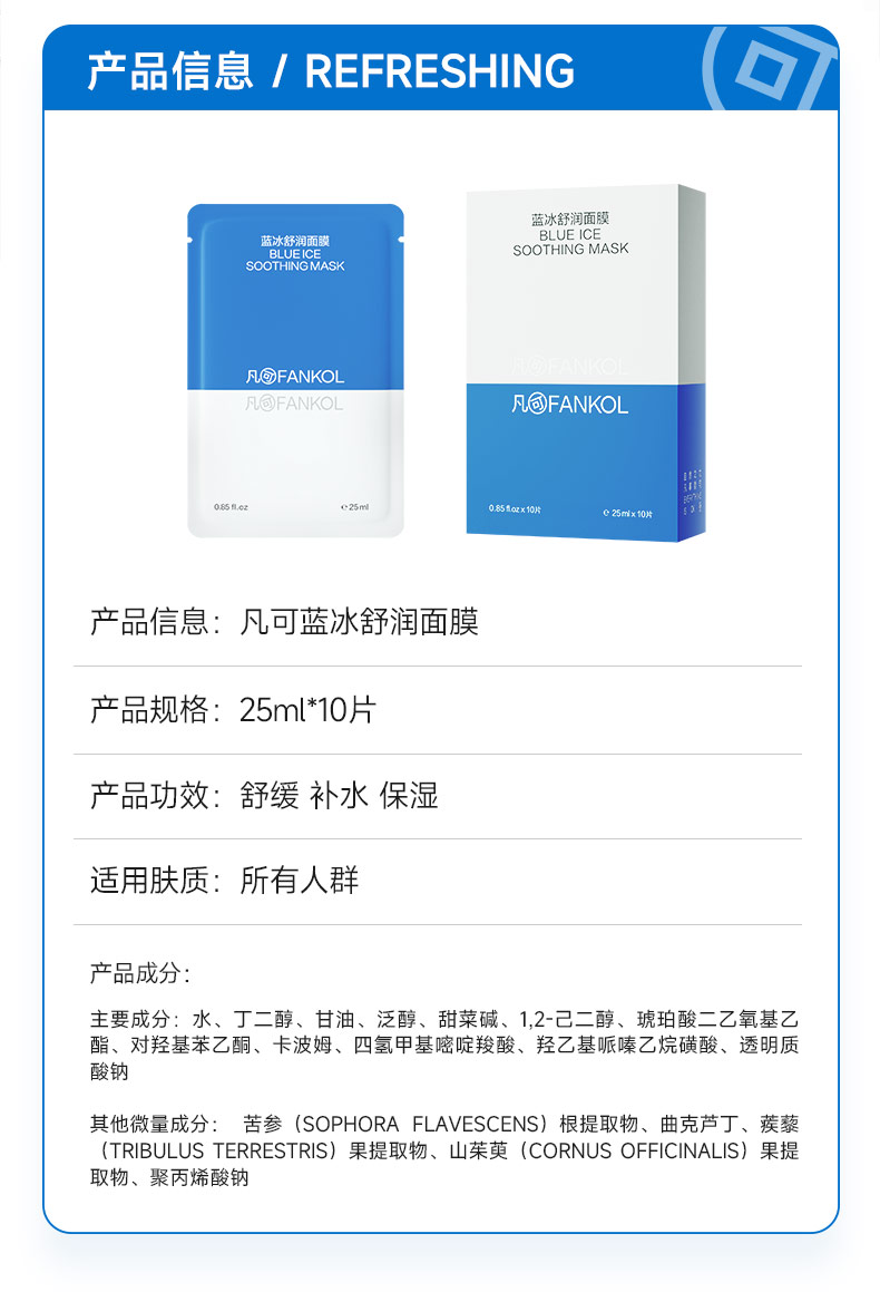 凡可蓝冰舒润面膜舒缓补水保湿非美白男女贴片面膜晒后舒缓官方