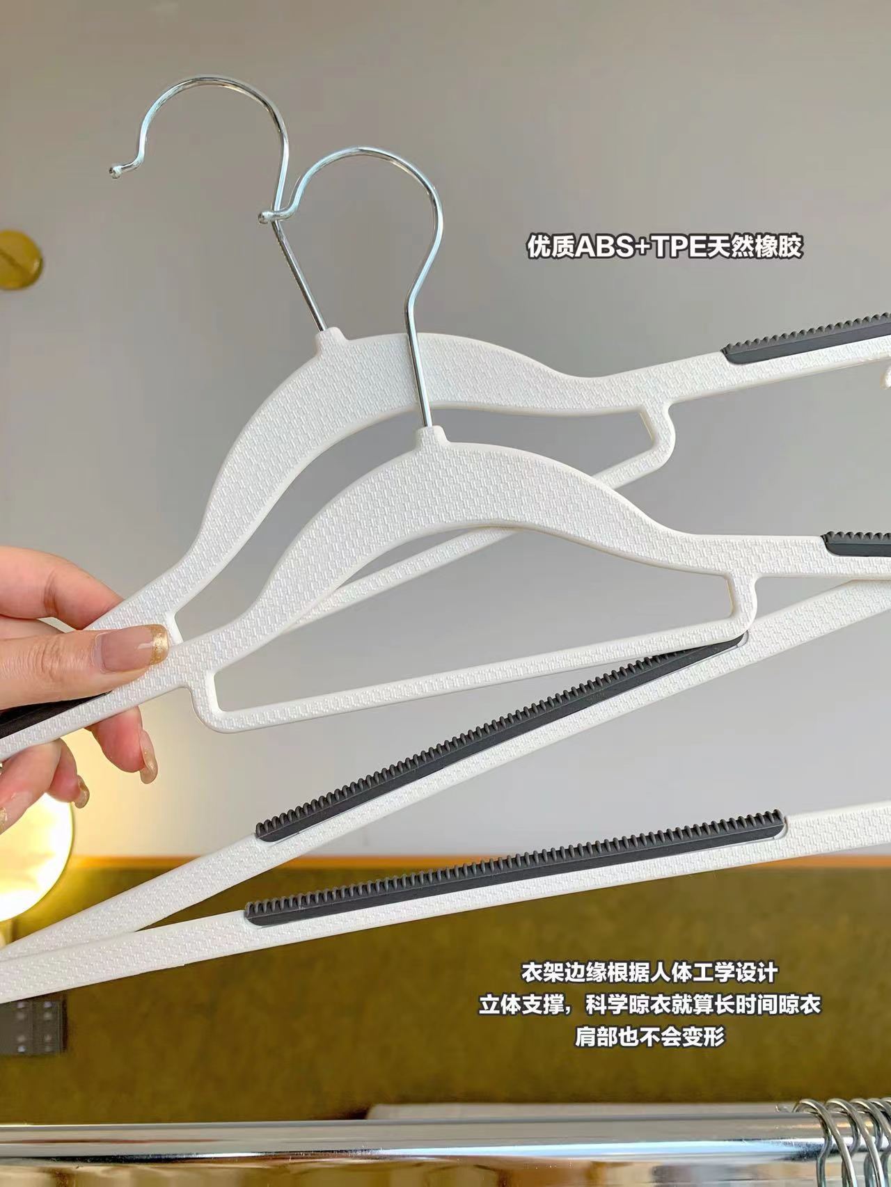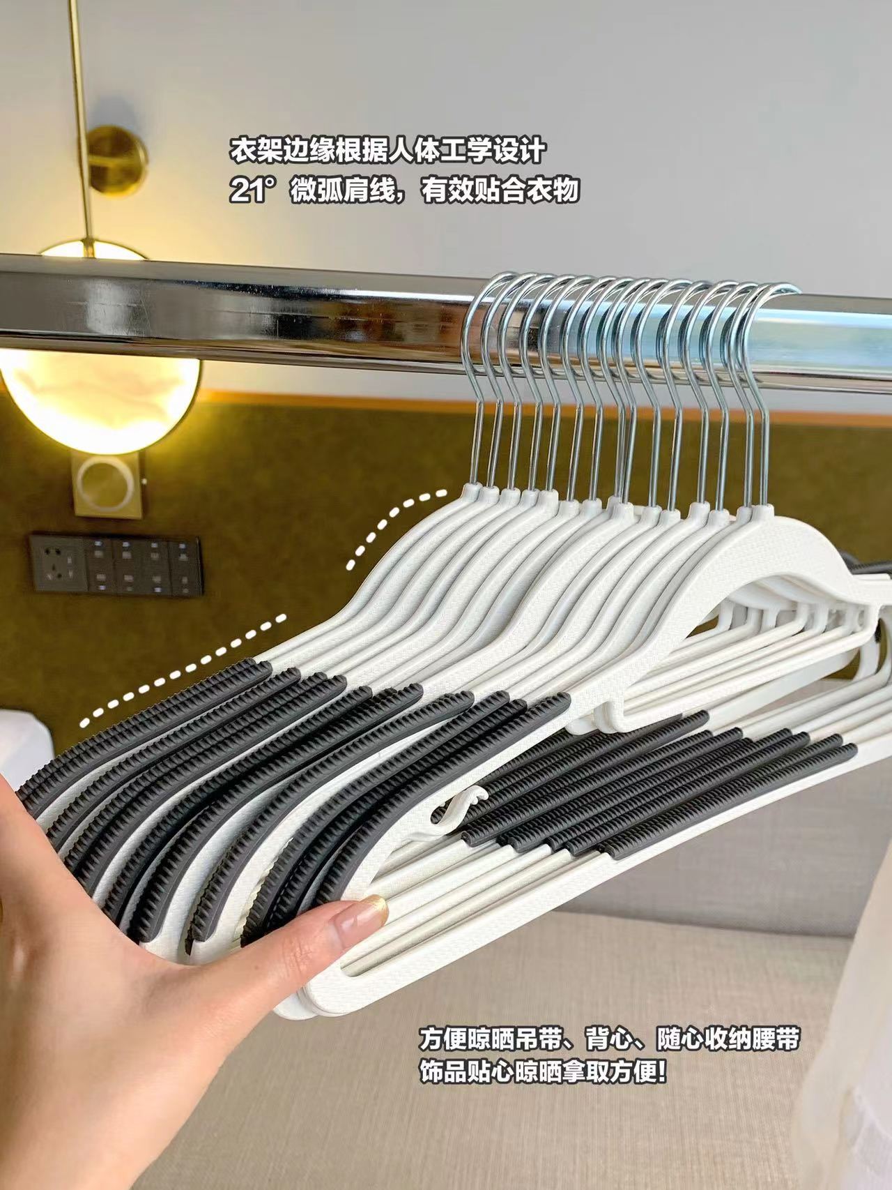针对亚洲人体型肩膀弧形设计,贴合衣服挂衣不起包、不变形,衣物不易滑落!