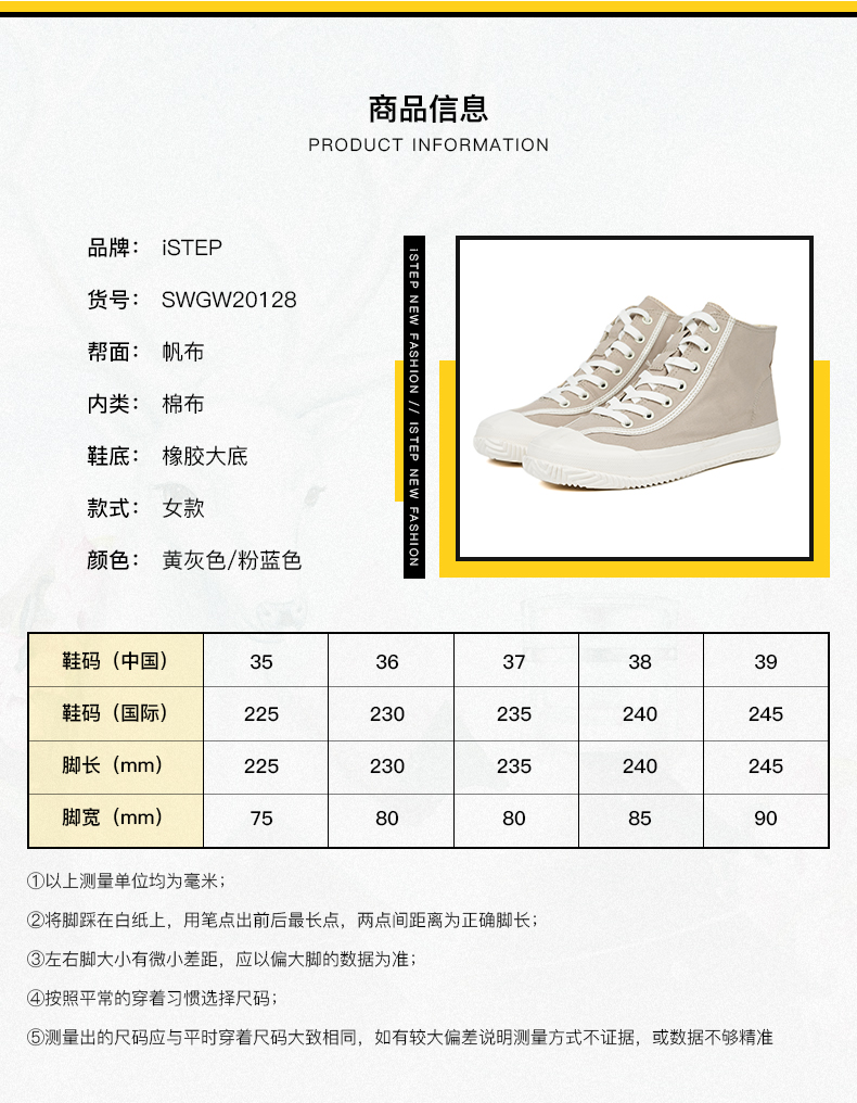 iSTEP鞋子女2023春季新品高帮帆布鞋百搭学院风潮流板鞋小白鞋