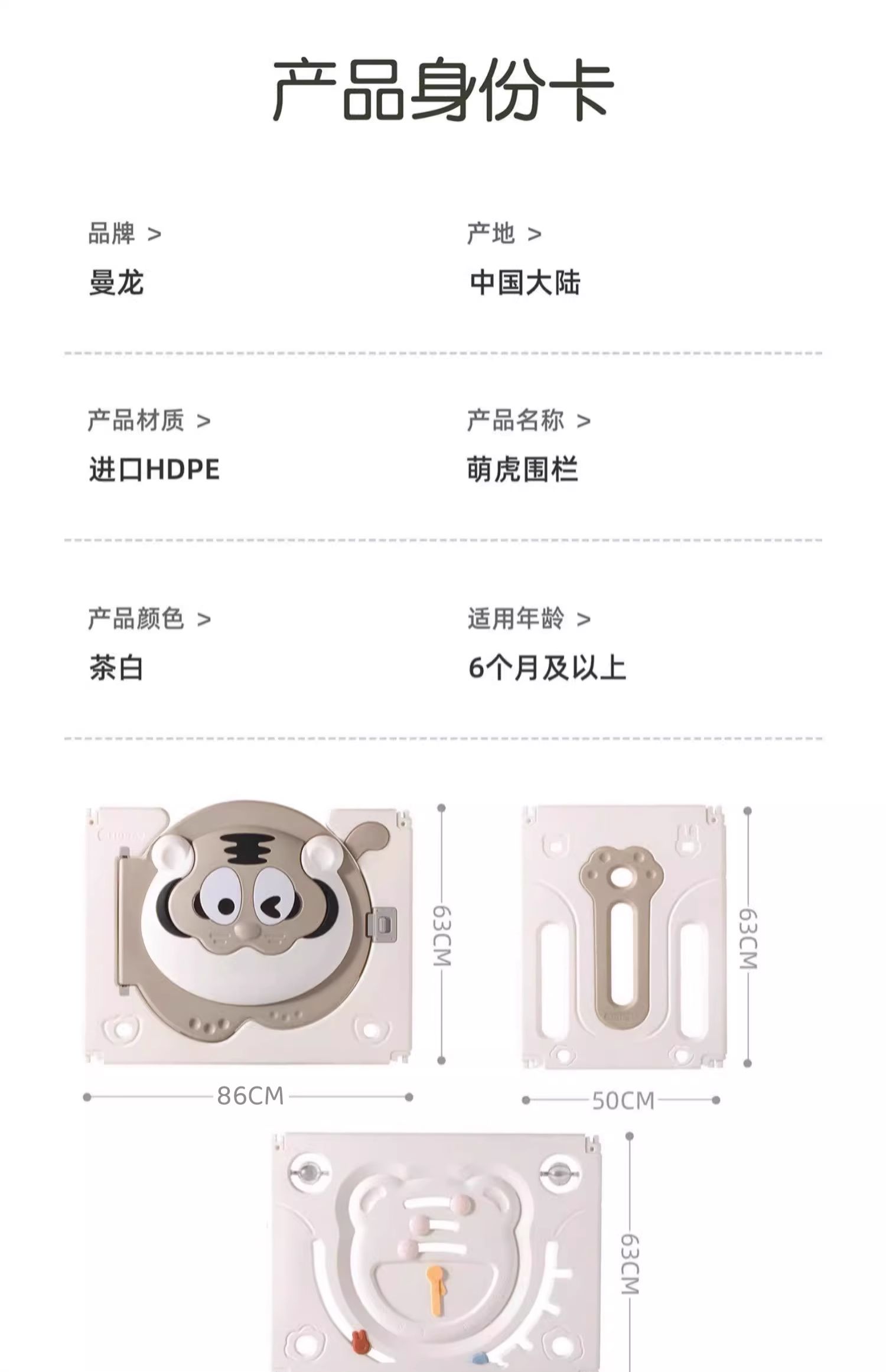 【冬日暖拥】曼龙mloong萌虎游戏围栏婴儿防护栏宝宝爬爬垫儿童地上室内家用客厅栅栏