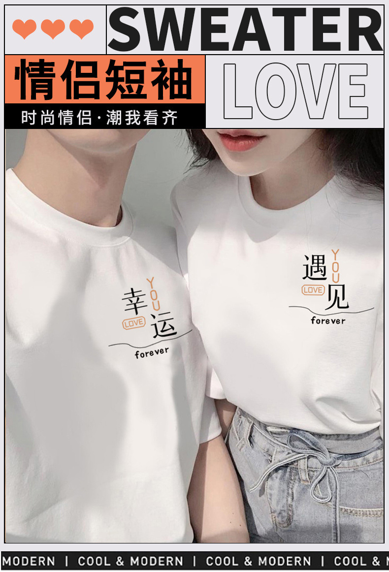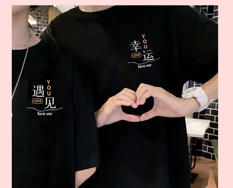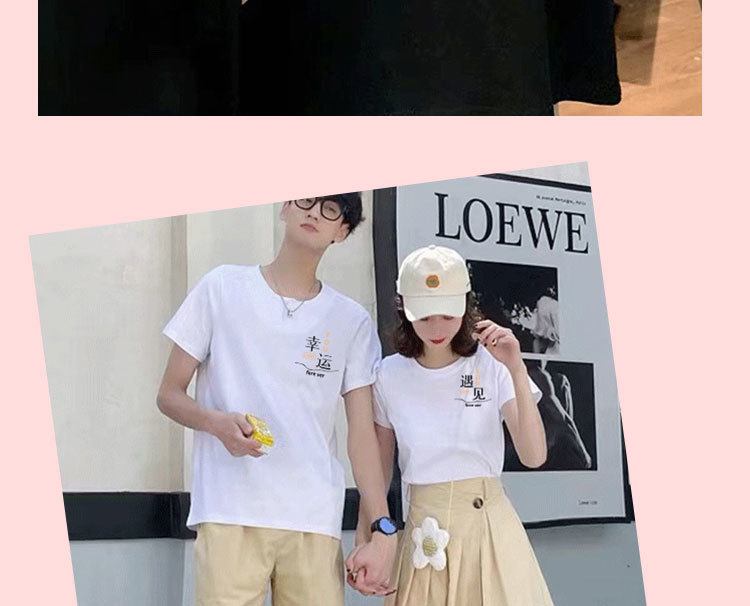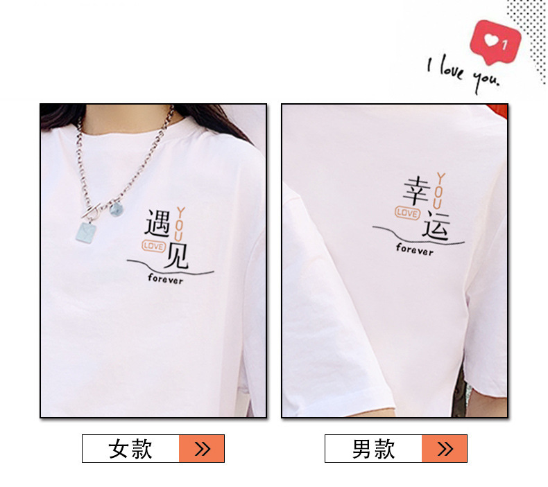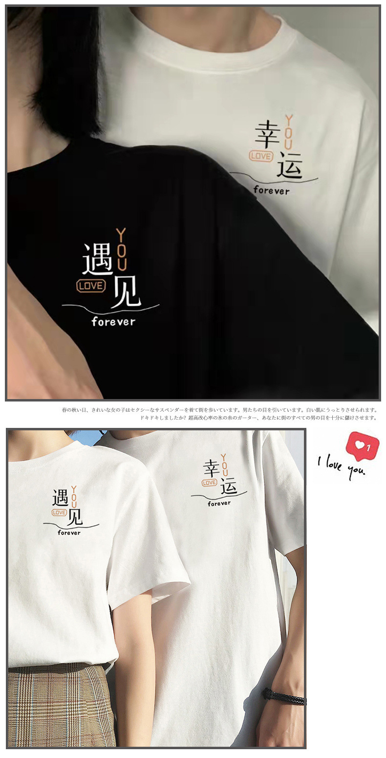【买1送1 遇见=幸福!】夏季新款日系风,圆领宽松短袖情侣装。与众不同的文字印花设计,展现个性魅力。舒适面料,透气亲肤,让你在炎热的夏季也能保持舒适。日韩休闲风格,男女通用,时尚百搭!