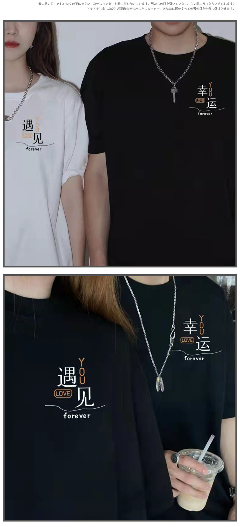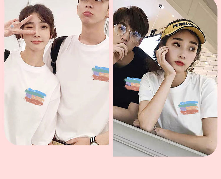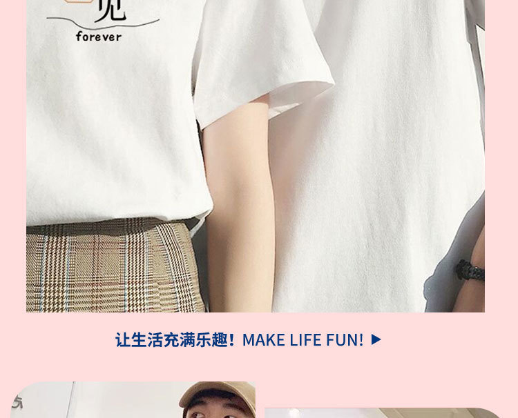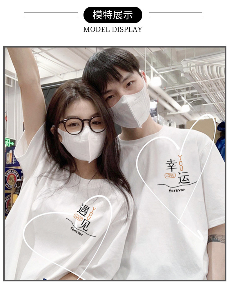 【买1送1 遇见=幸福!】夏季新款日系风,圆领宽松短袖情侣装。与众不同的文字印花设计,展现个性魅力。舒适面料,透气亲肤,让你在炎热的夏季也能保持舒适。日韩休闲风格,男女通用,时尚百搭!