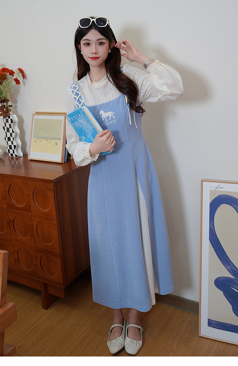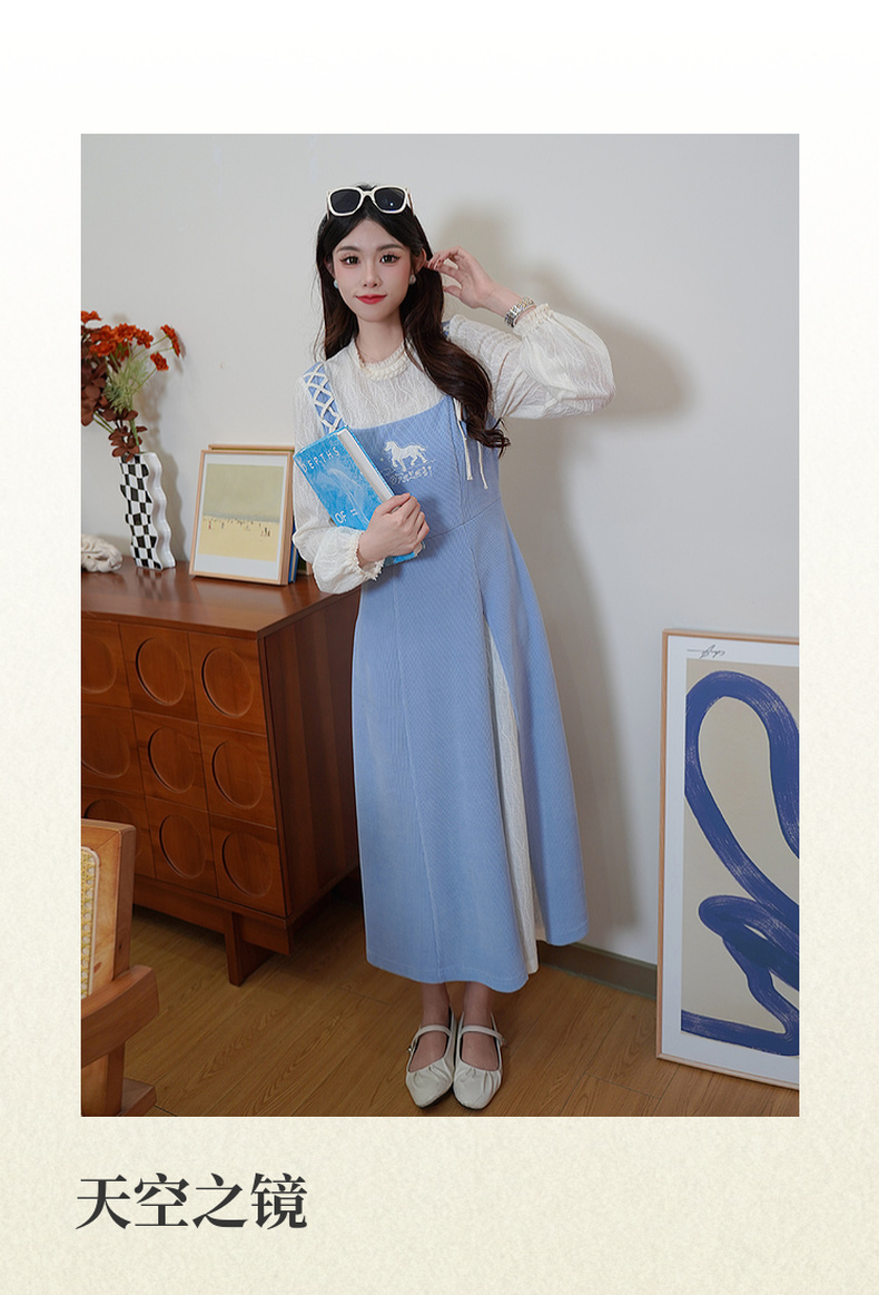 两三事梵高文艺 2025春季新款动物刺绣拼布假两件连衣裙天空之镜