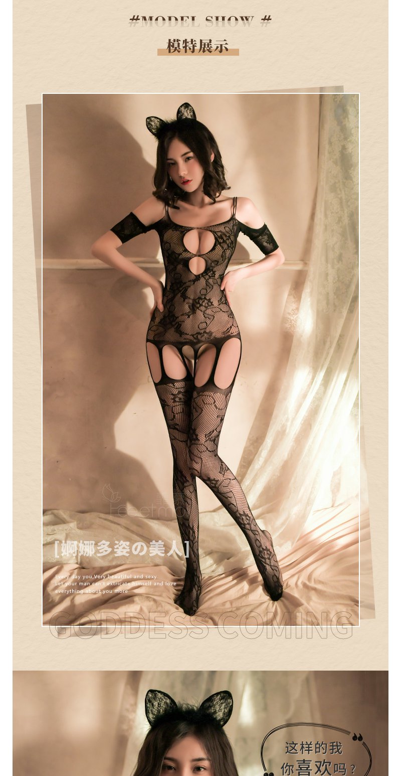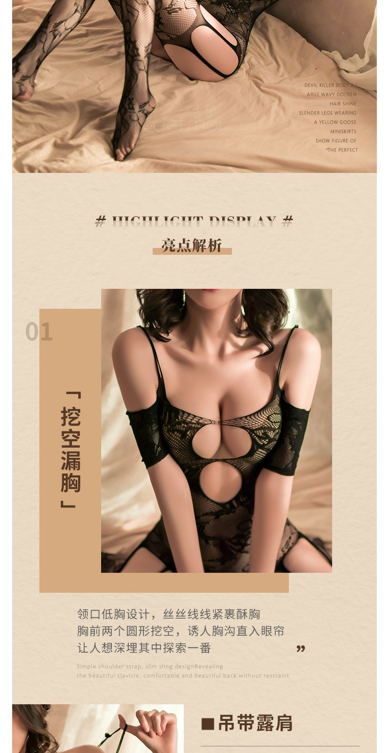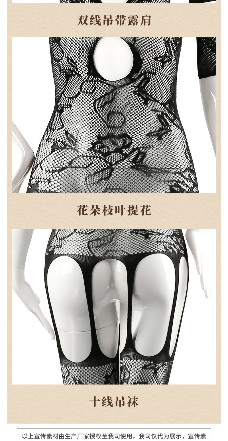 霏慕吊带露肩开裆连身袜情趣网衣
