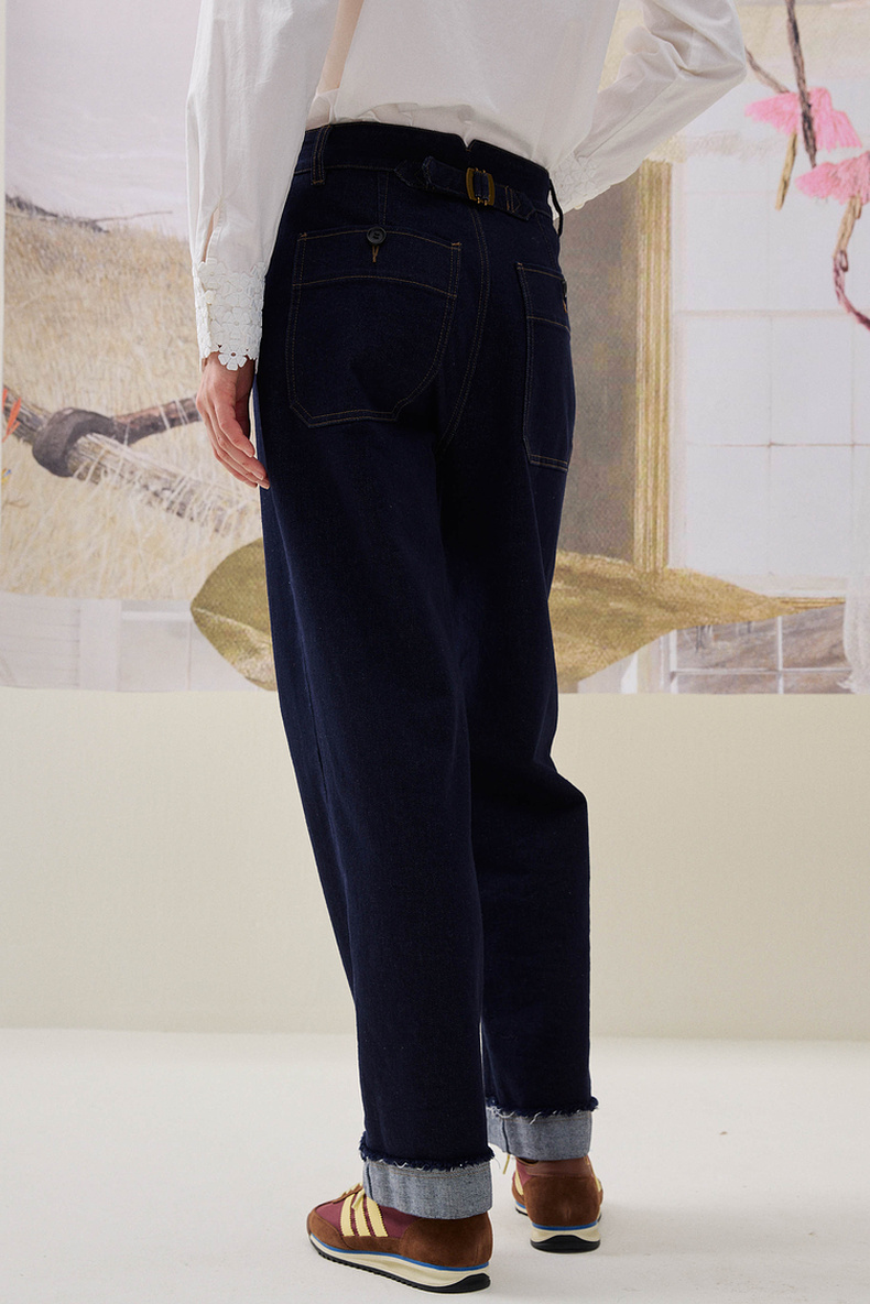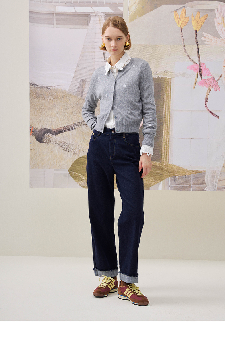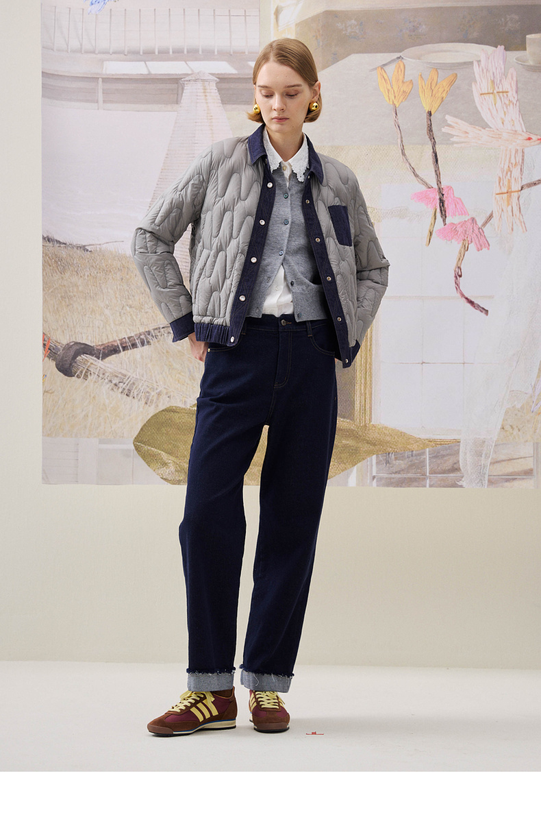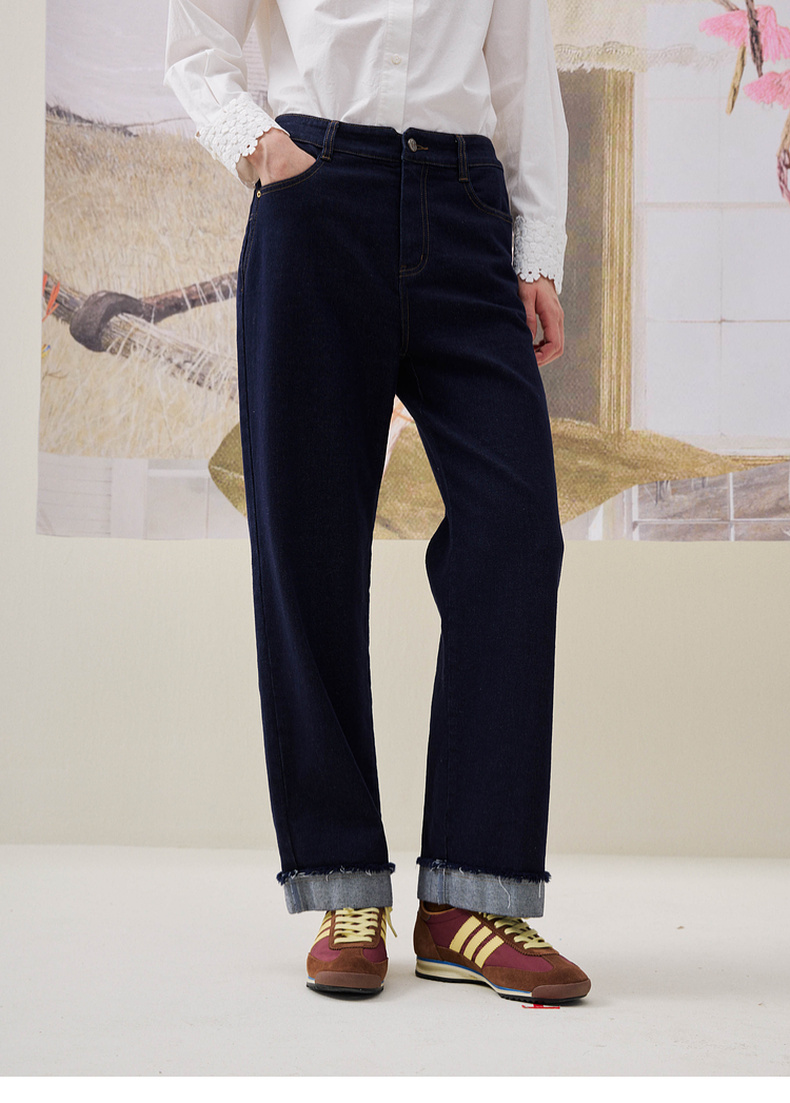 谜底直筒牛仔裤长裤2025年冬季新品百搭毛边裤脚外翻女254MJ1464