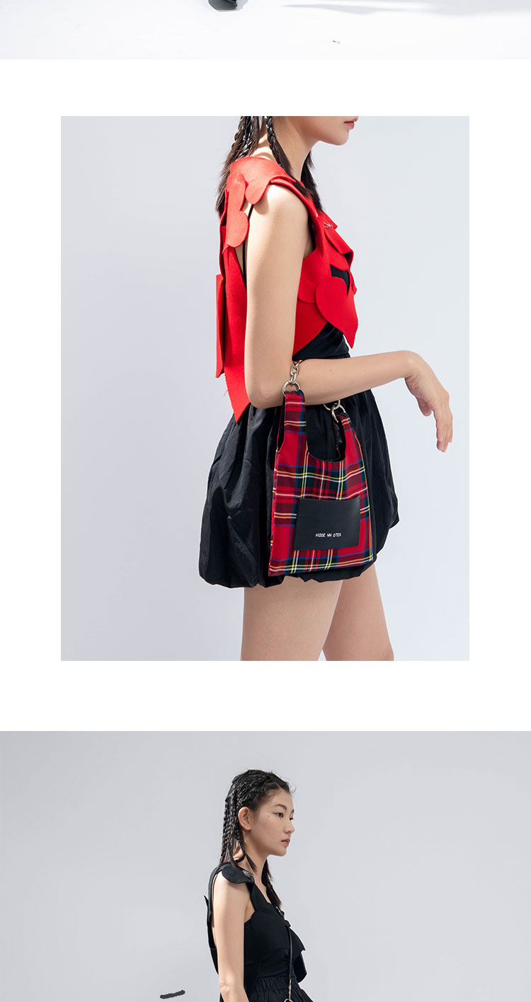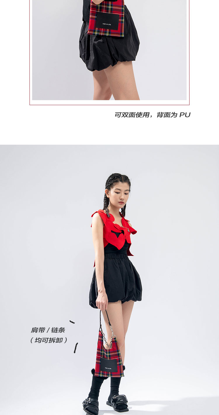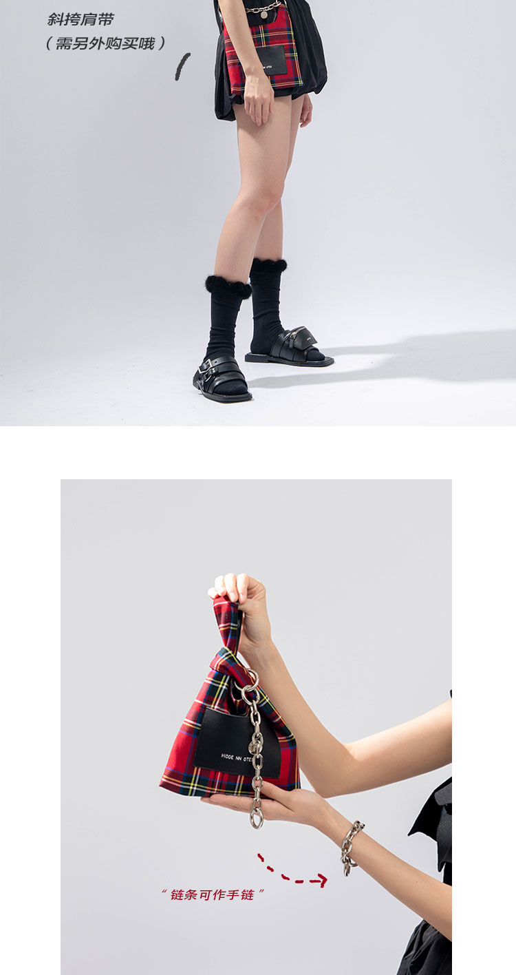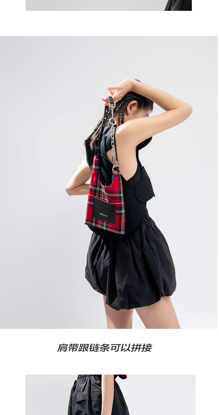 HIDDENNOTES l 2021原创红格子单肩斜挎背心包手提链条小包腋下包