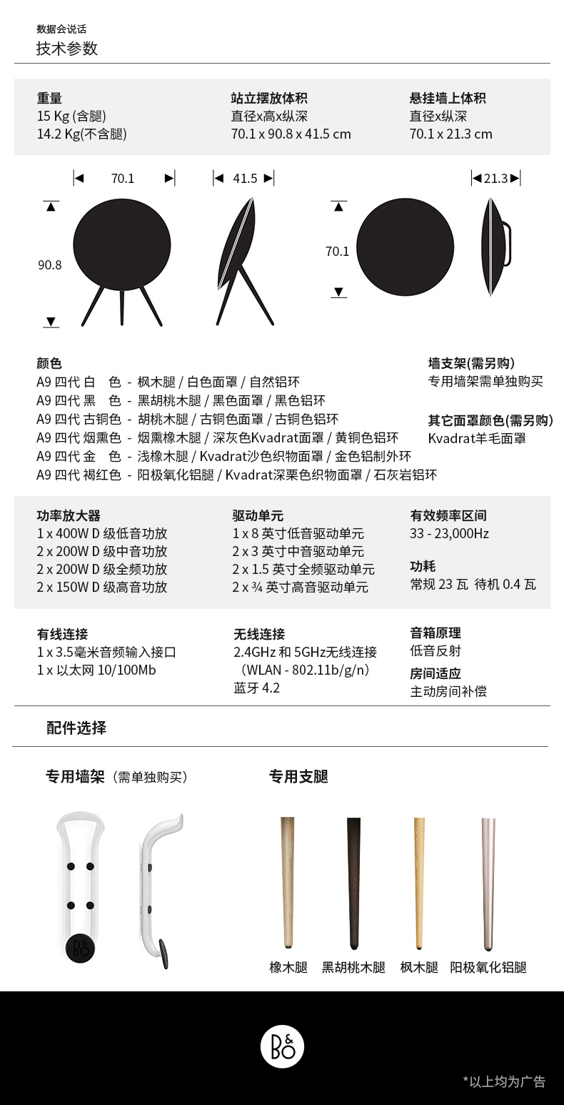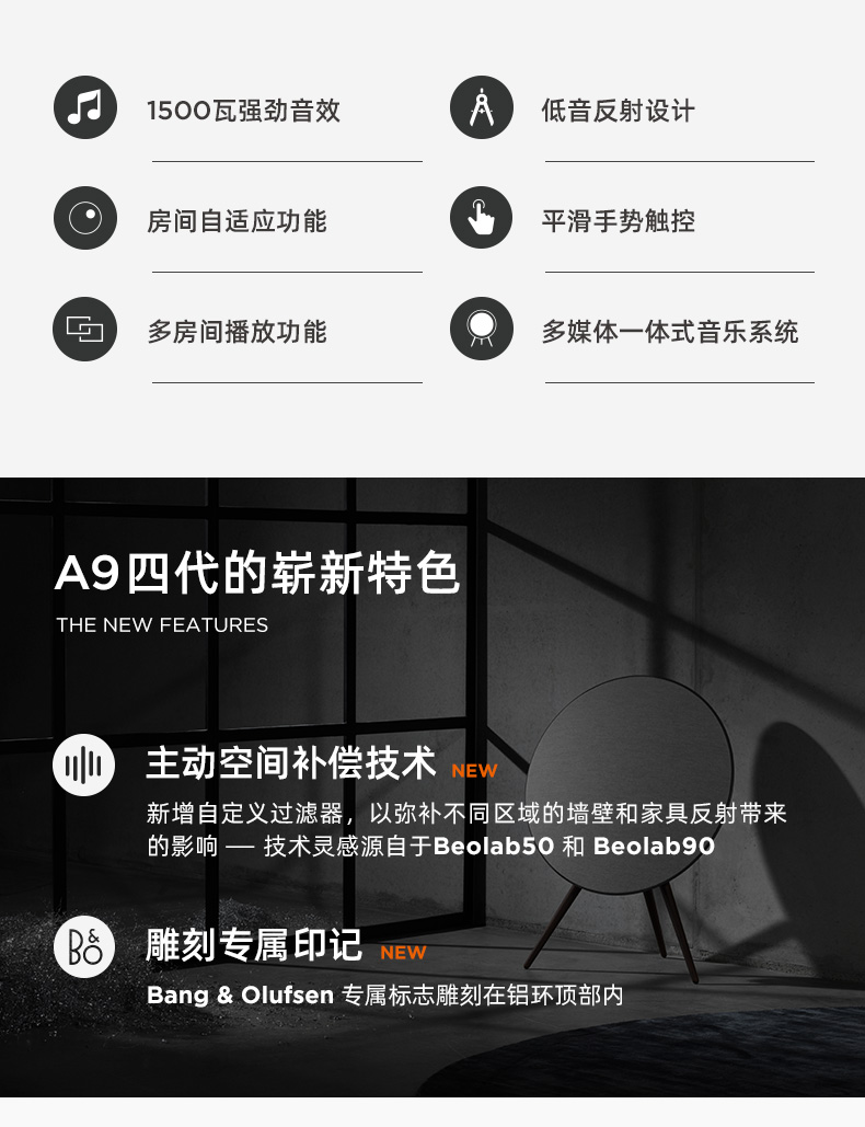 【已下架】积分换购】B&O Beoplay A9 4th四代蓝牙音箱家用客厅大音响低音炮[福利品]