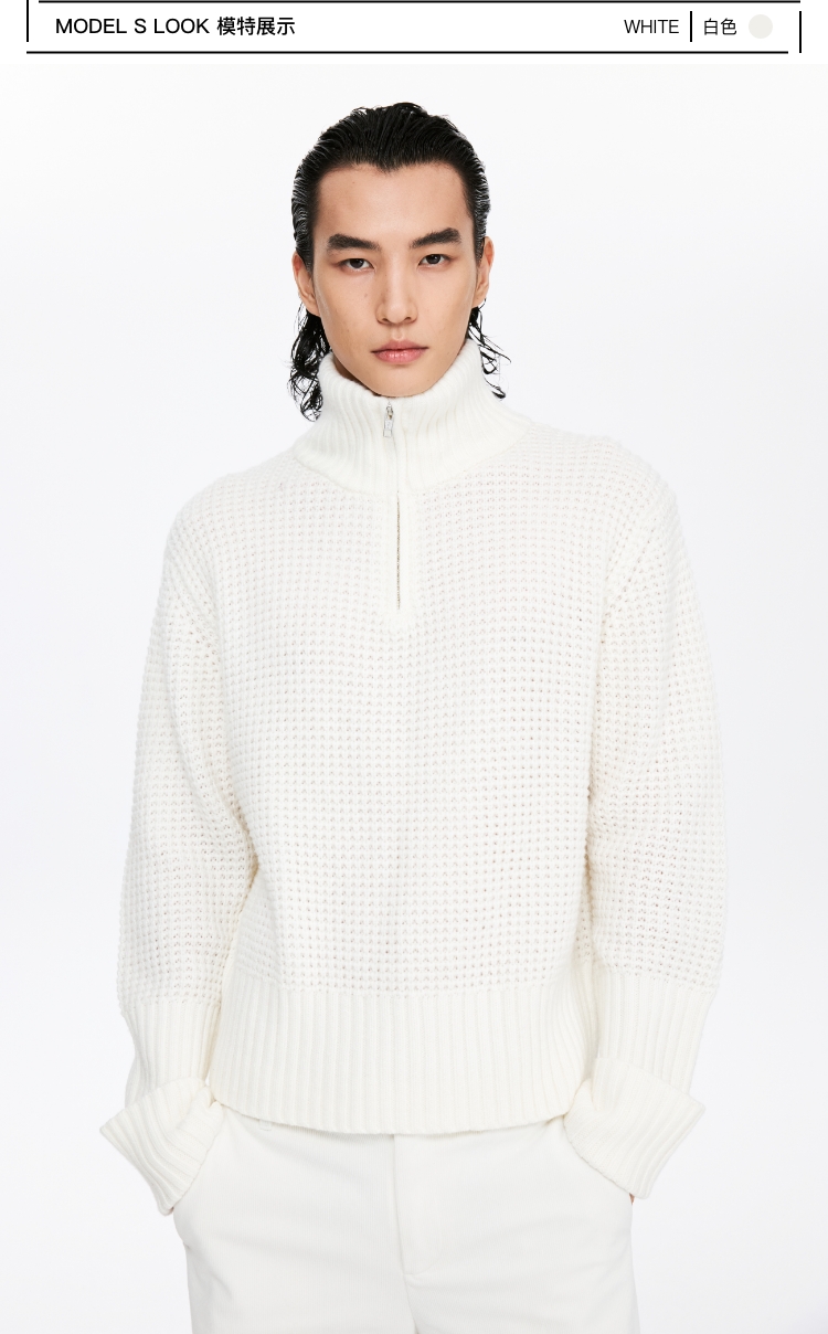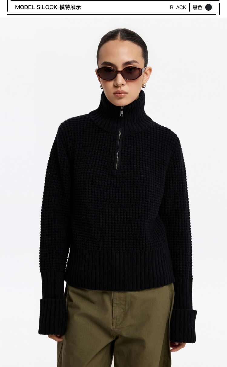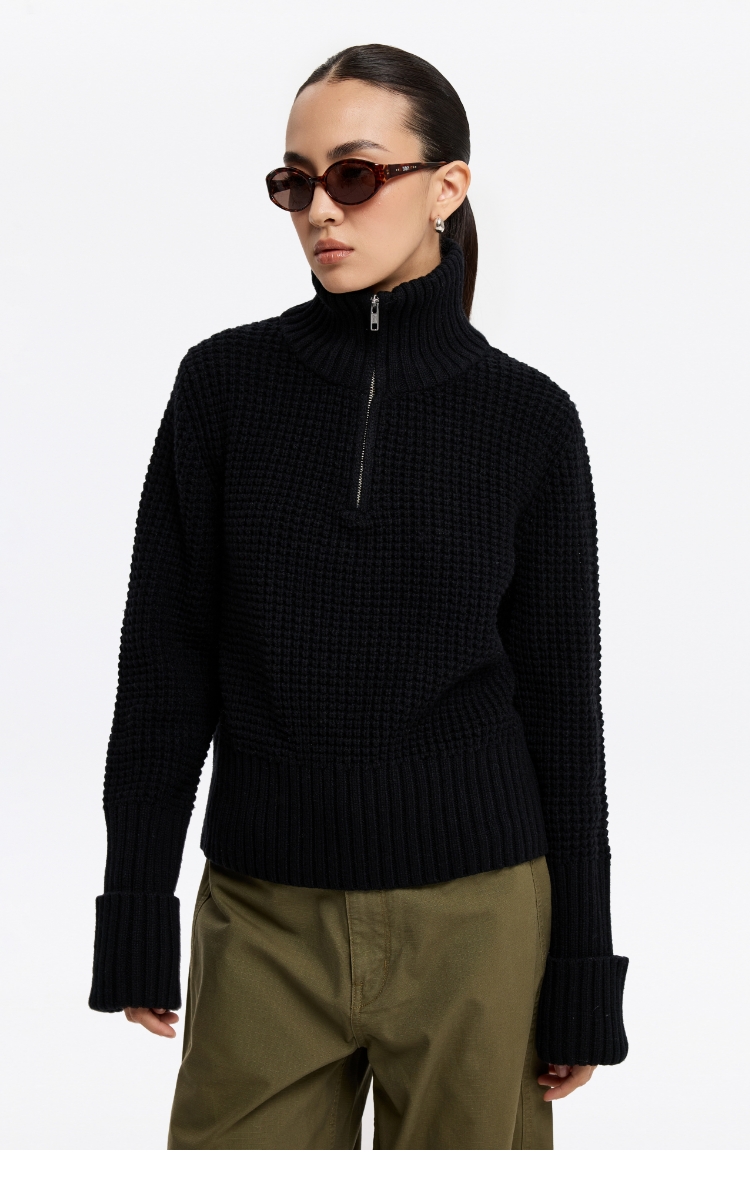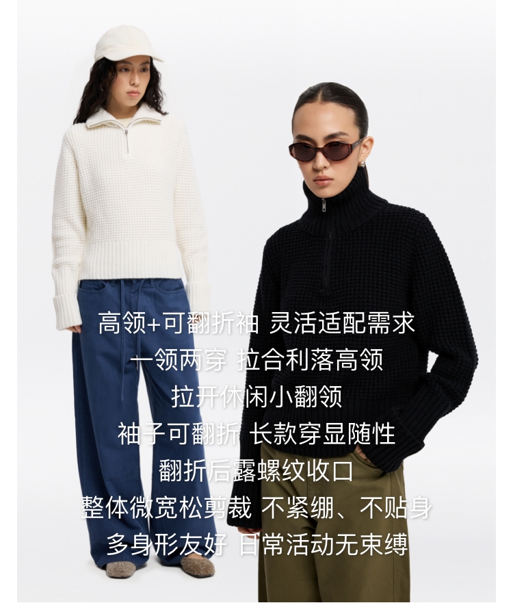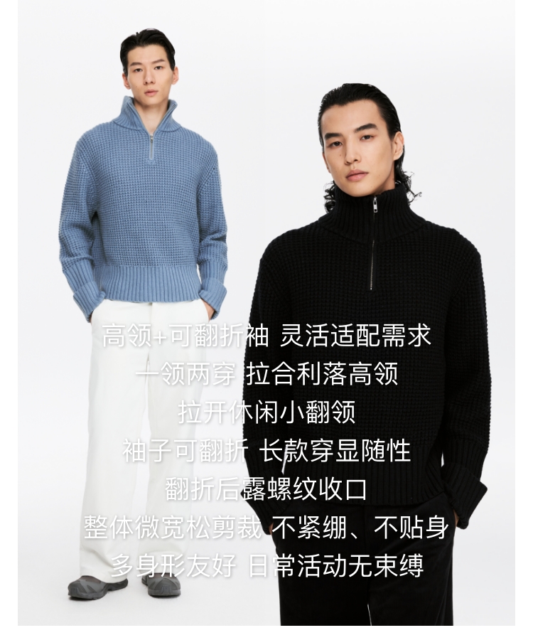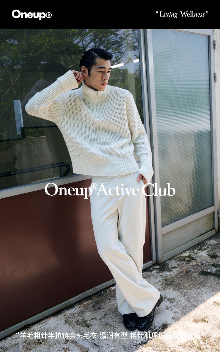 oneup羊毛粗针半拉链套头毛衣(男女同款)