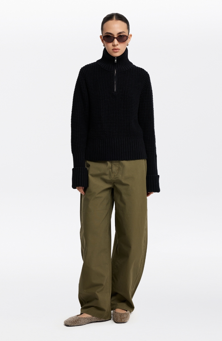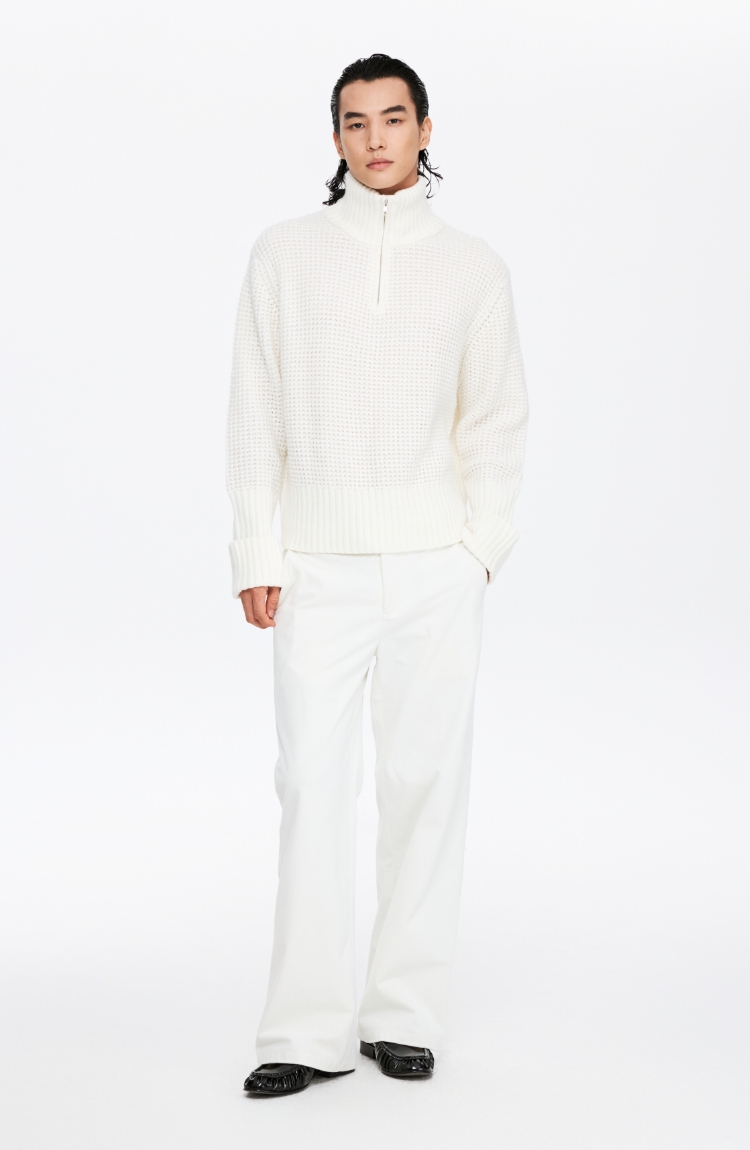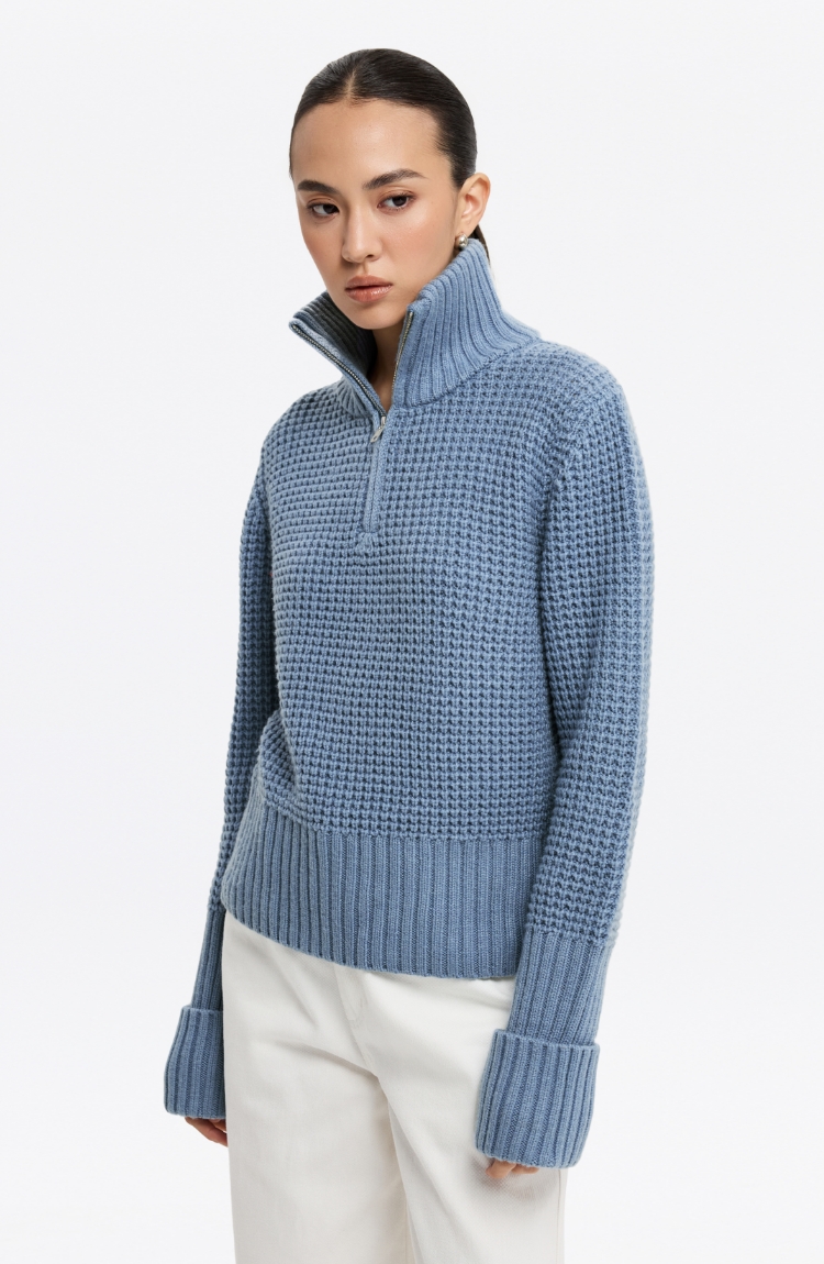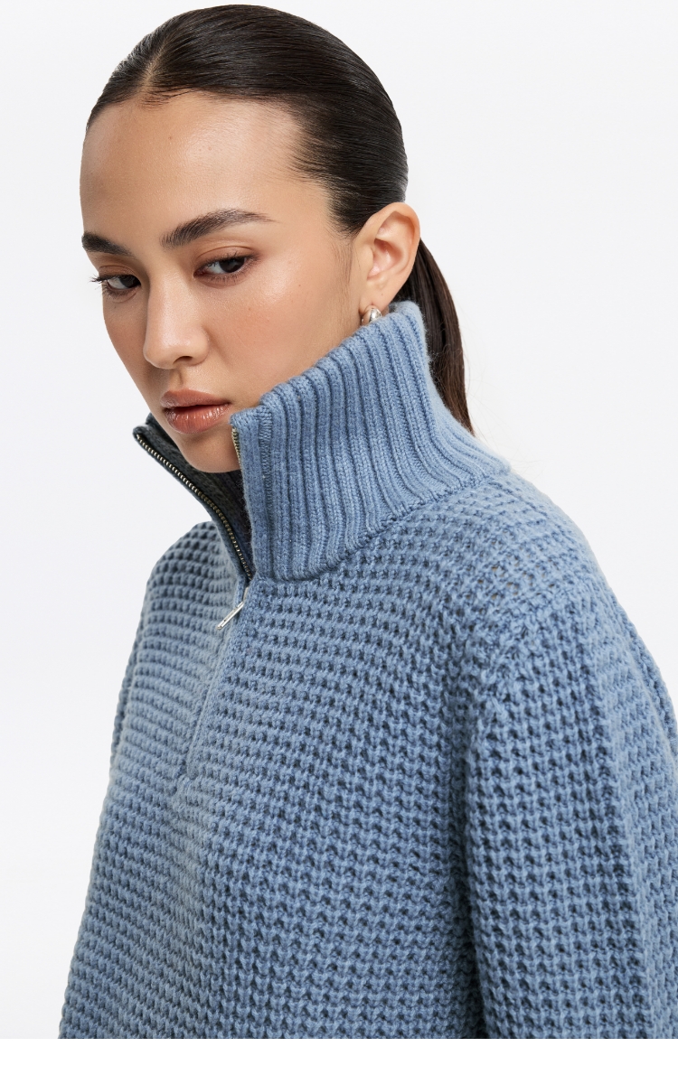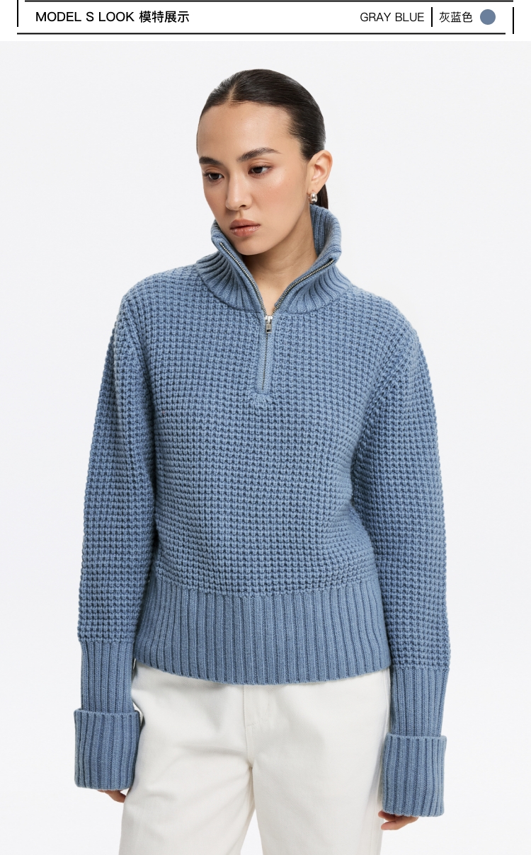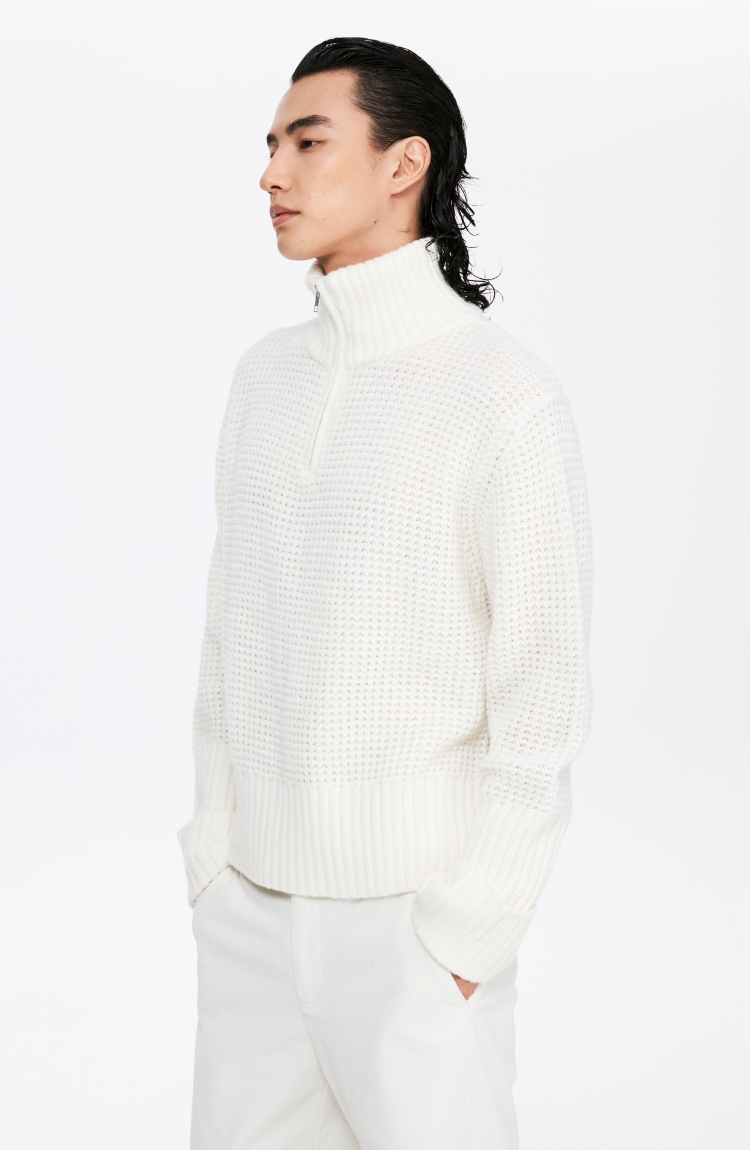 oneup羊毛粗针半拉链套头毛衣(男女同款)