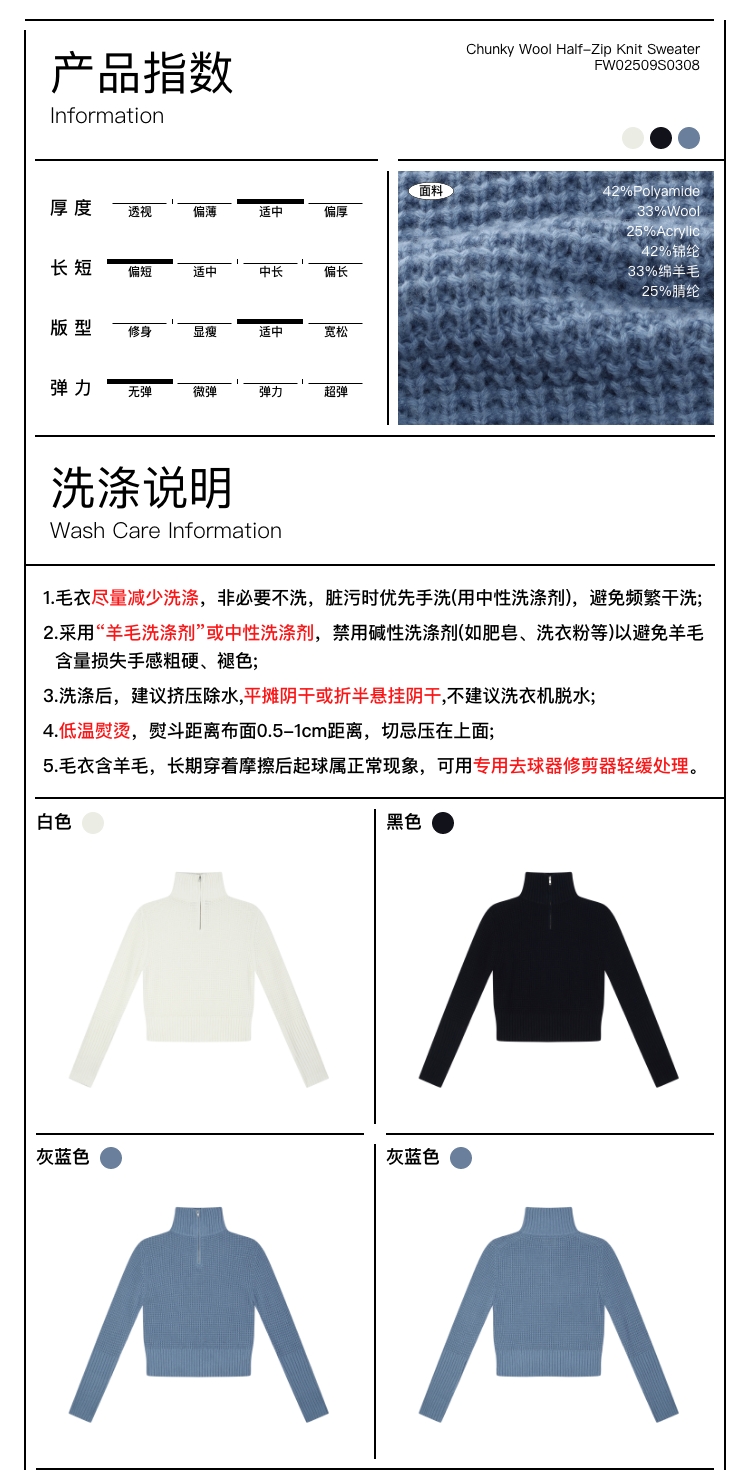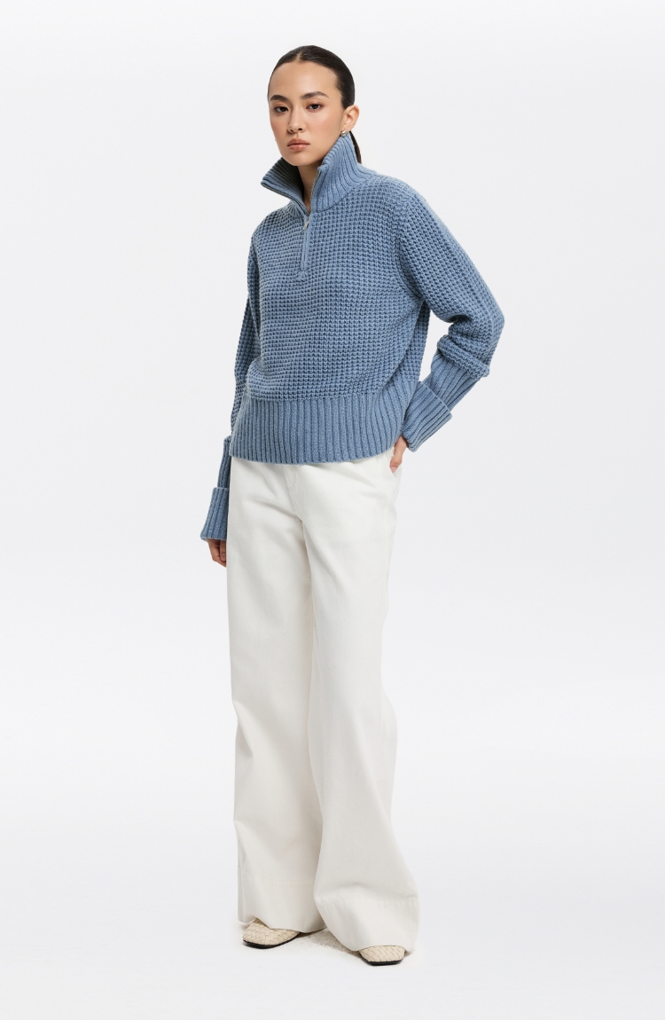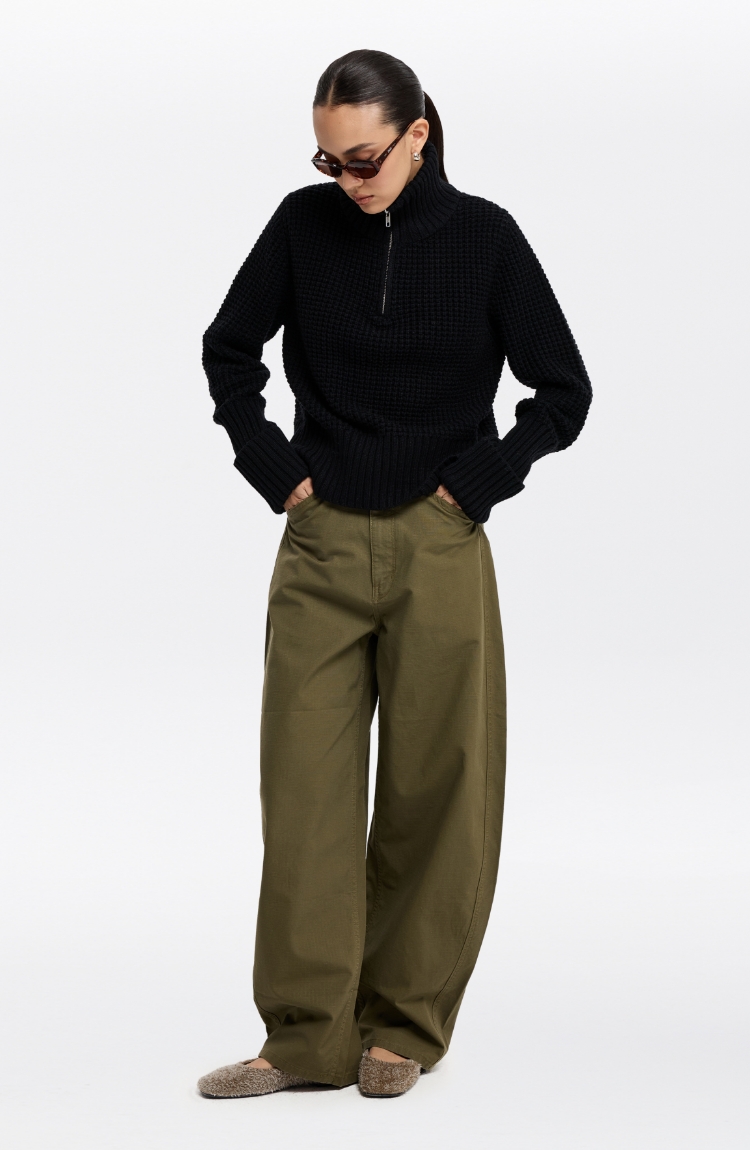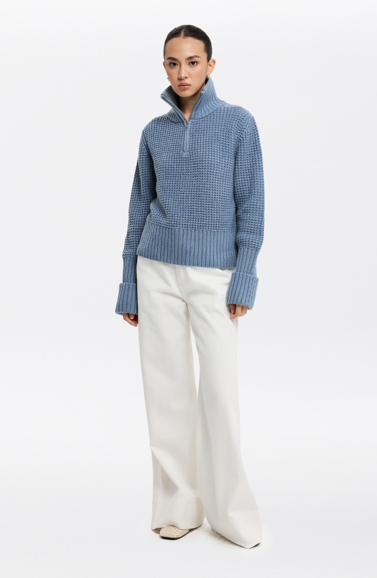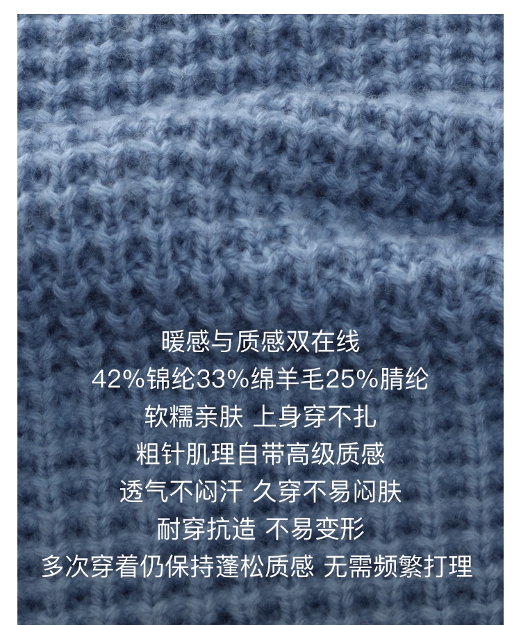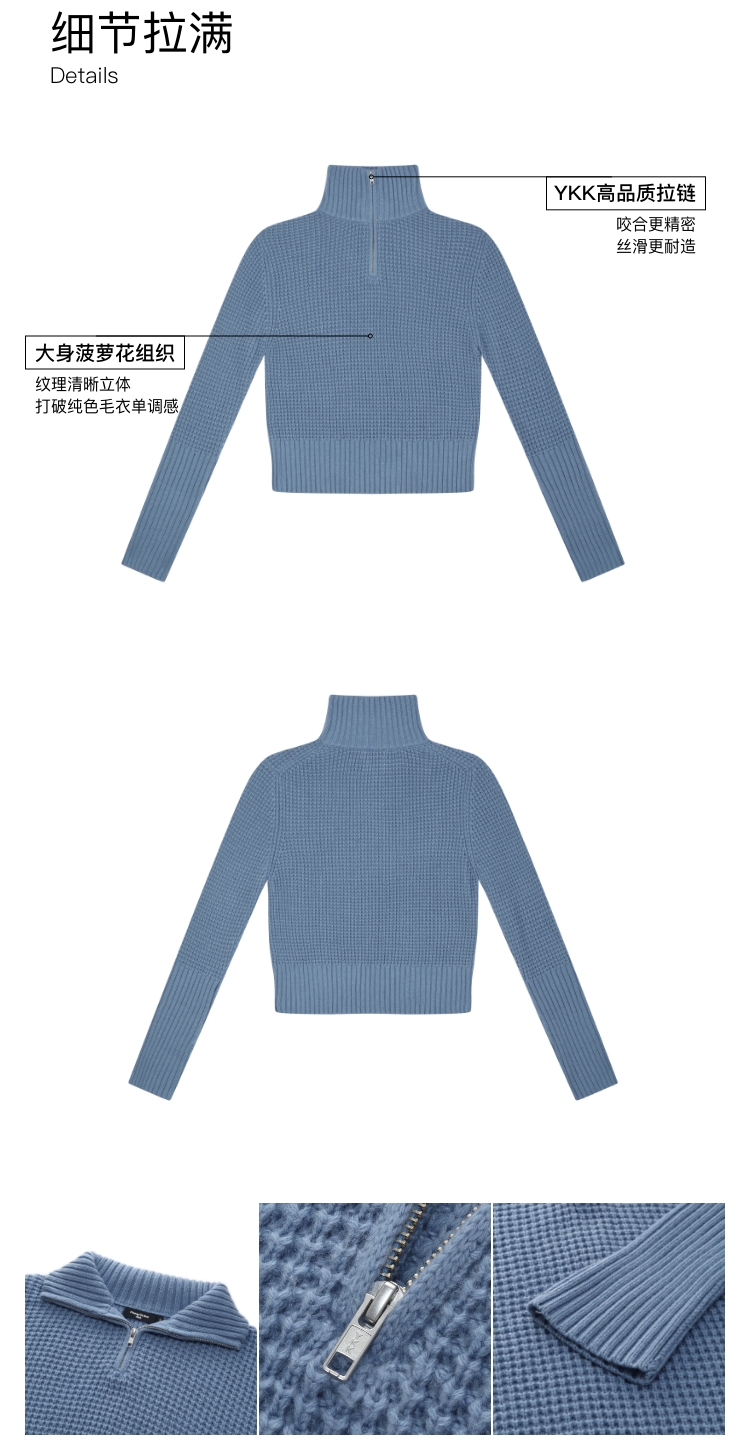 oneup羊毛粗针半拉链套头毛衣(男女同款)