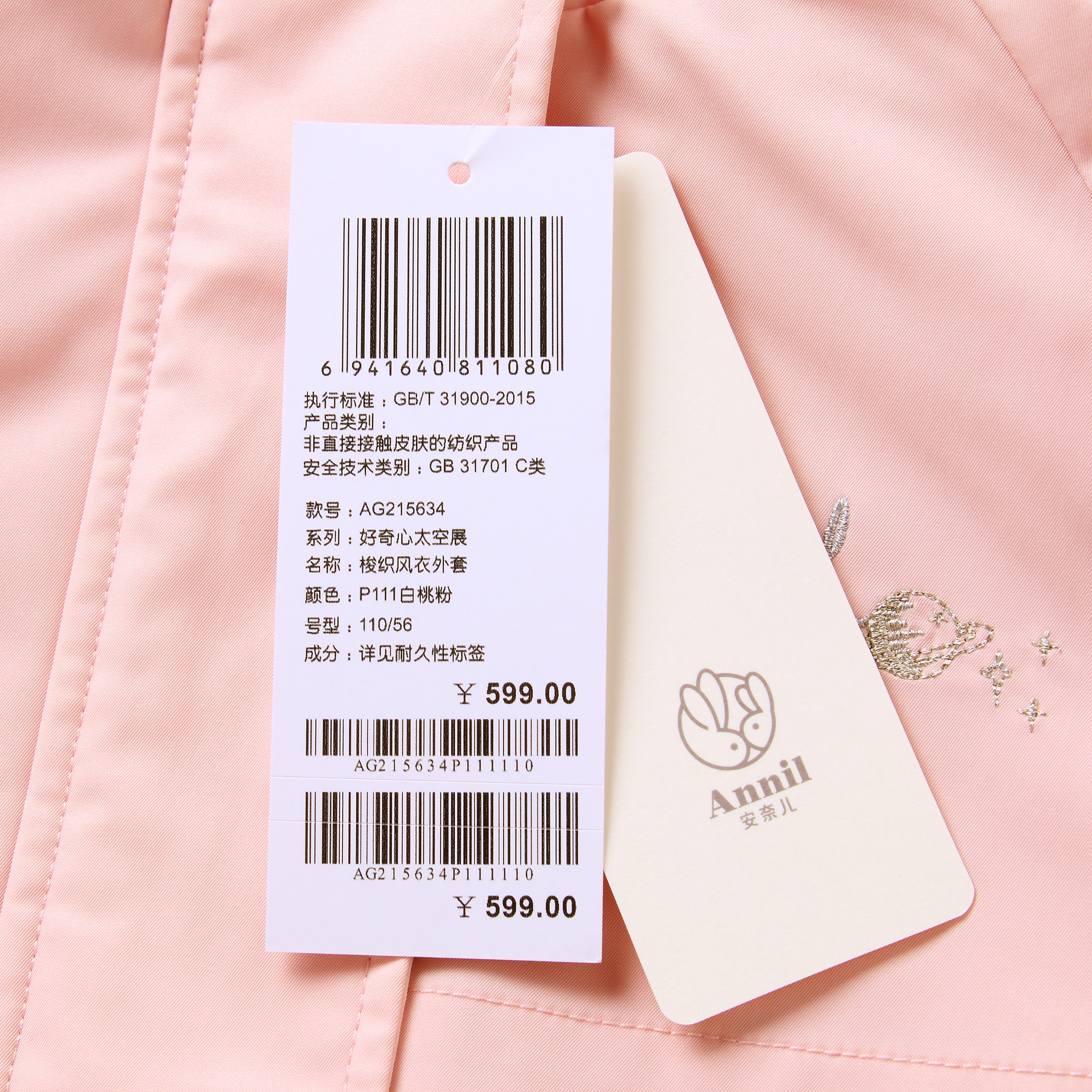 安奈儿女童梭织风衣外套ag215634