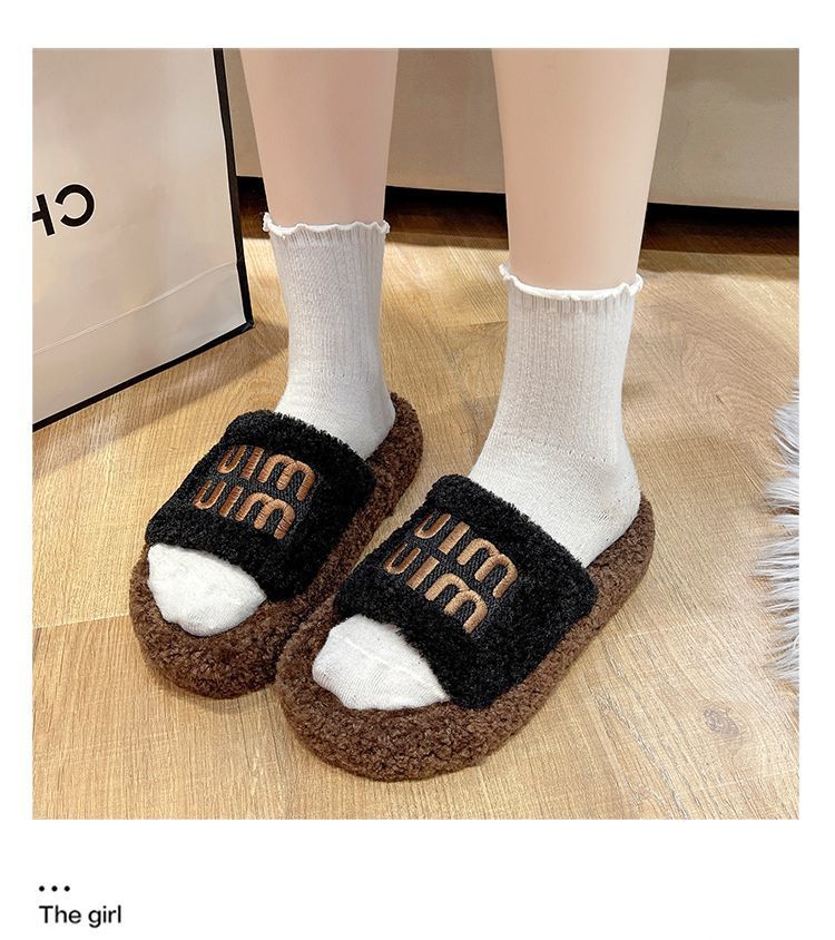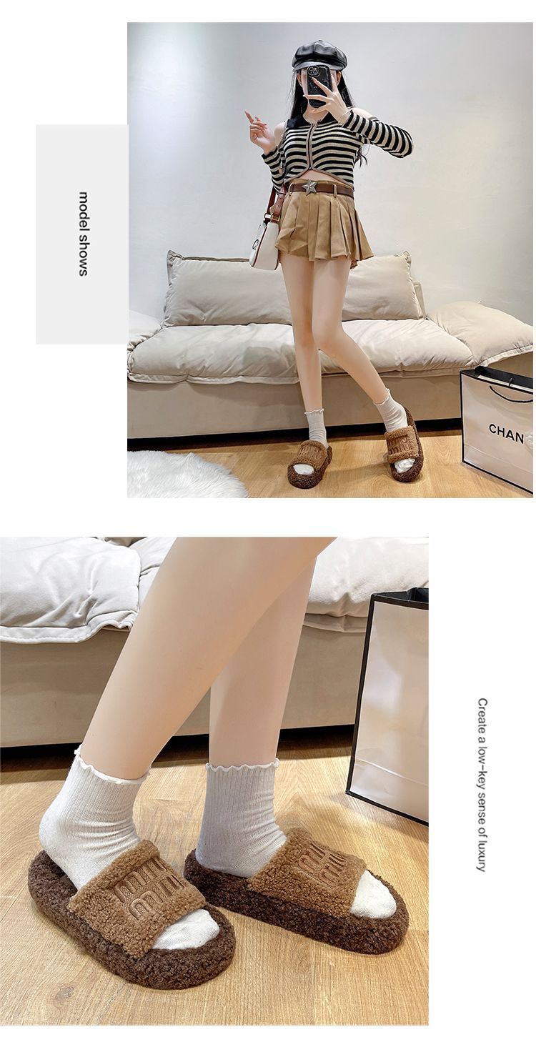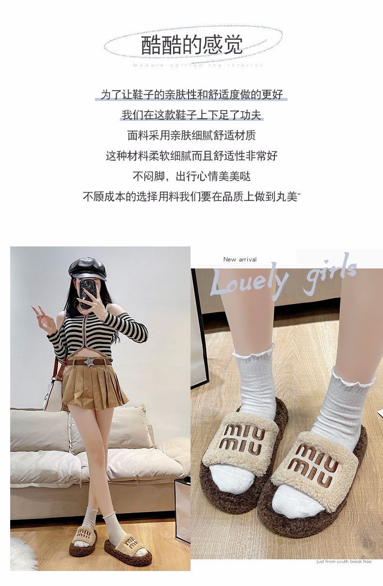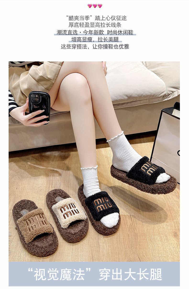 厚底毛毛拖鞋 女外穿2025新款秋冬季羊羔毛茸拖 网红时尚家居棉拖鞋