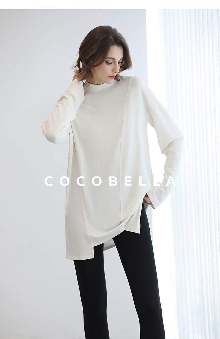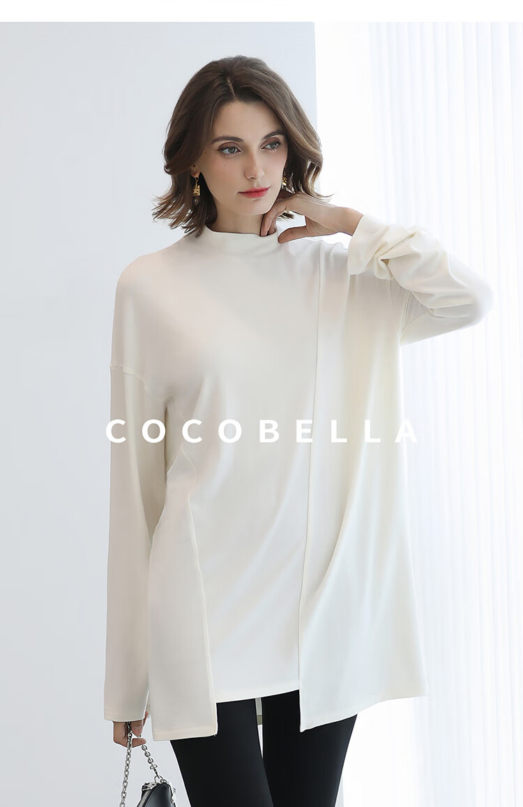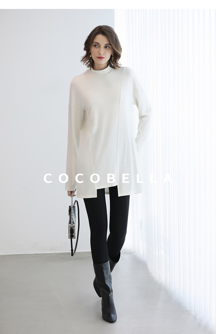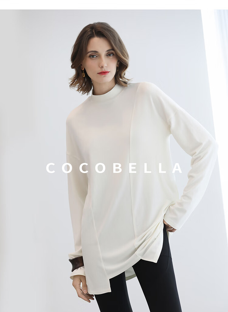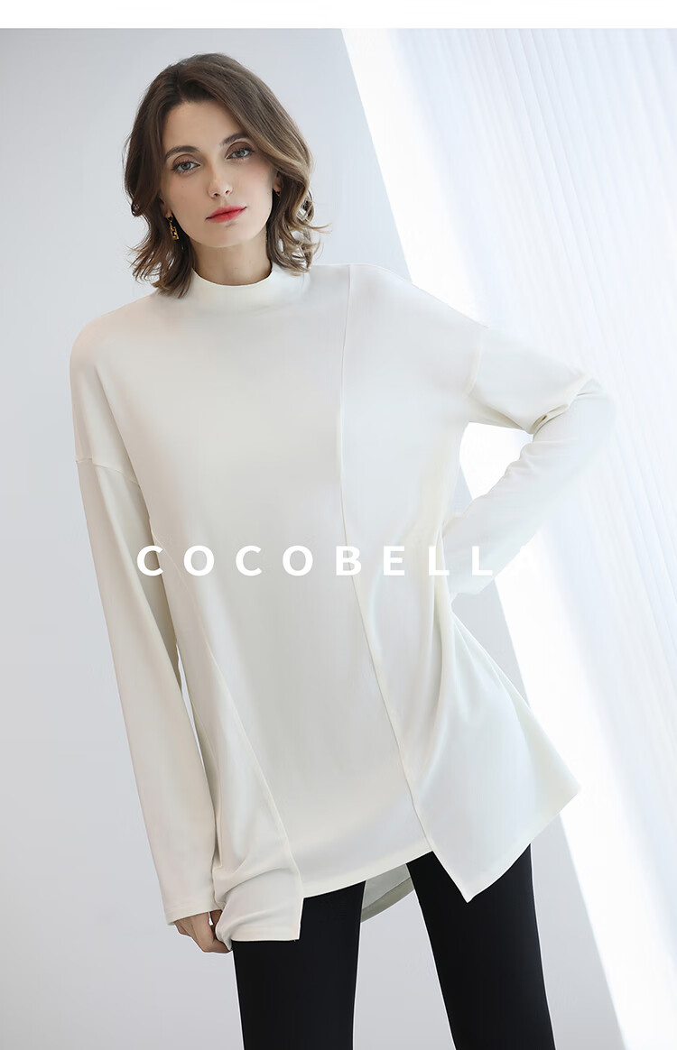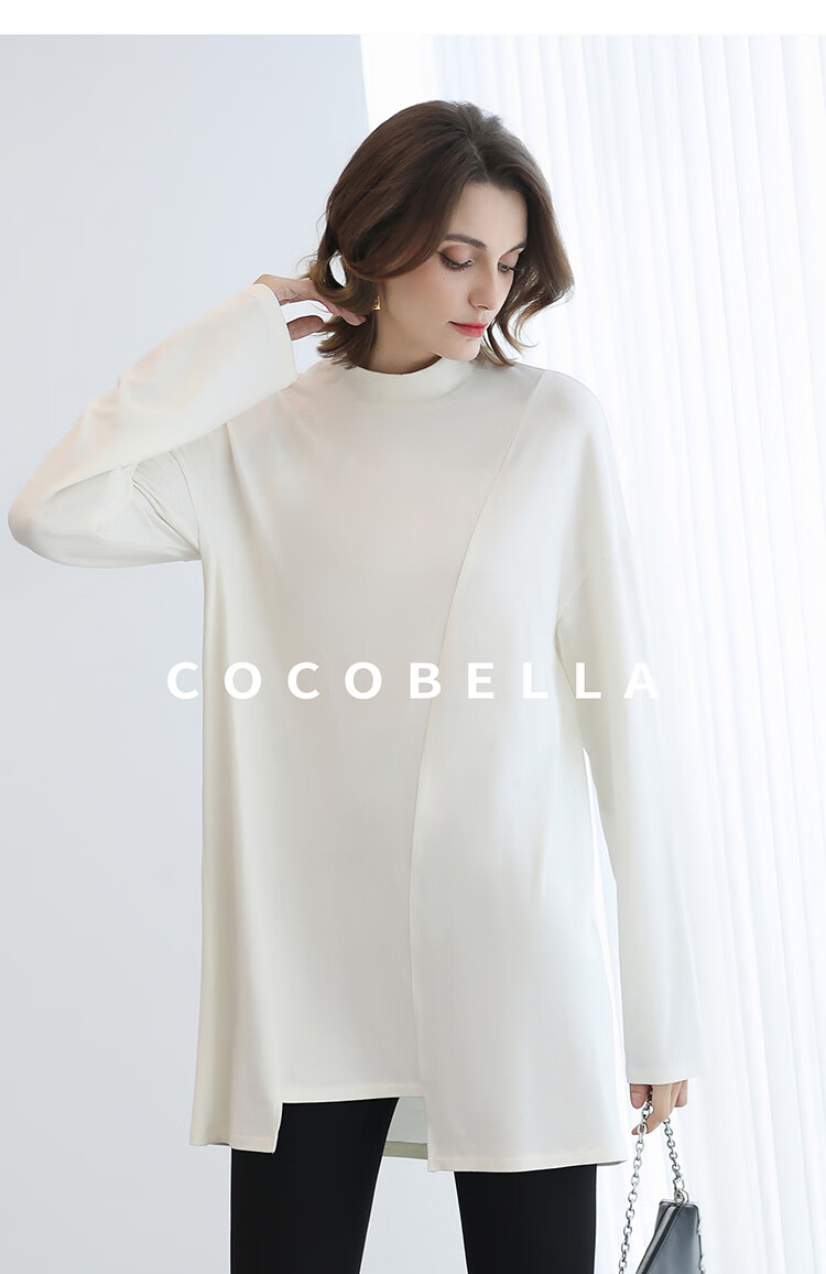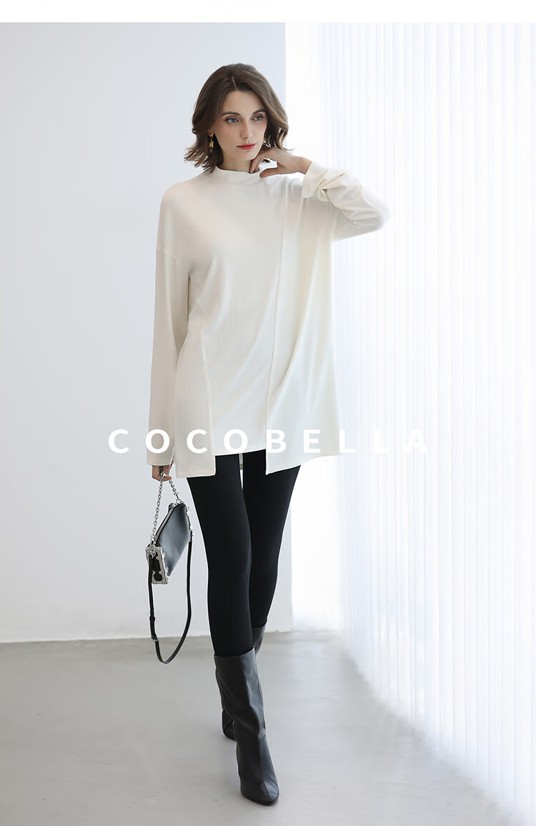 COCOBELLA不规则针织衫秋冬抗静电吸湿发热白色高领打底T恤UT0005