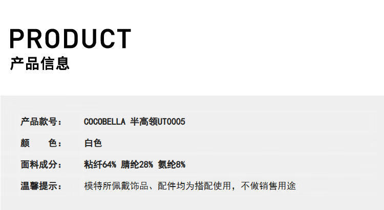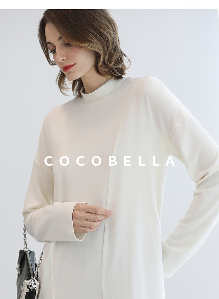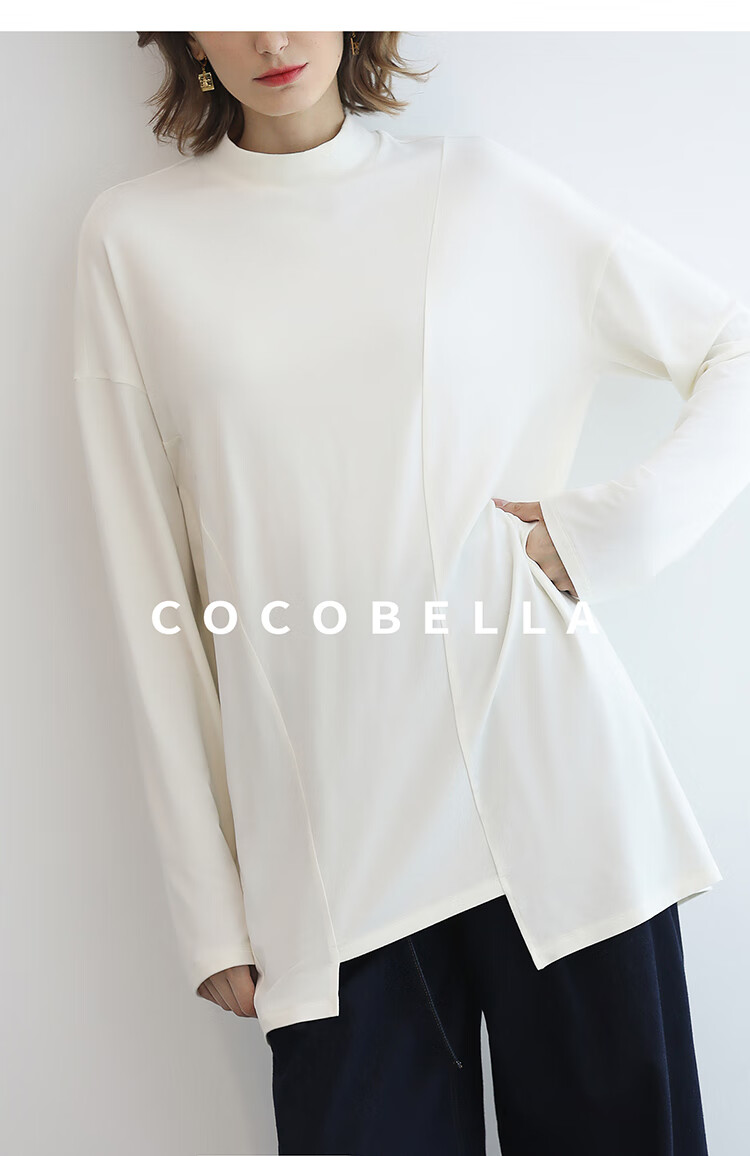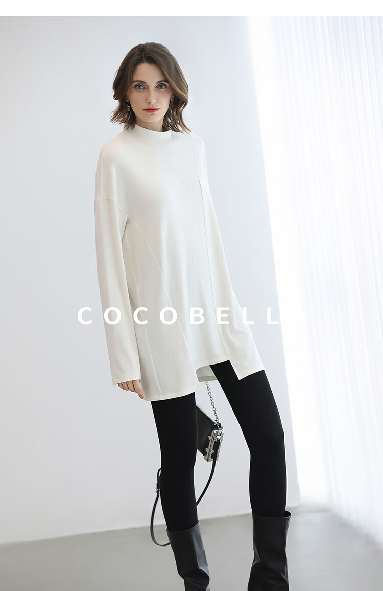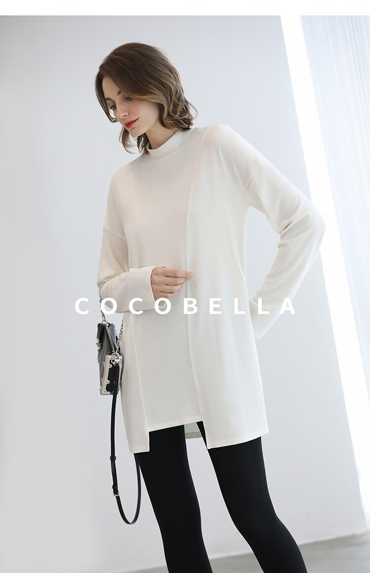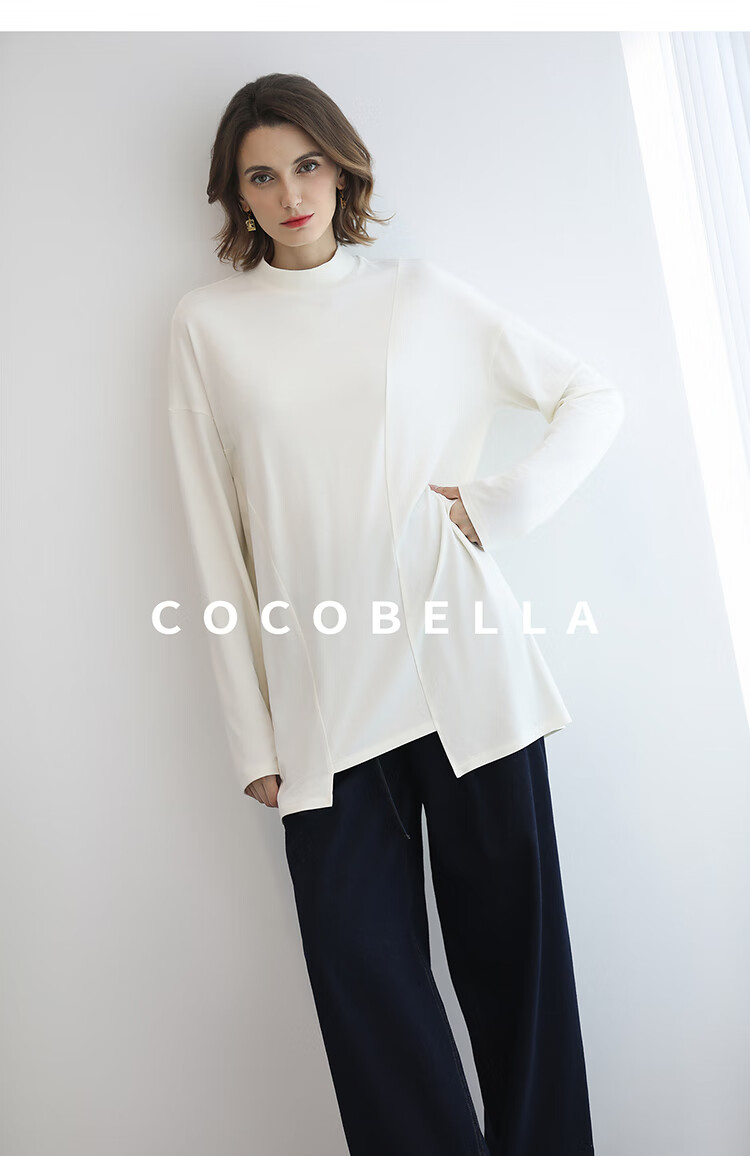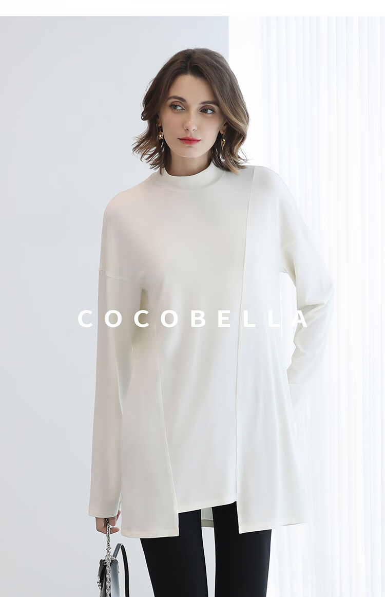 COCOBELLA不规则针织衫秋冬抗静电吸湿发热白色高领打底T恤UT0005