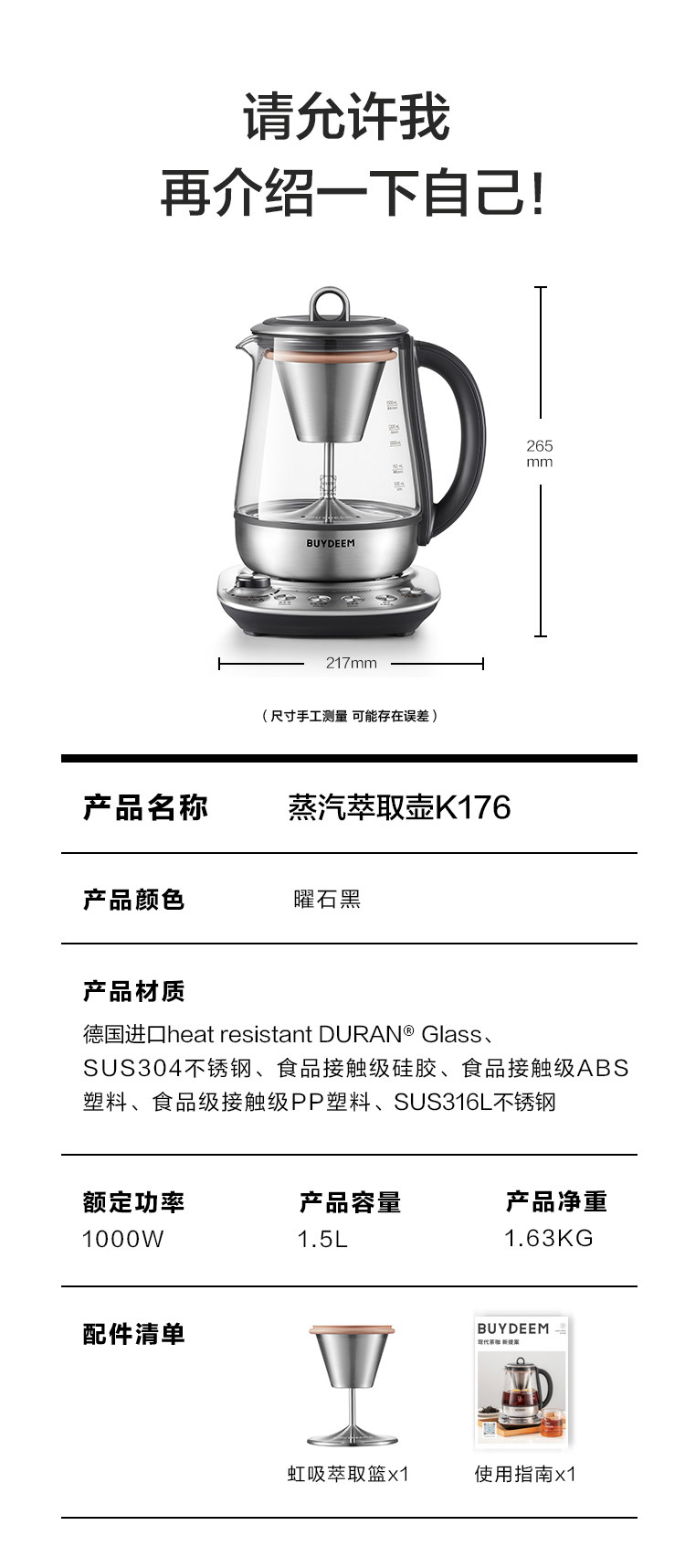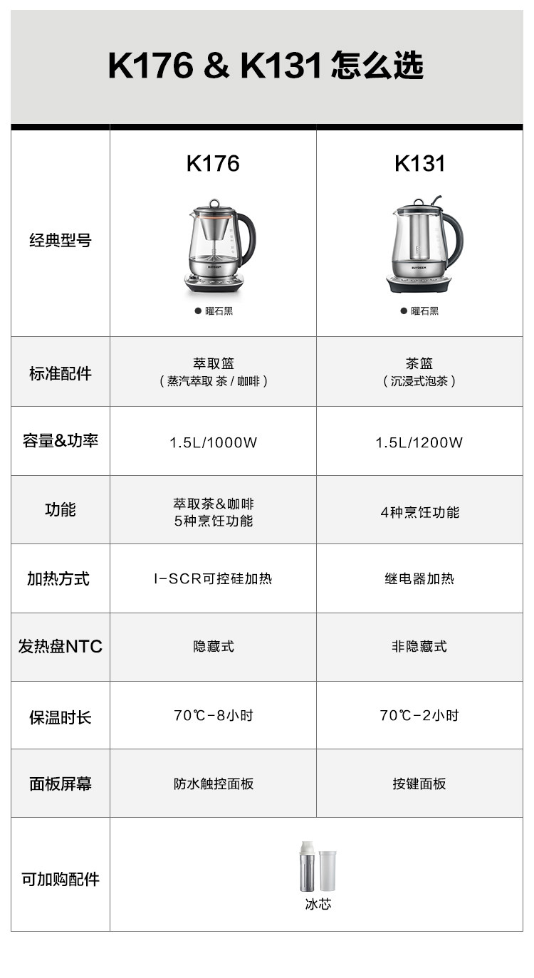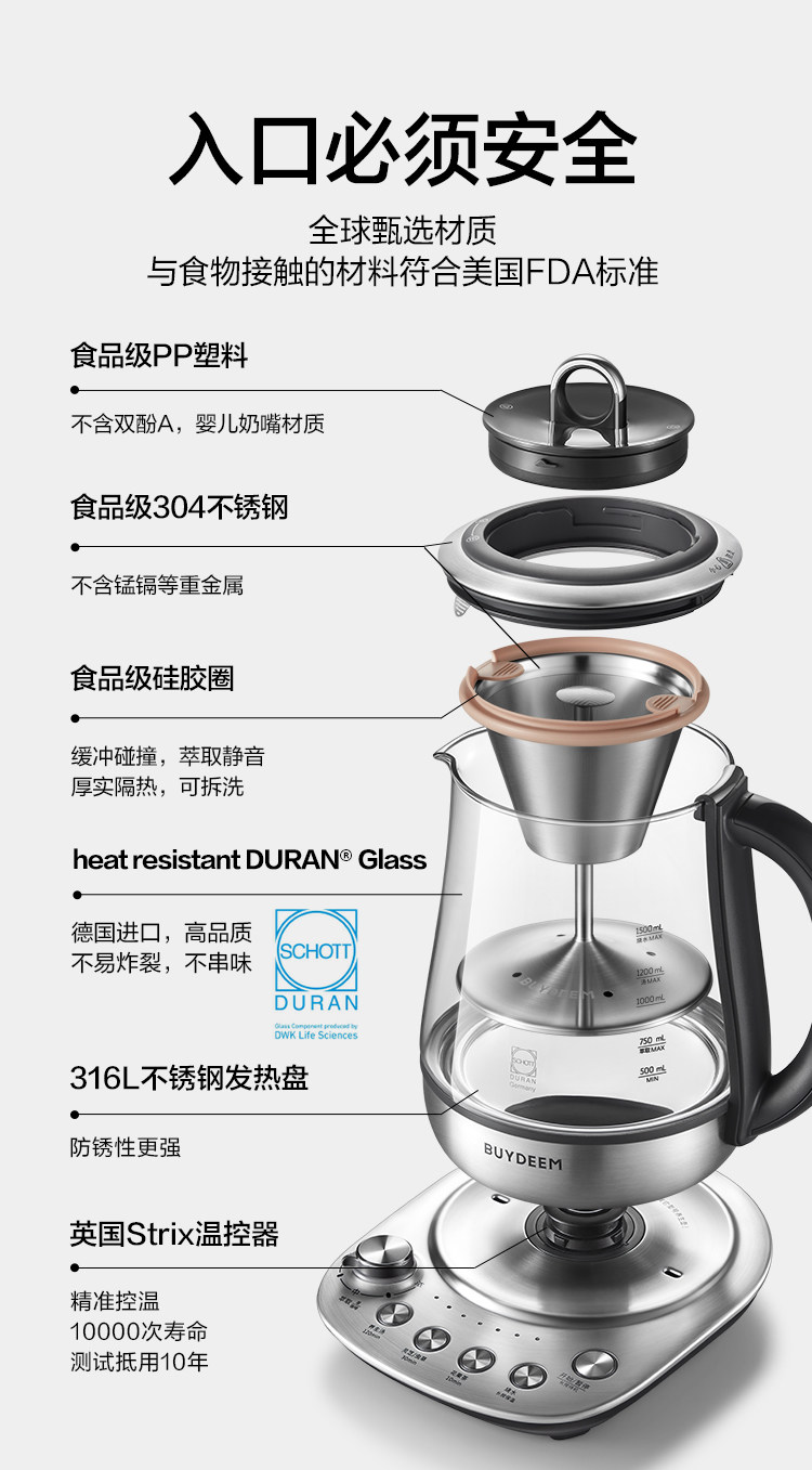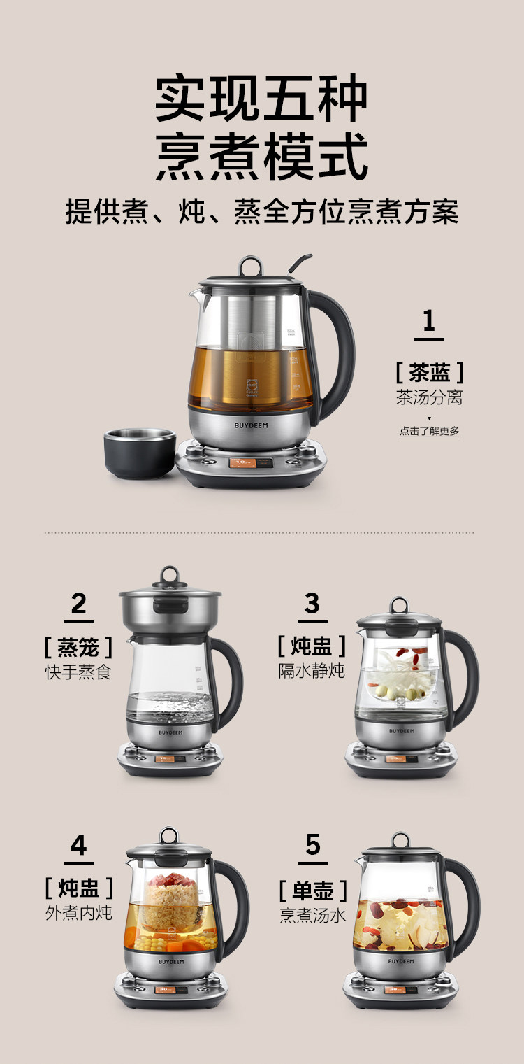 【北鼎养生壶高端款集合】北鼎K176养生壶多功能家用煮茶壶办公室喷淋煮茶器保温蒸汽萃取壶K187