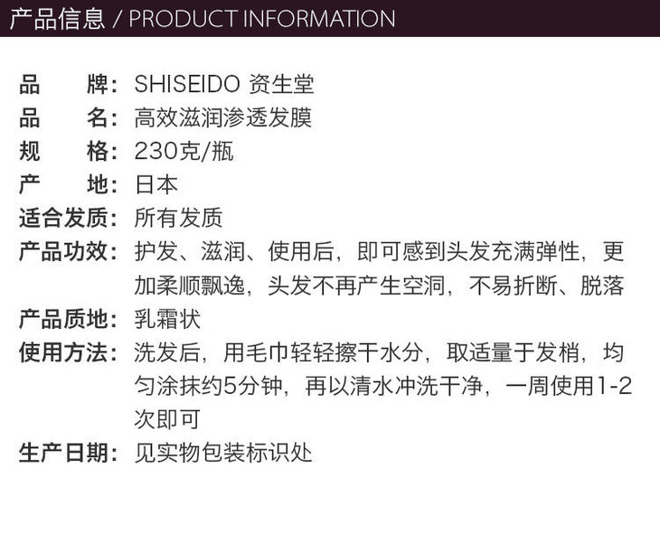 【保税区直发】资生堂fino高效渗透护发膜*红230g