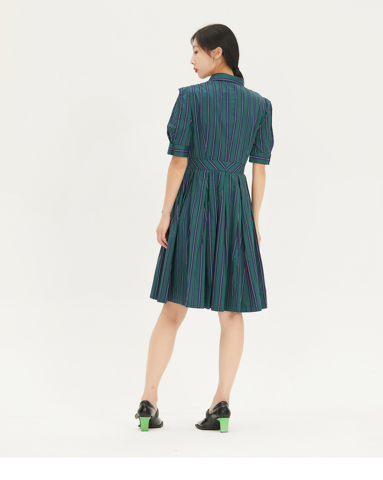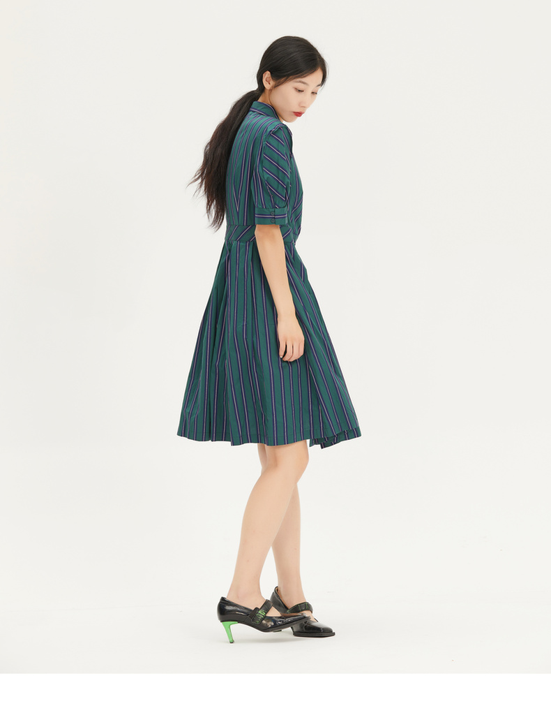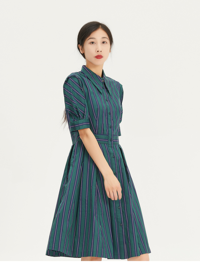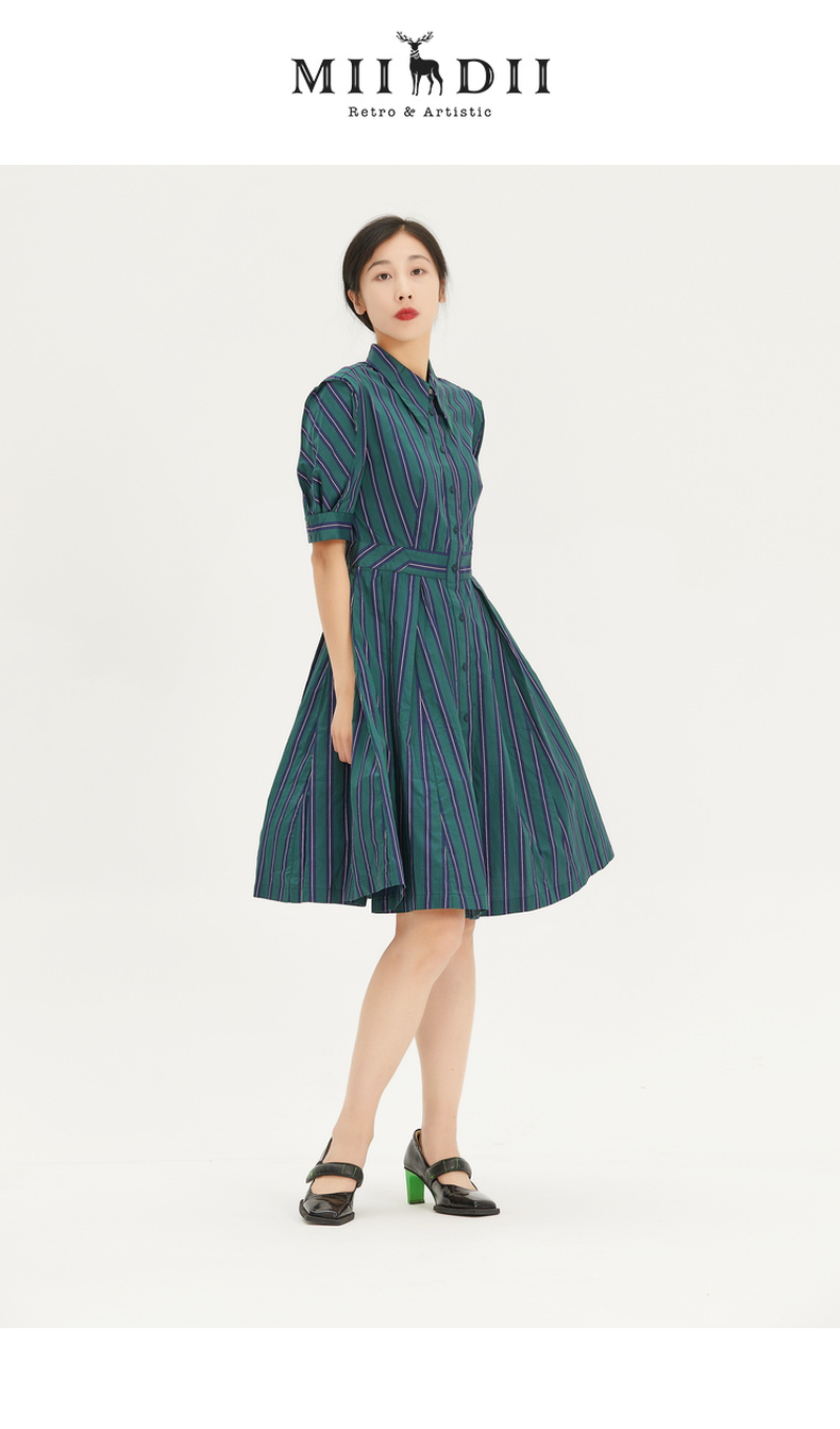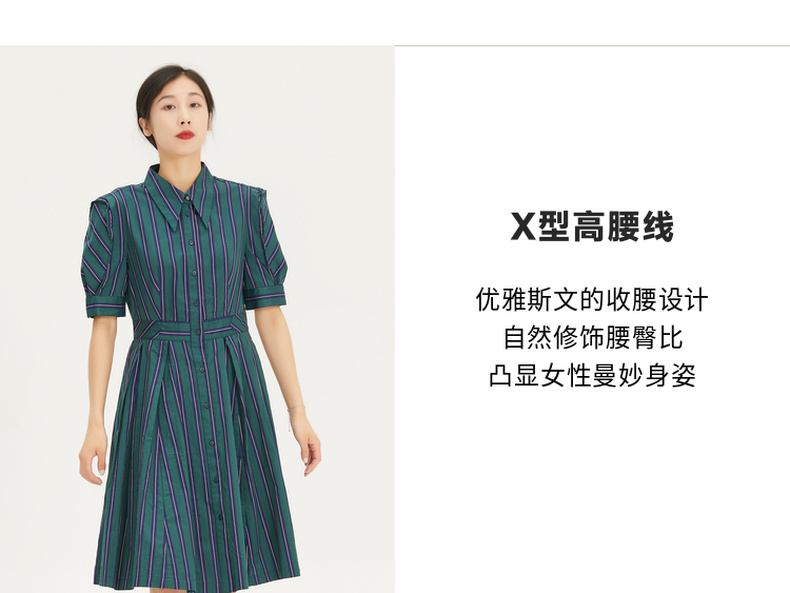 谜底2022夏季新款连衣裙夏结构设计收腰条纹复古文艺225ML6050