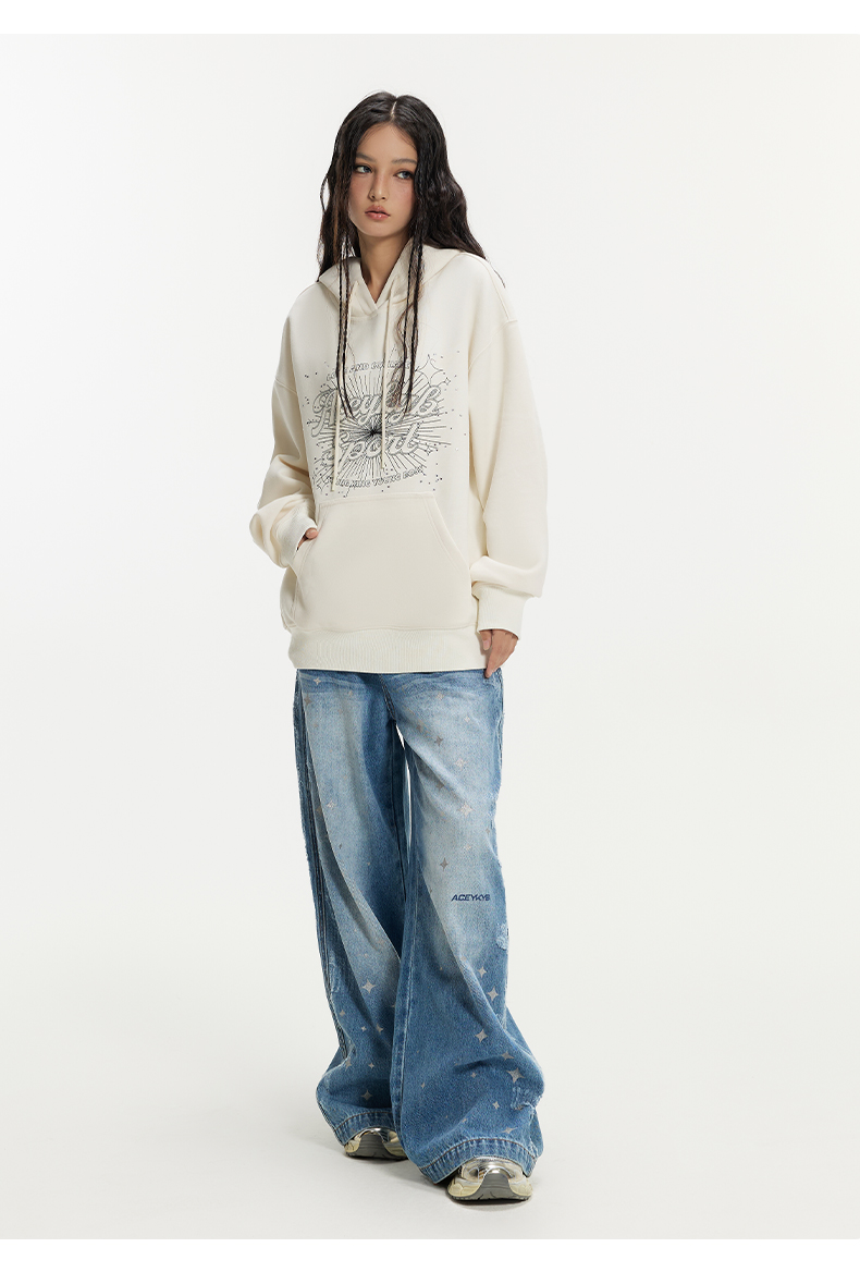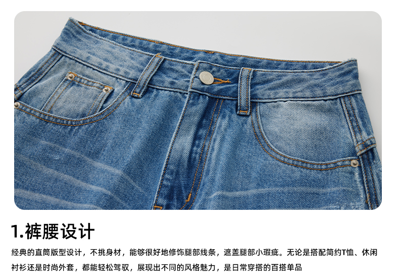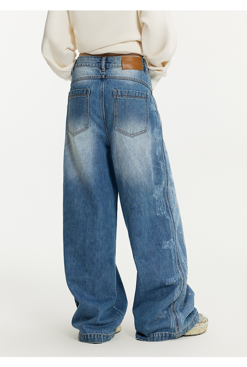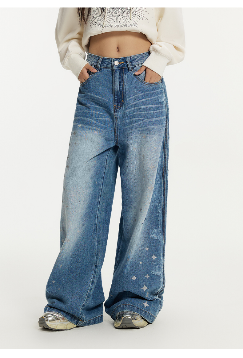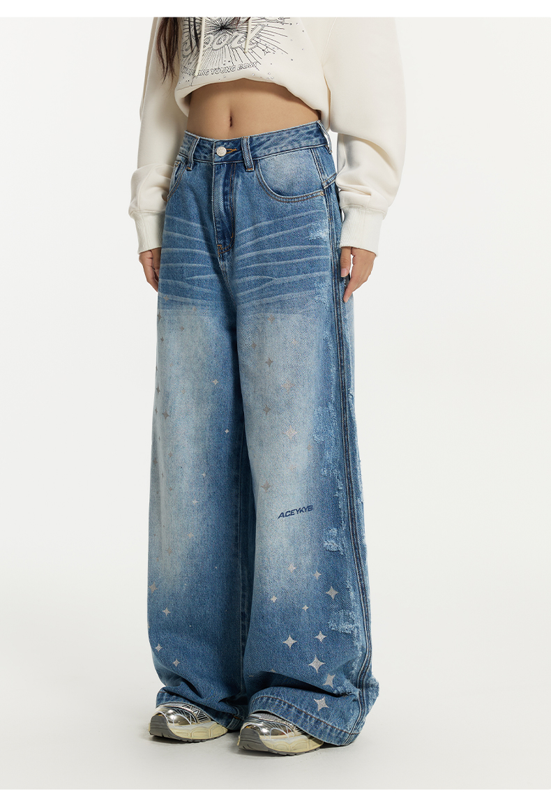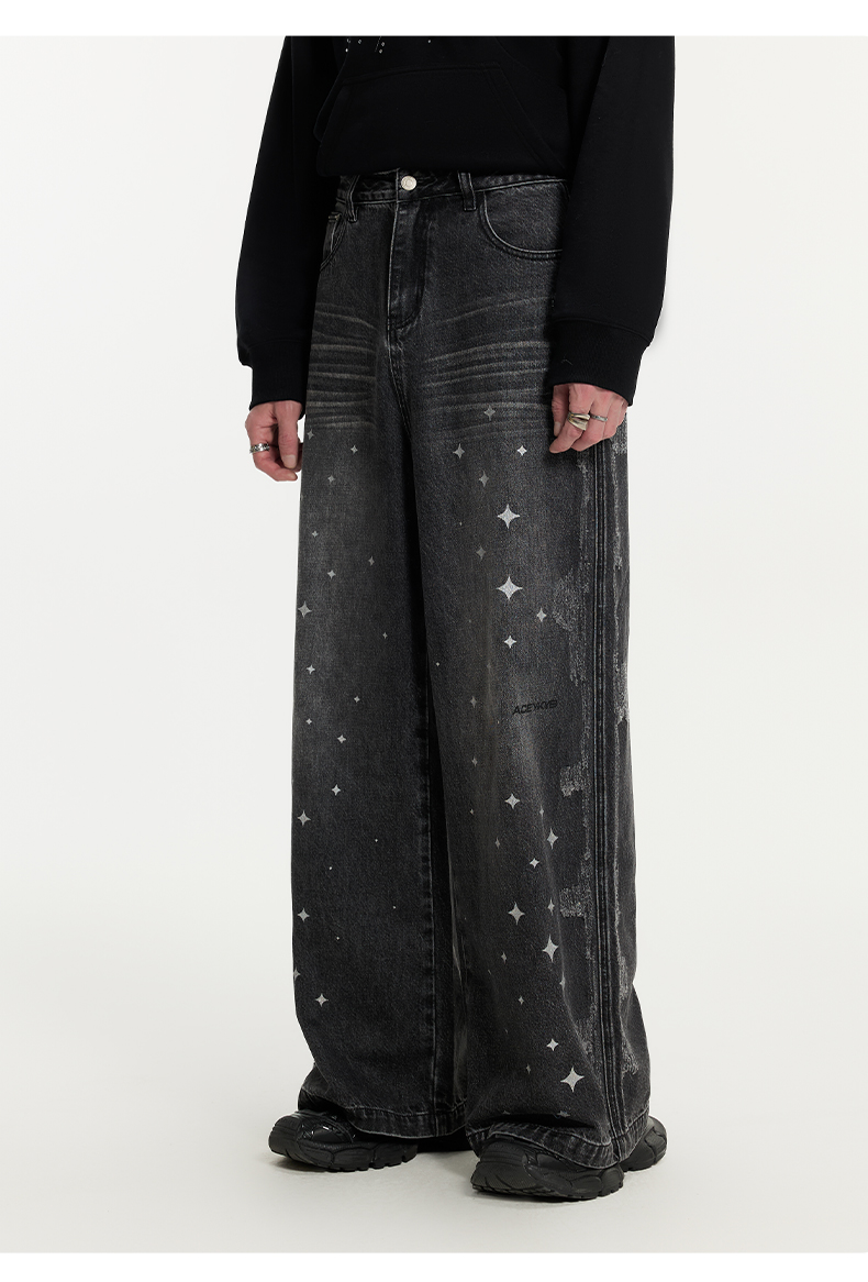 YKYB黄子韬 潮流美式复古宽松直筒牛仔裤 设计亮钻细闪休闲长裤秋