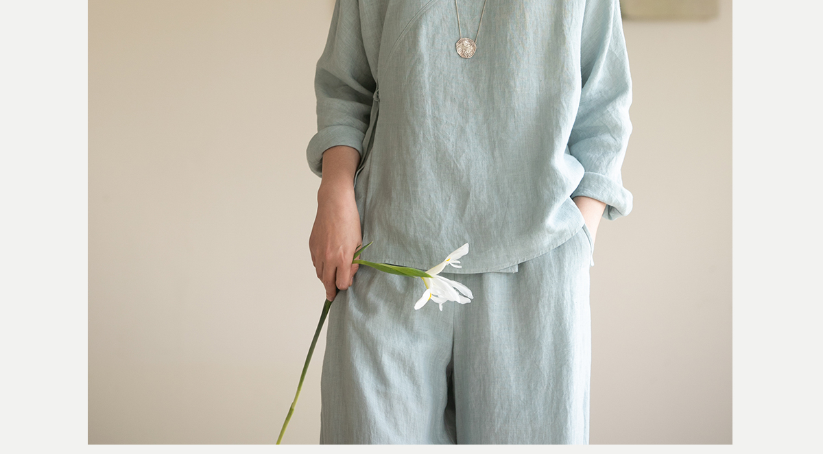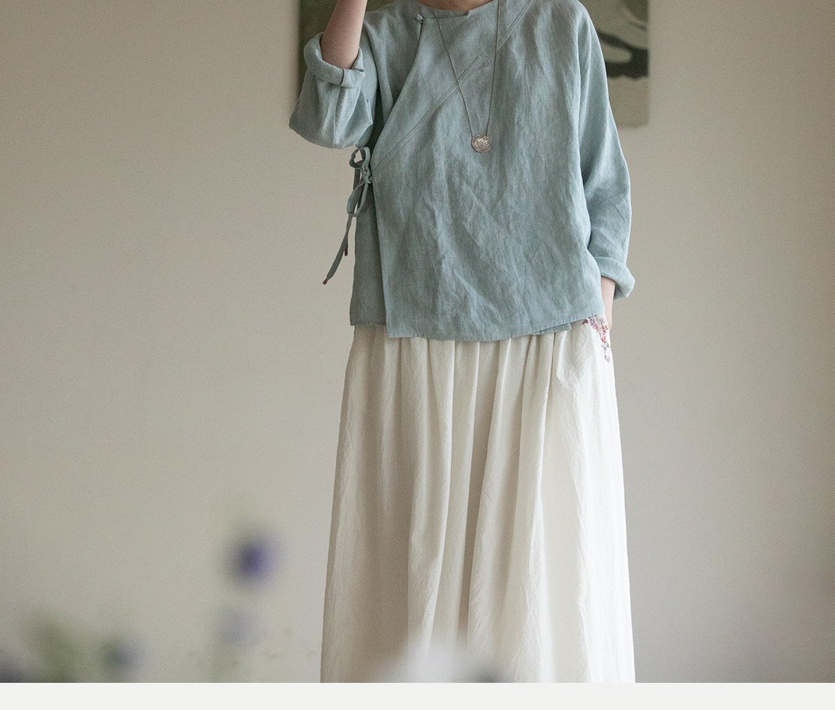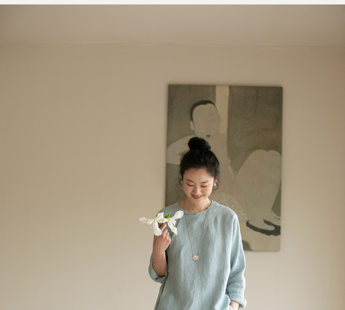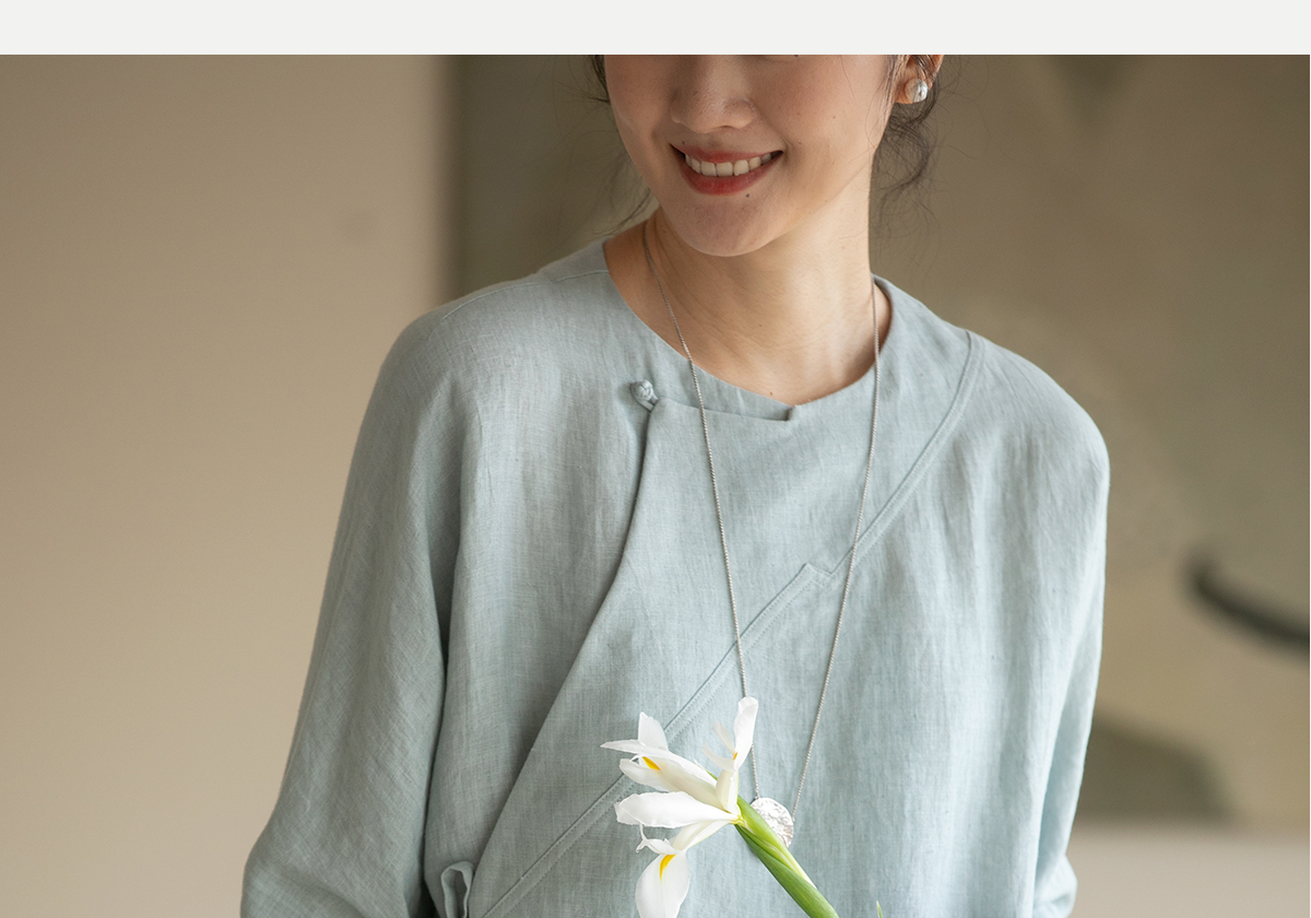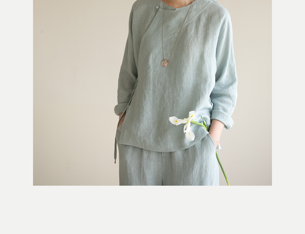 牧衣游原创 佰分佰细软汉麻净色短外套新款斜襟复古文艺开衫 花竹