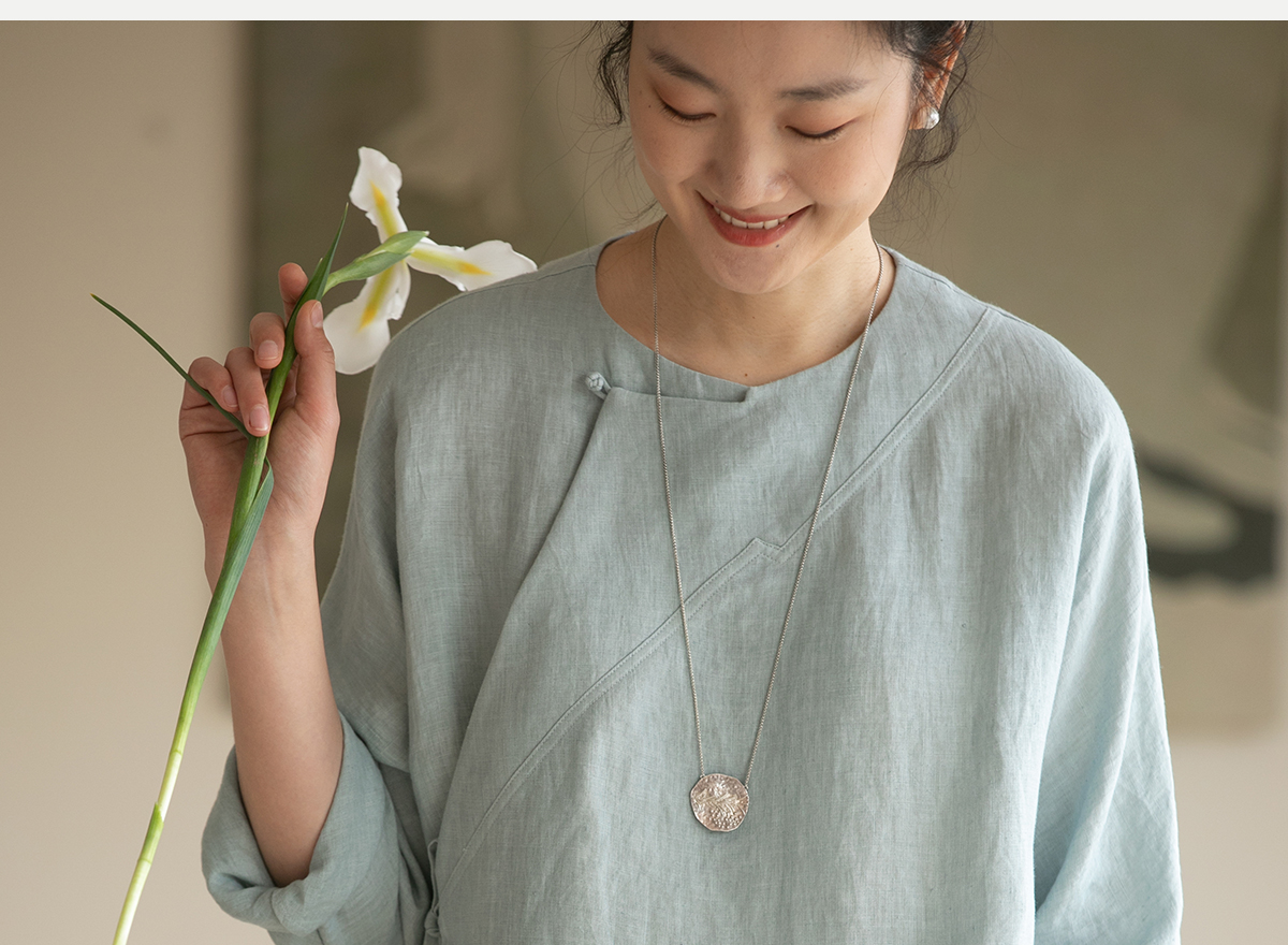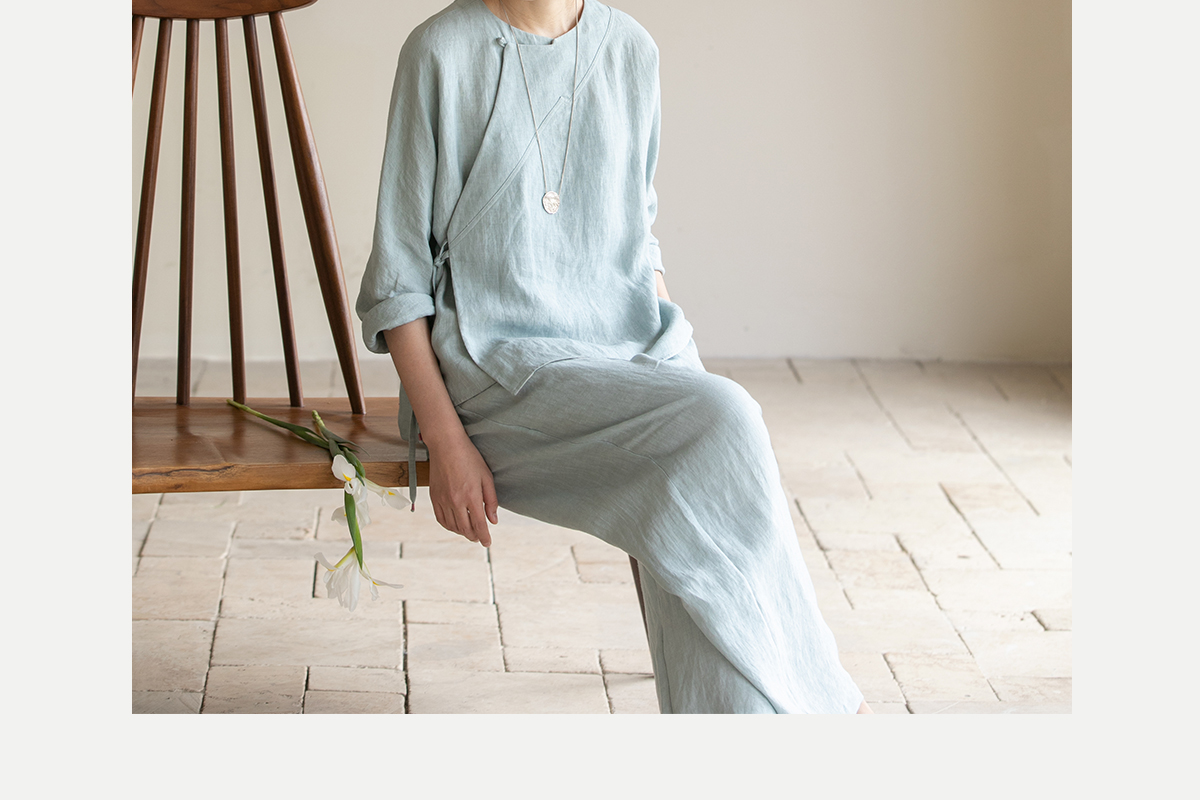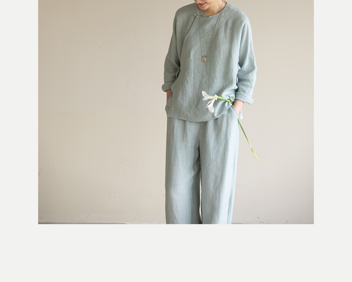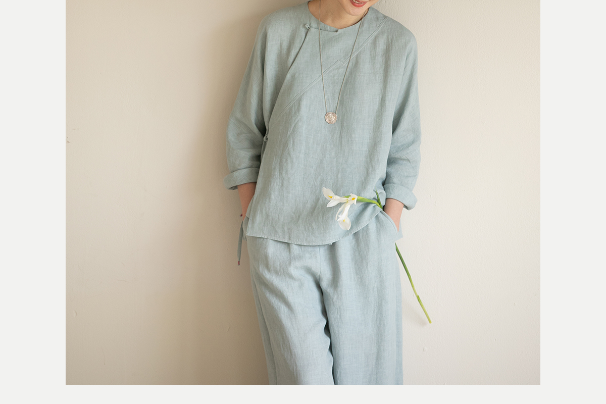 牧衣游原创 佰分佰细软汉麻净色短外套新款斜襟复古文艺开衫 花竹