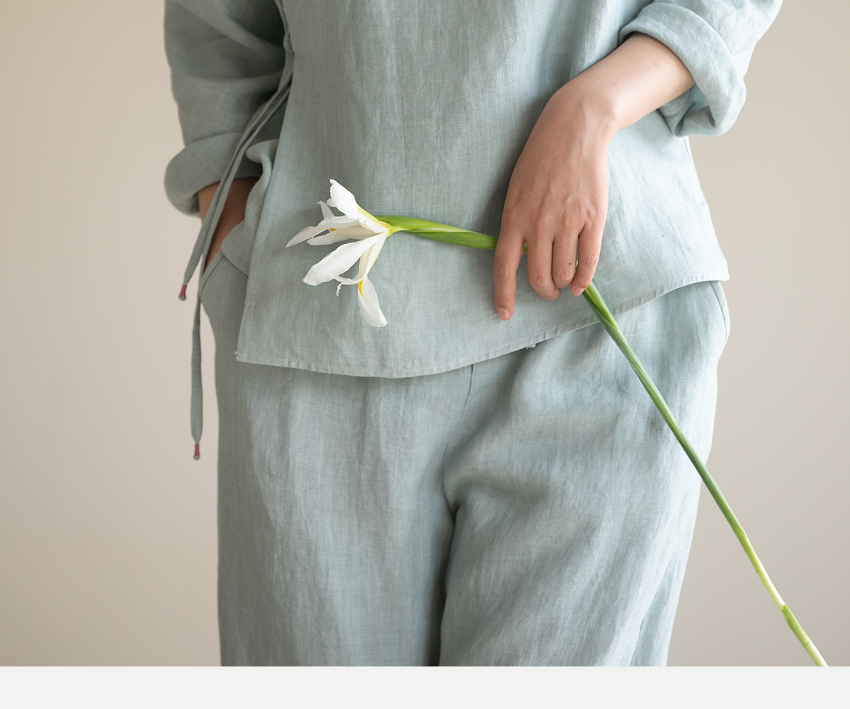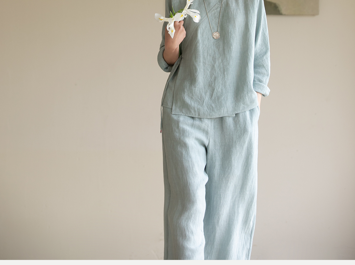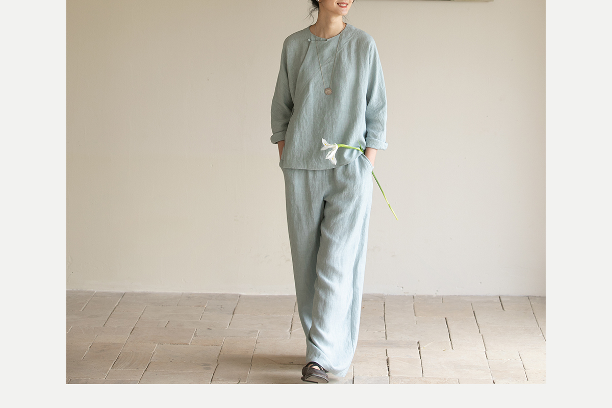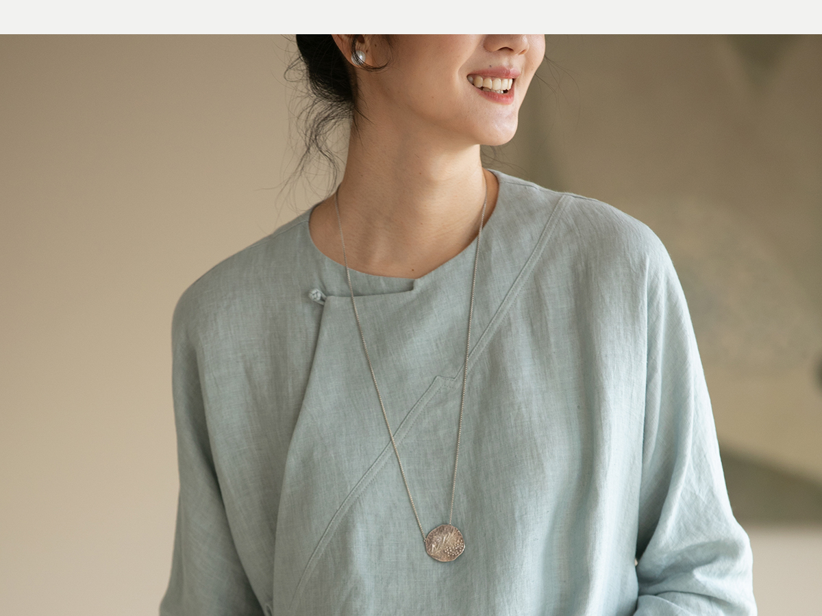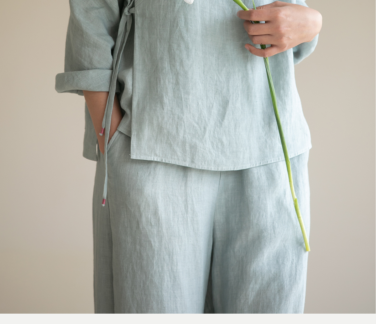 牧衣游原创 佰分佰细软汉麻净色短外套新款斜襟复古文艺开衫 花竹