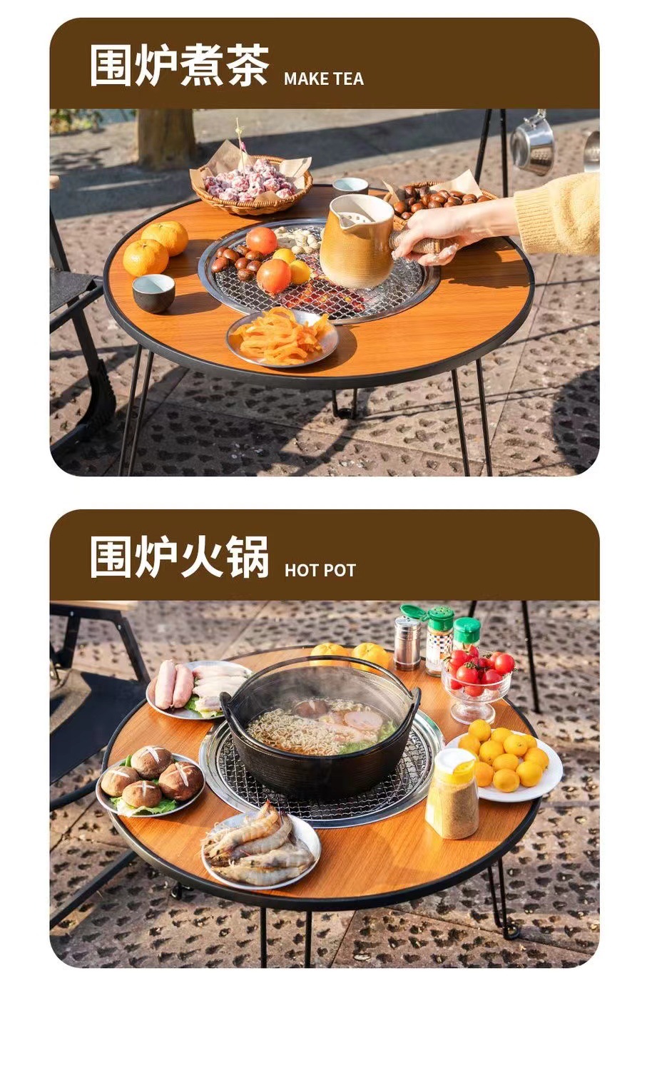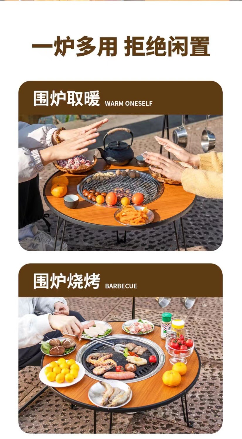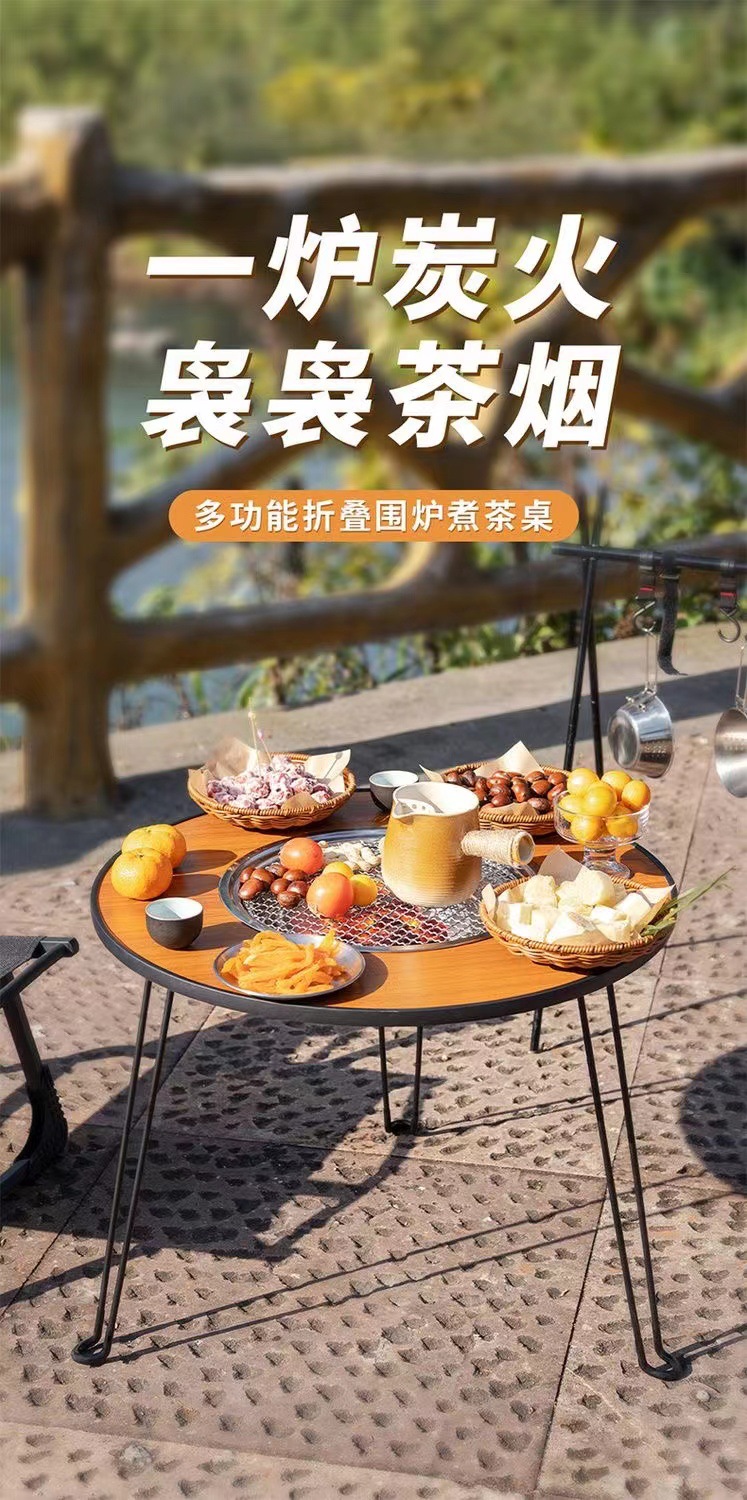 【轻盈便携!露营户外必备】探险熊围炉,纵情烹茶烤肉。便携折叠桌,户外露营必备。神奇三角结构,稳固支撑。多重体验等你发现,一炉多用,引爆户外狂欢!