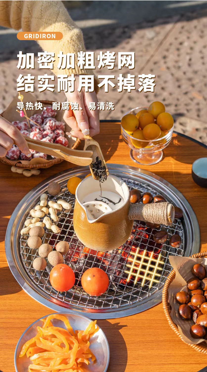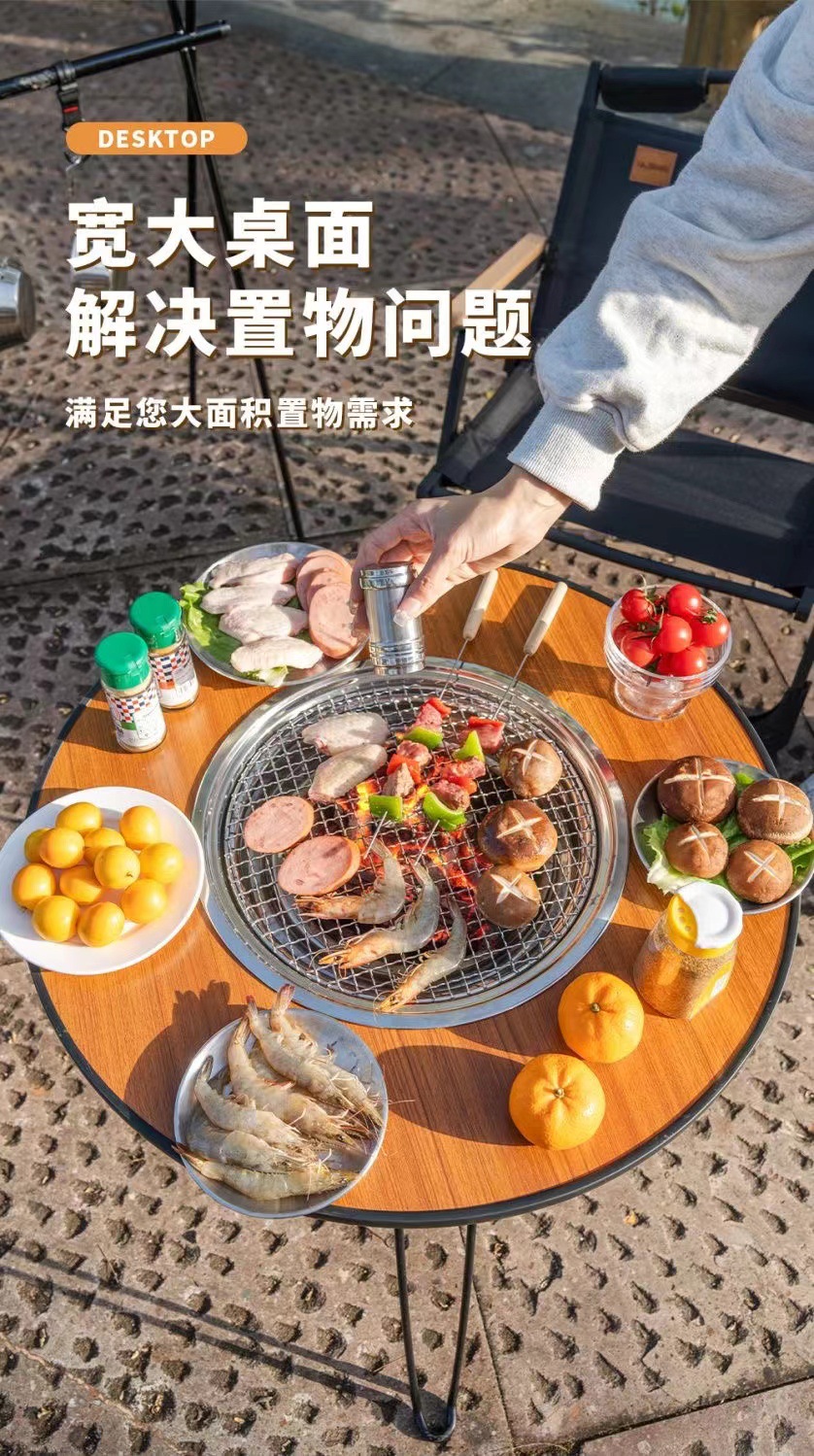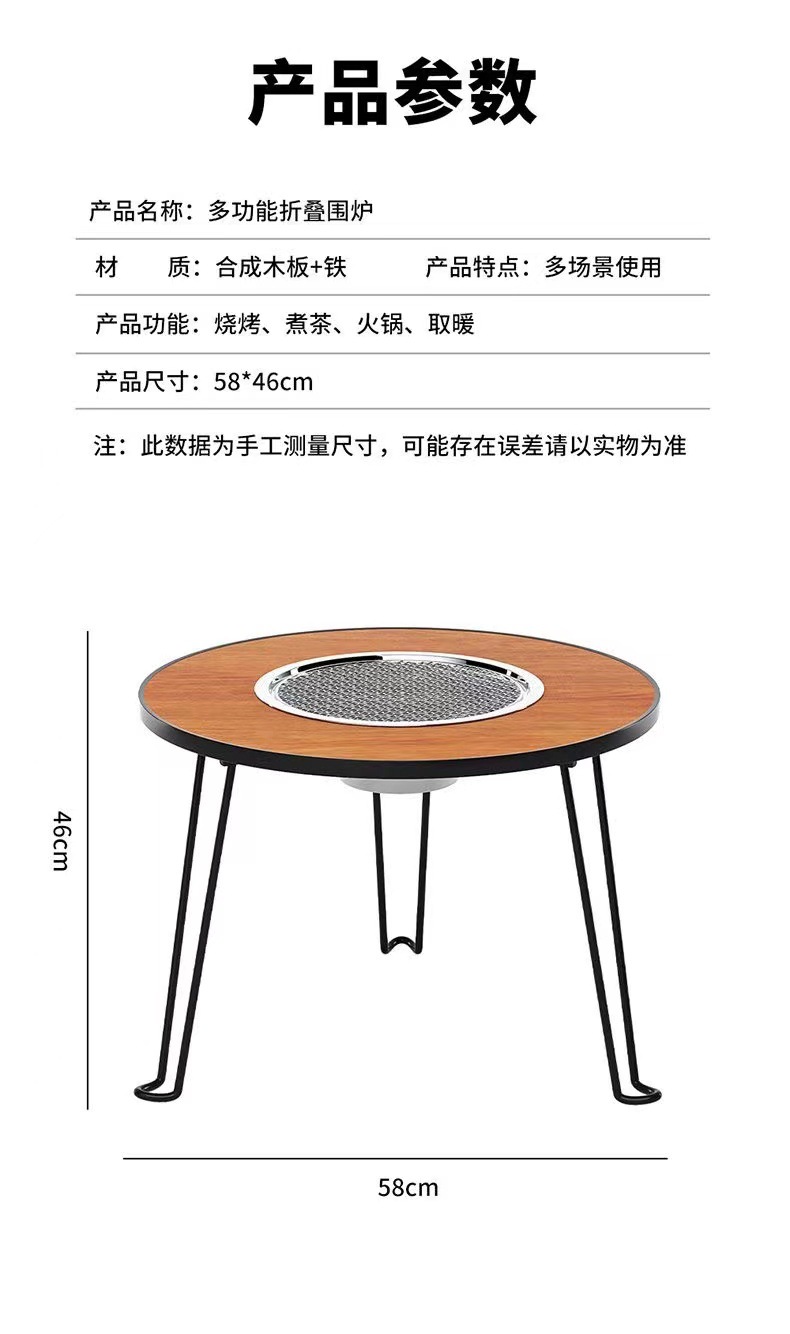 【轻盈便携!露营户外必备】探险熊围炉,纵情烹茶烤肉。便携折叠桌,户外露营必备。神奇三角结构,稳固支撑。多重体验等你发现,一炉多用,引爆户外狂欢!