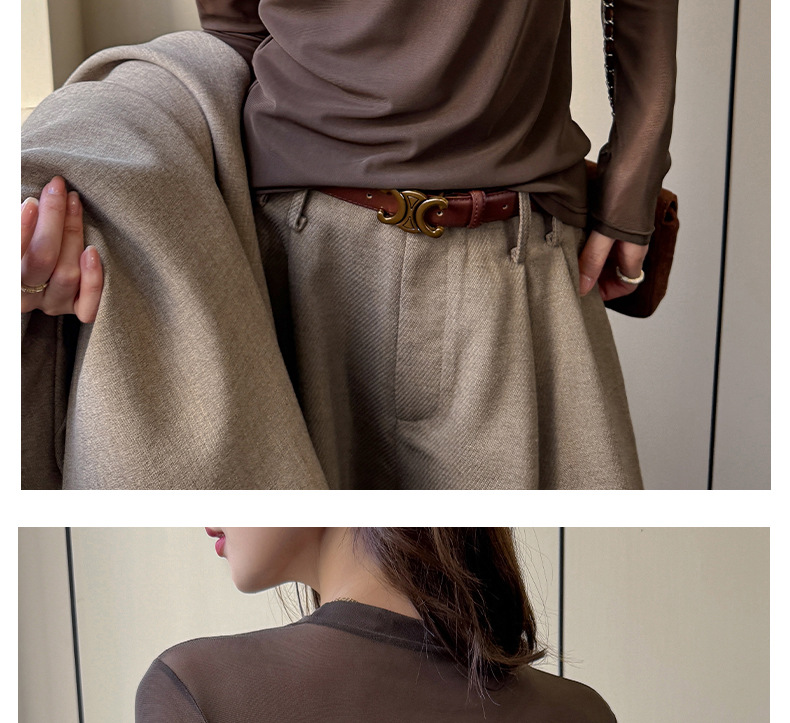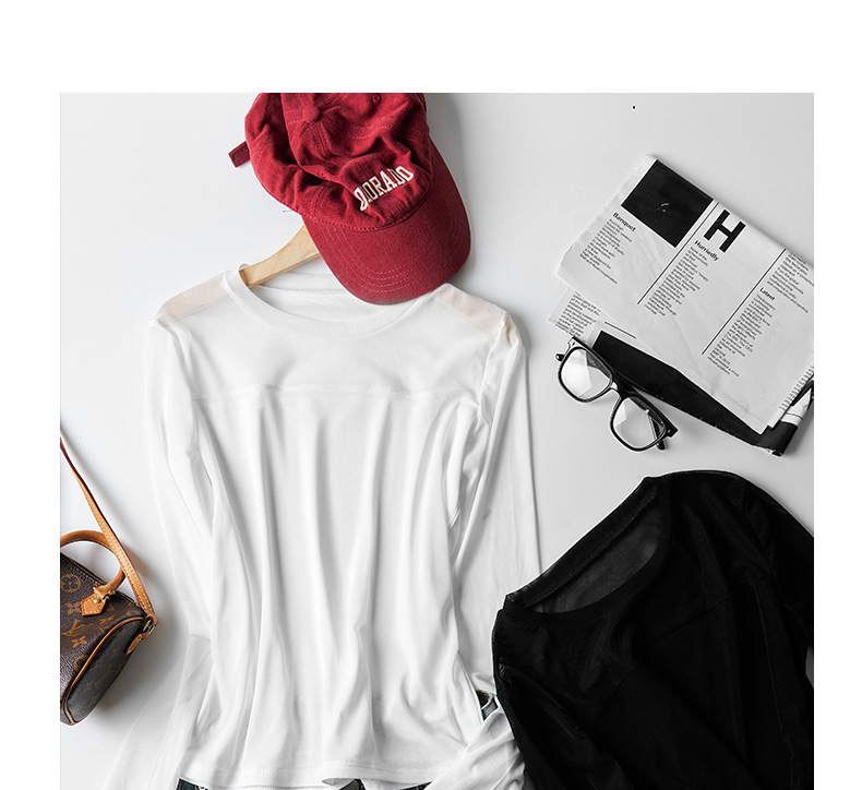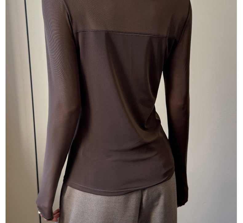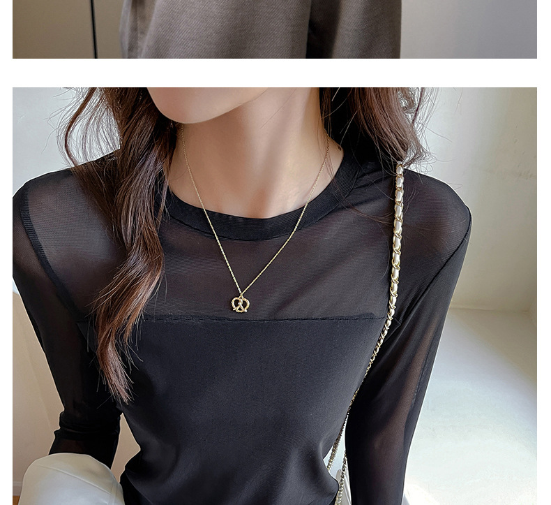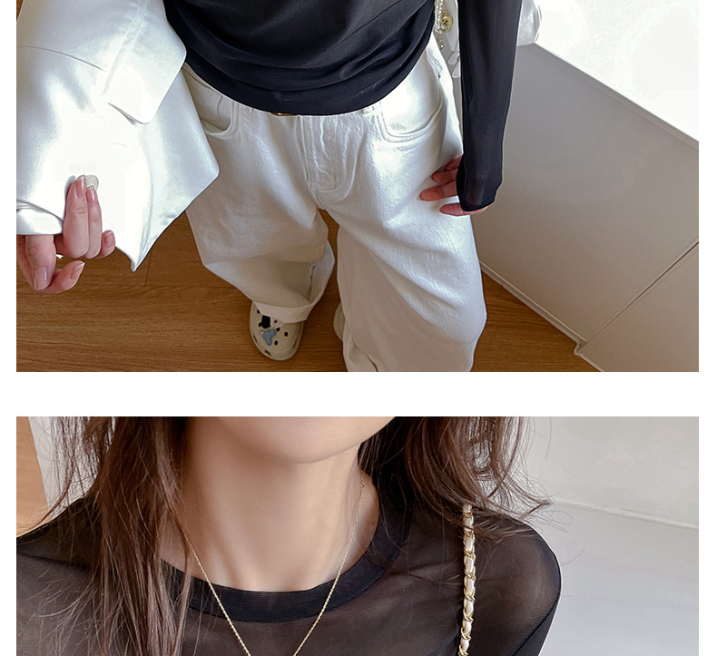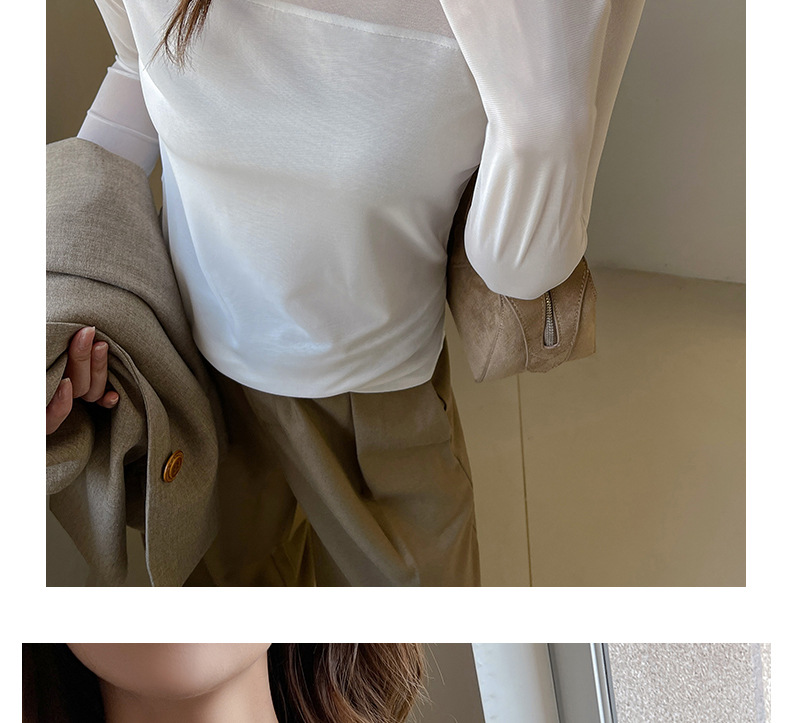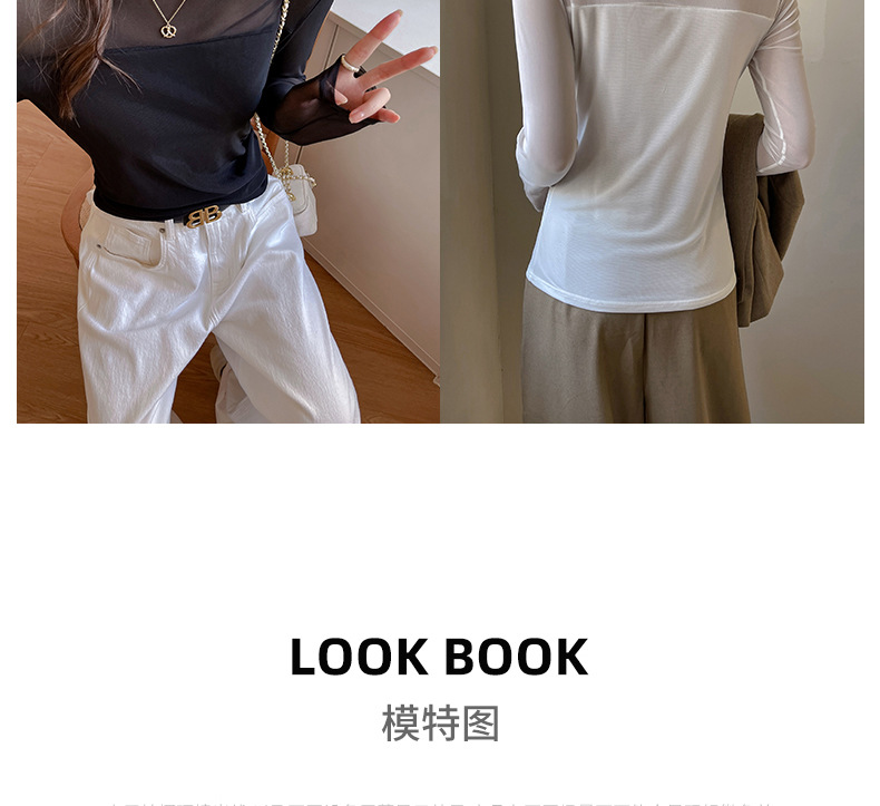 早秋新款2025新款秋冬圆领网纱拼接打底衫女内搭高级感长袖修身设计感上衣