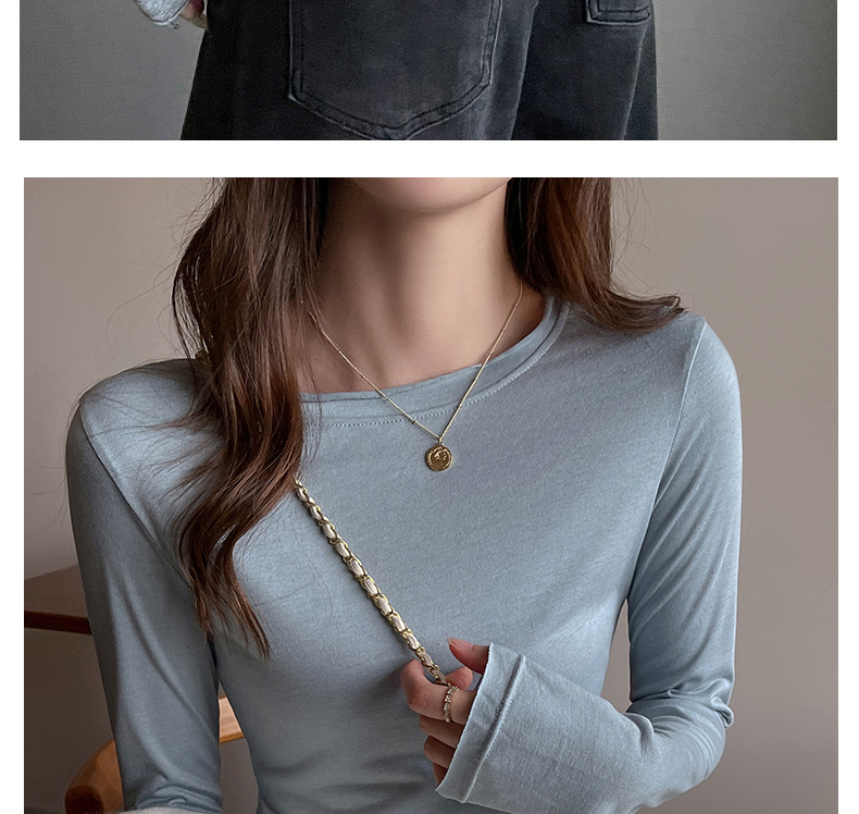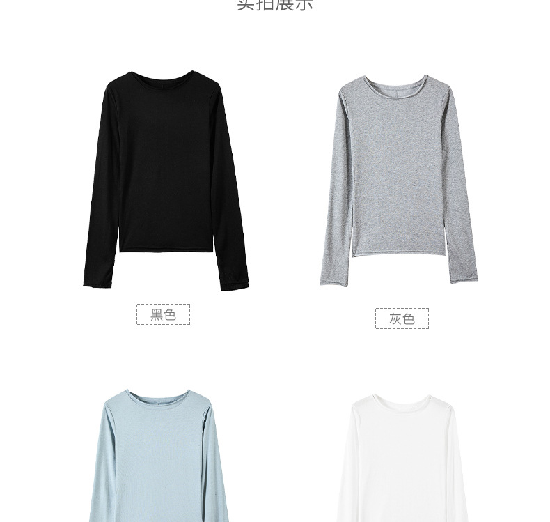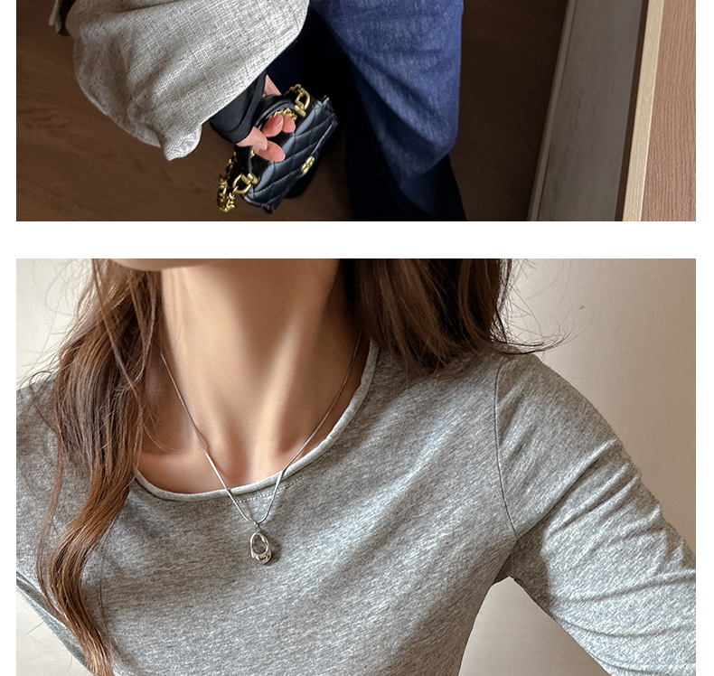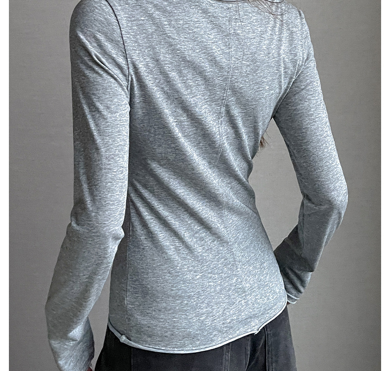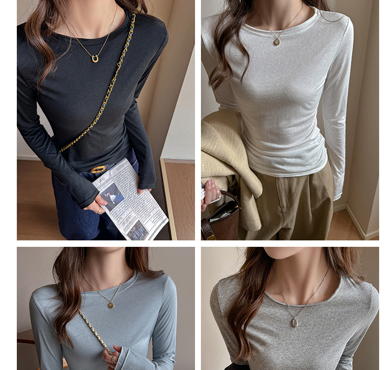 灰色美式圆领打底衫女内搭秋冬高级感正肩修身长袖t恤设计感上衣 商品图2