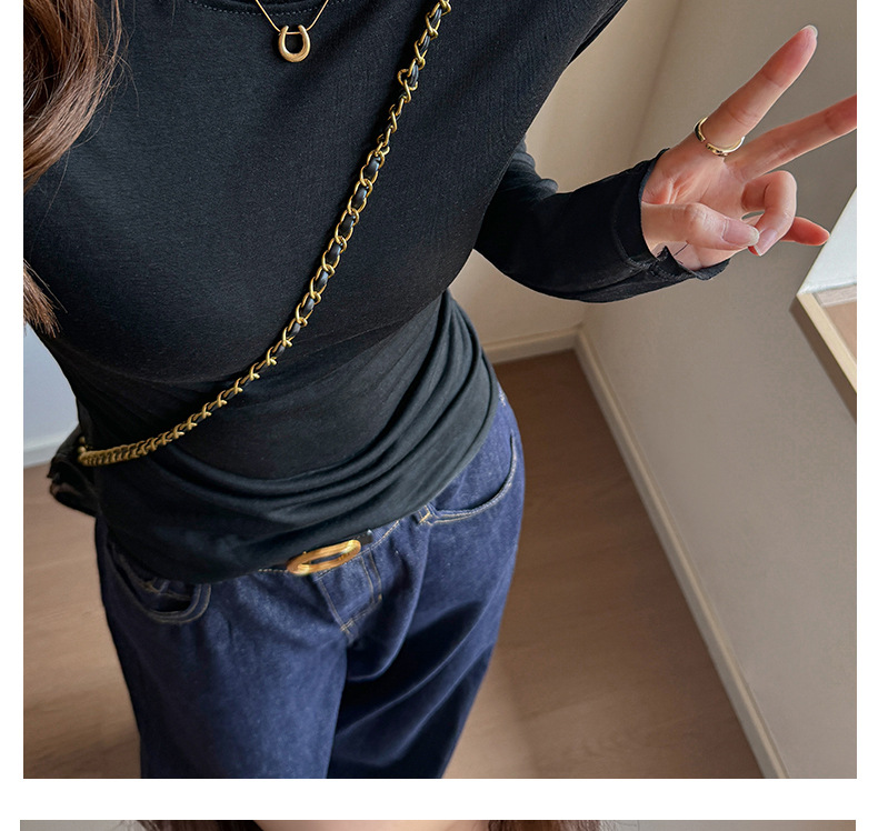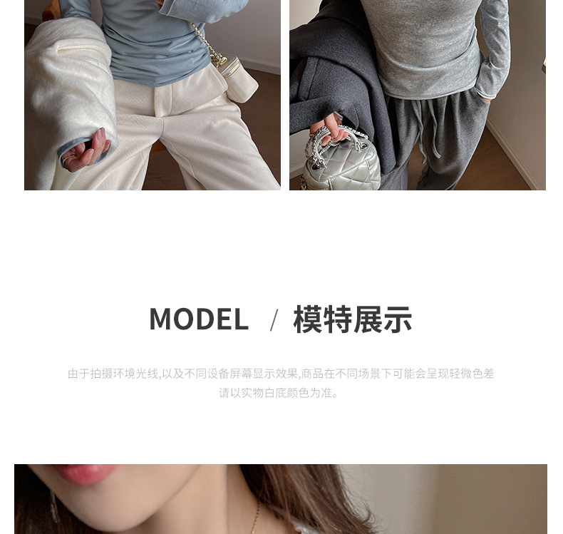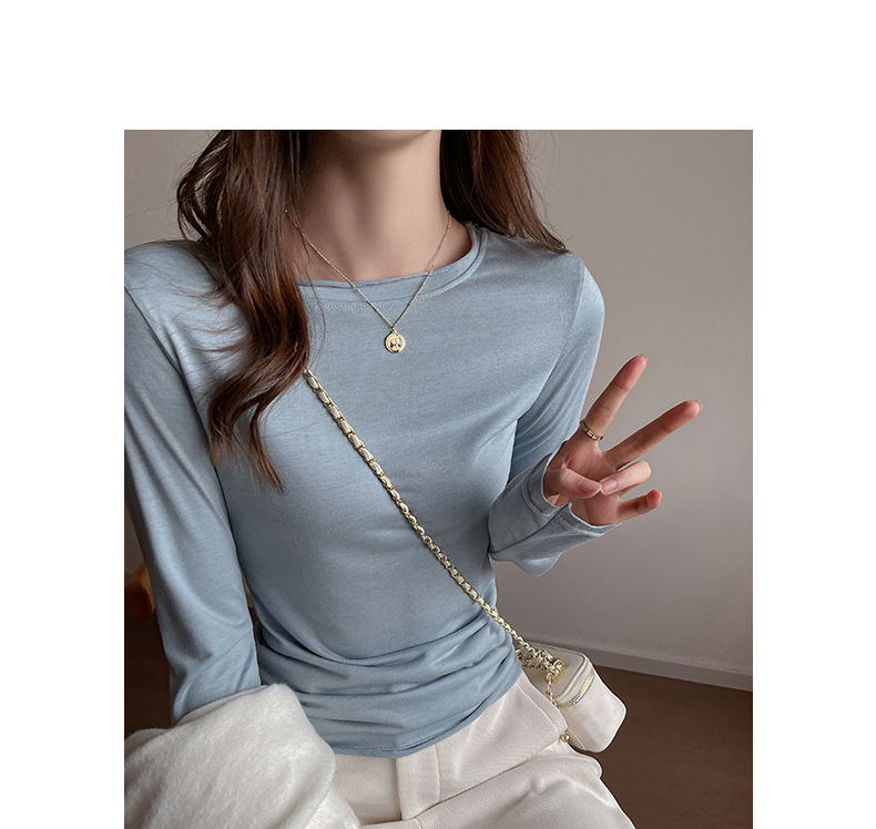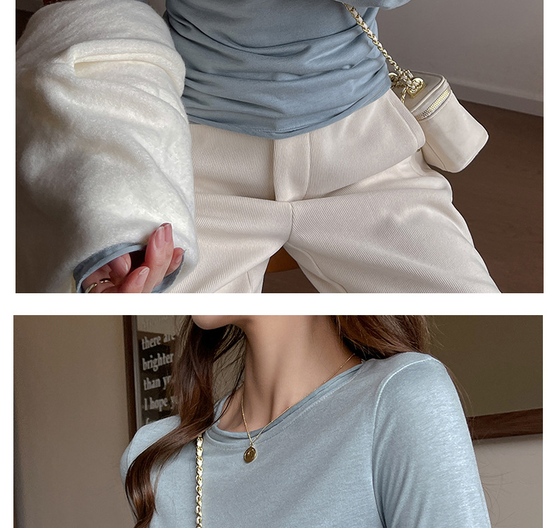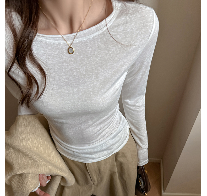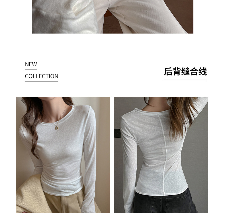 灰色美式圆领打底衫女内搭秋冬高级感正肩修身长袖t恤设计感上衣 商品图2
