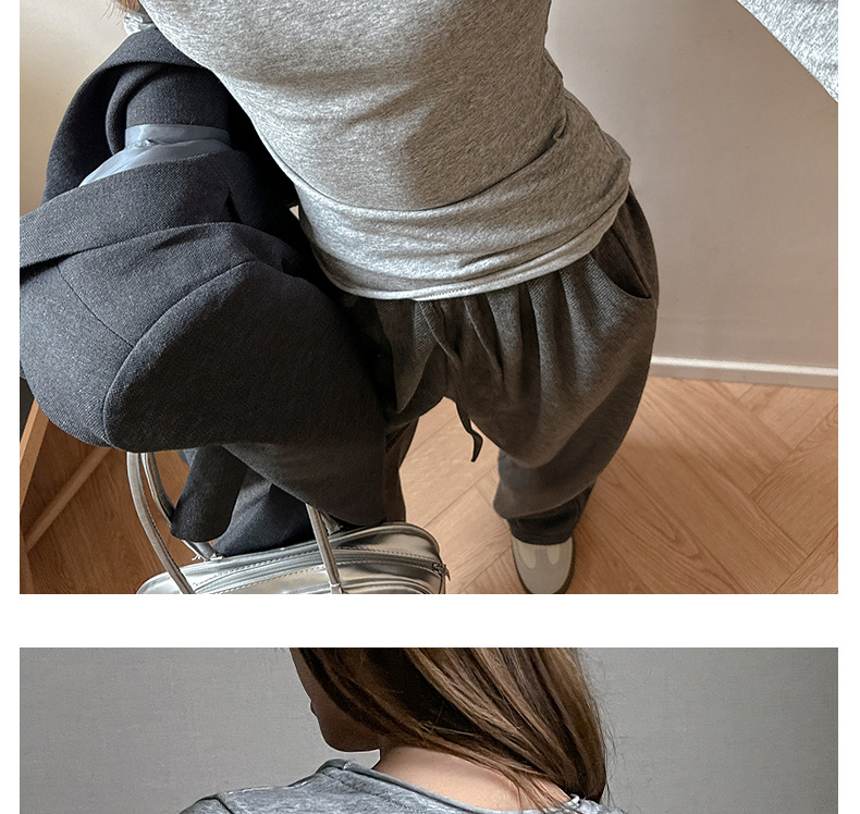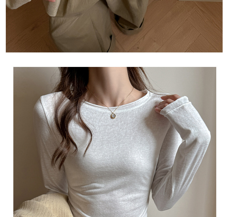 灰色美式圆领打底衫女内搭秋冬高级感正肩修身长袖t恤设计感上衣 商品图6