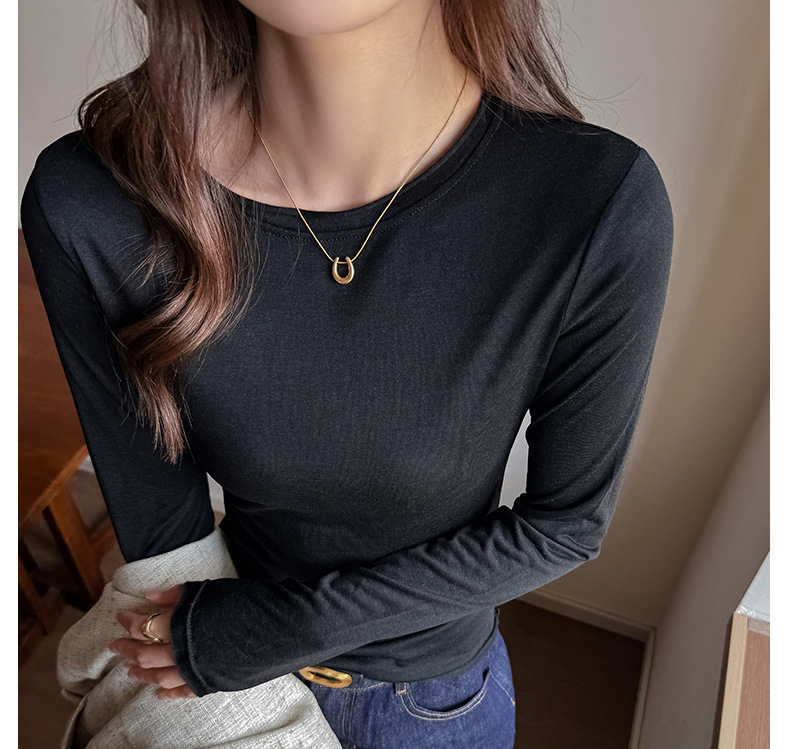 灰色美式圆领打底衫女内搭秋冬高级感正肩修身长袖t恤设计感上衣 商品图0