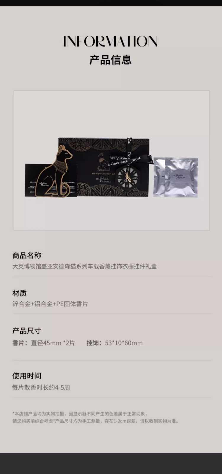 大英博物馆 盖亚·安德森猫系列 香薰挂饰车载衣橱挂件 香氛香挂礼盒