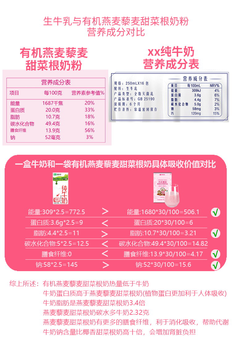 有机燕麦藜麦甜菜根奶 30g*8袋 商品图5