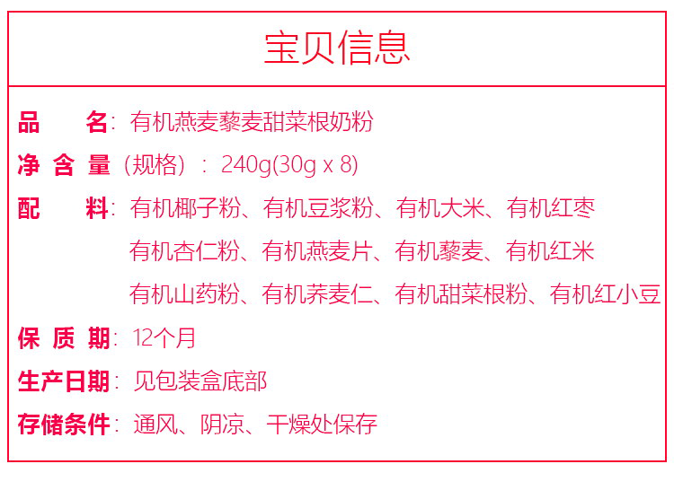 有机燕麦藜麦甜菜根奶 30g*8袋 商品图3