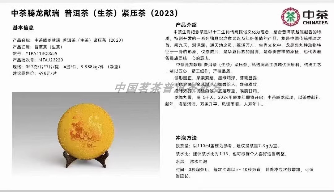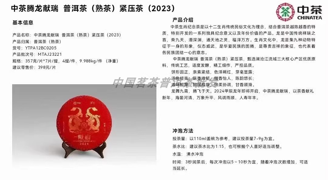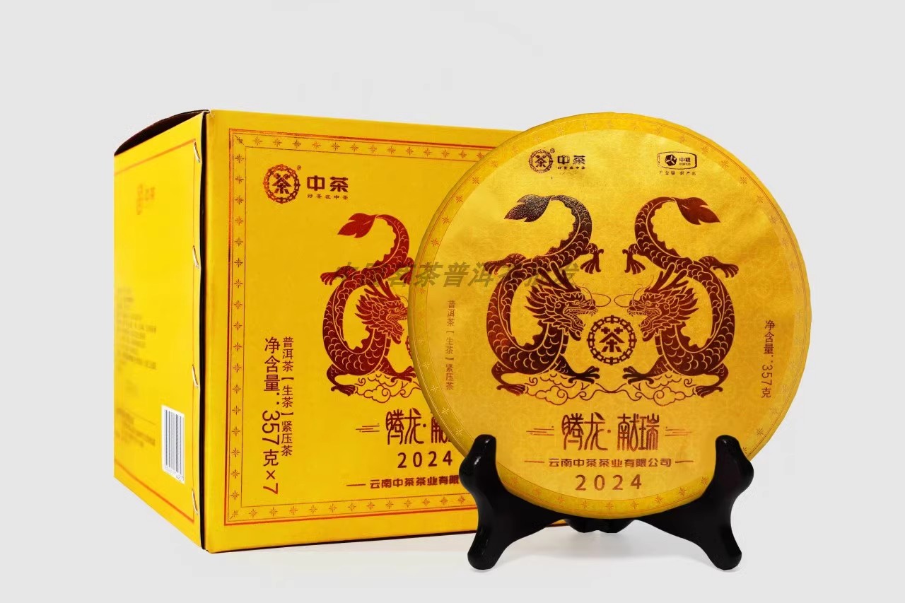 中粮-中茶 2024年中茶生肖腾龙献瑞普洱茶饼|一生茶一熟茶两饼714克 /干仓直发