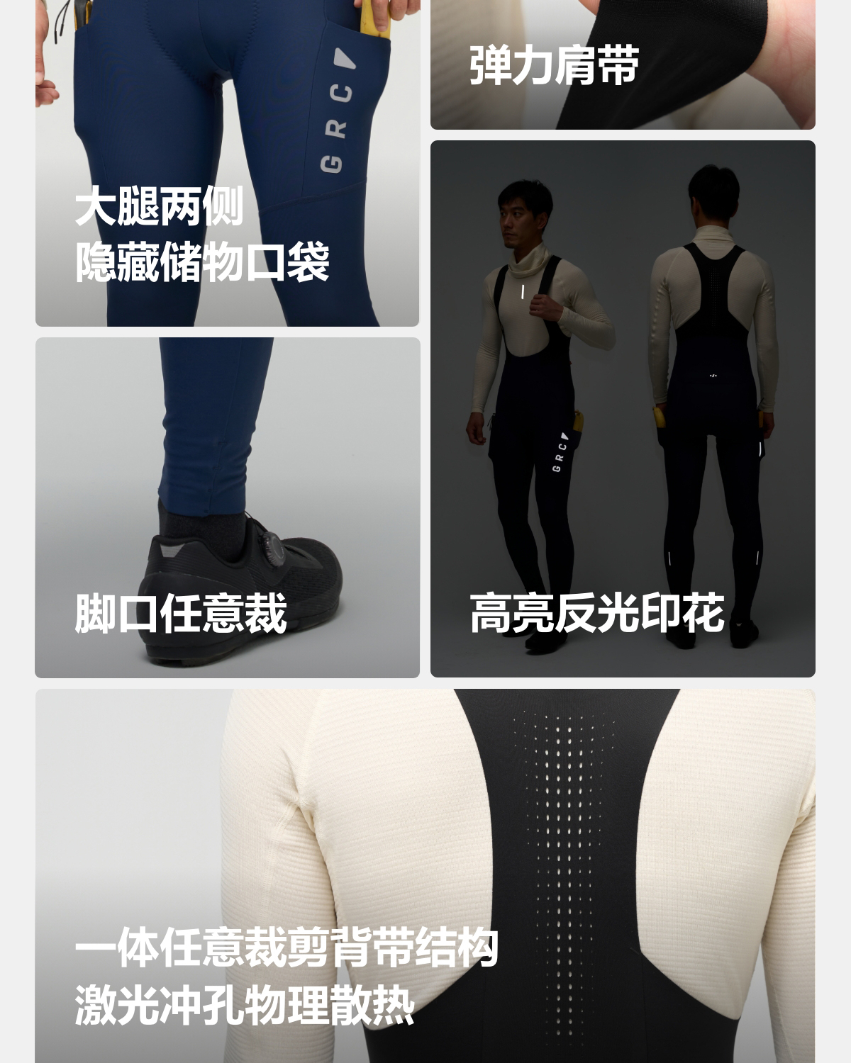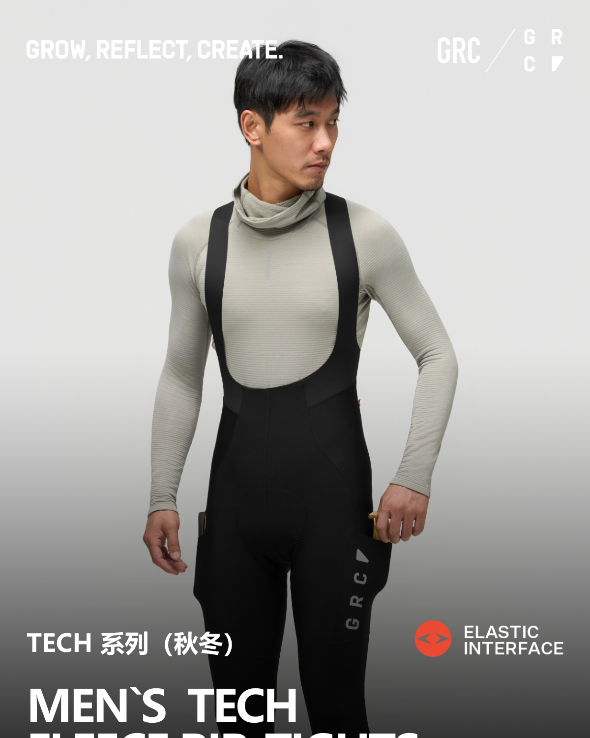 GRC桀骜无尽秋冬新款TECH系列反光抓绒公路背带骑行裤长裤男