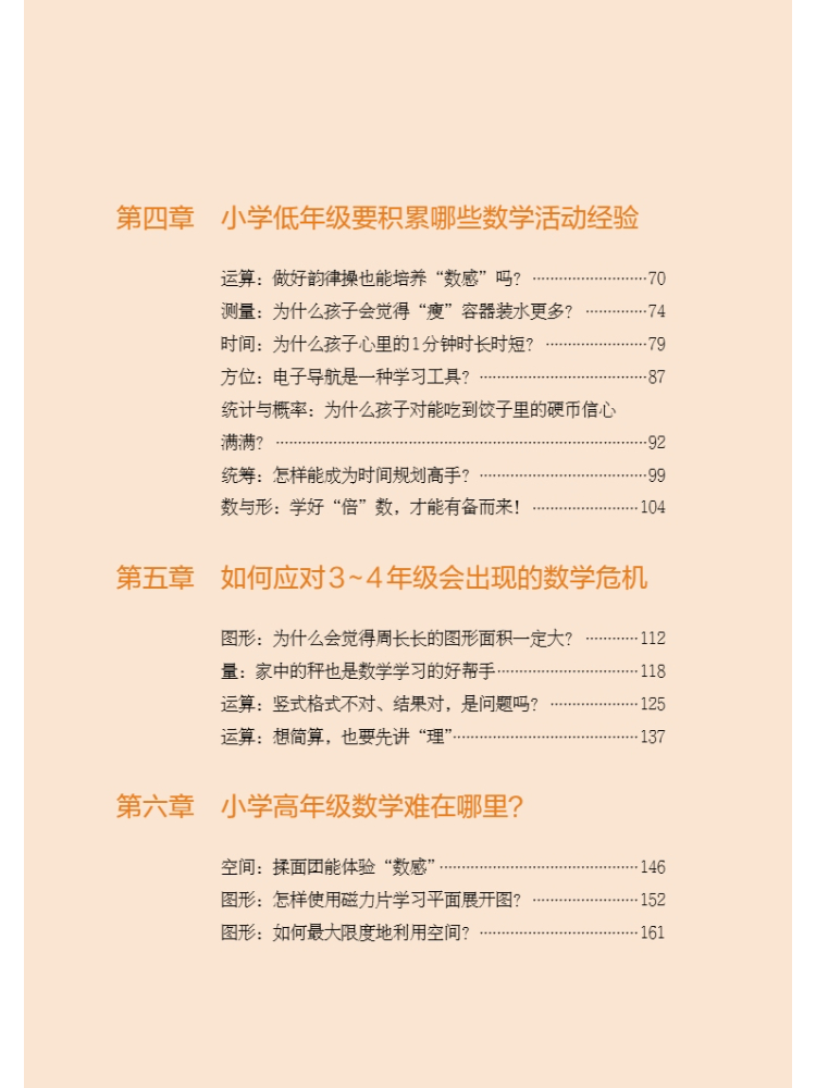 数学的学习既依赖于孩子大脑发展水平,又需要家长有意识地采取一些行动,从而帮助孩子产生数学兴趣、积累数学经验。这个学习过程就像是闯关,只能循序渐进,不能超前、不能抢跑。为此,本书以孩子成长必经的5个阶段为线,以数学学习的6大内容为纲,提供了一份孩子3~12岁的数学学习地图,包括不同阶段数学学习的重点、难点及解决方案,帮家长搭设孩子数学学习坚实的脚手架;帮孩子建立学好数学的底气和自信,受益终身。