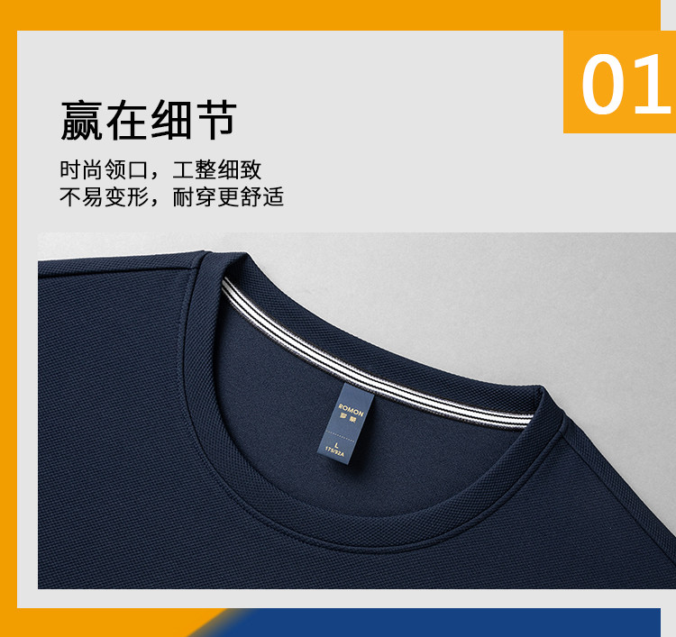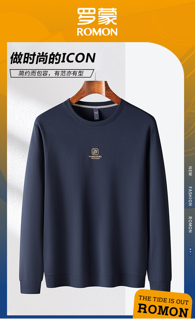 【肌理提花】罗蒙春秋男装时尚卫衣男士撞色绣花卫衣休闲百搭圆领长袖T恤男