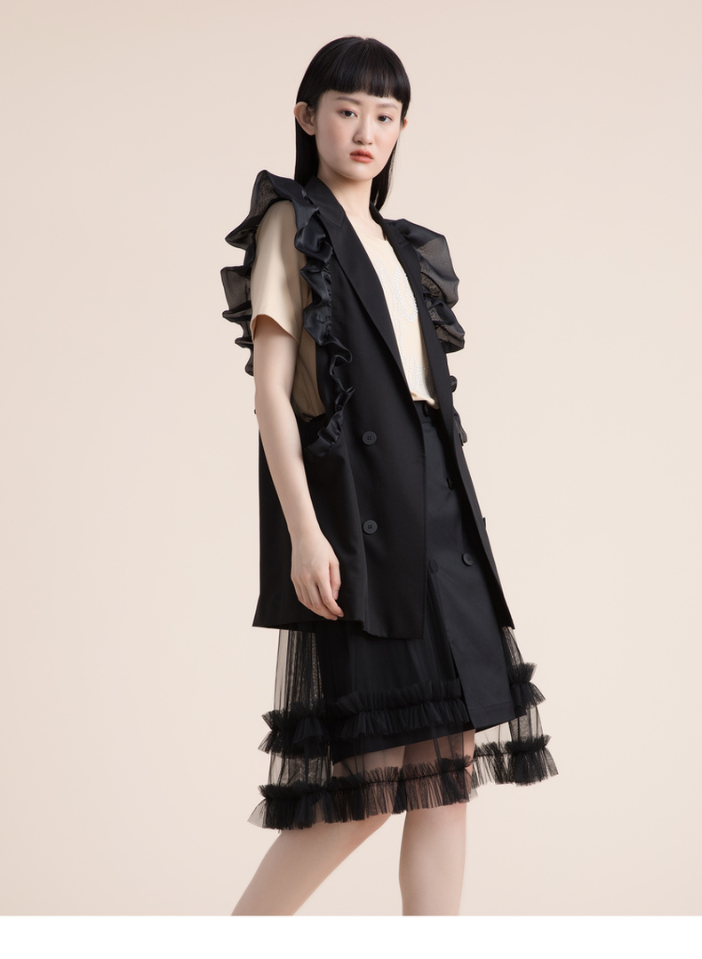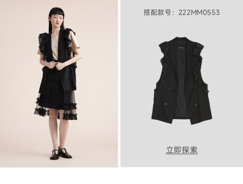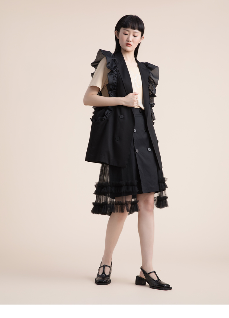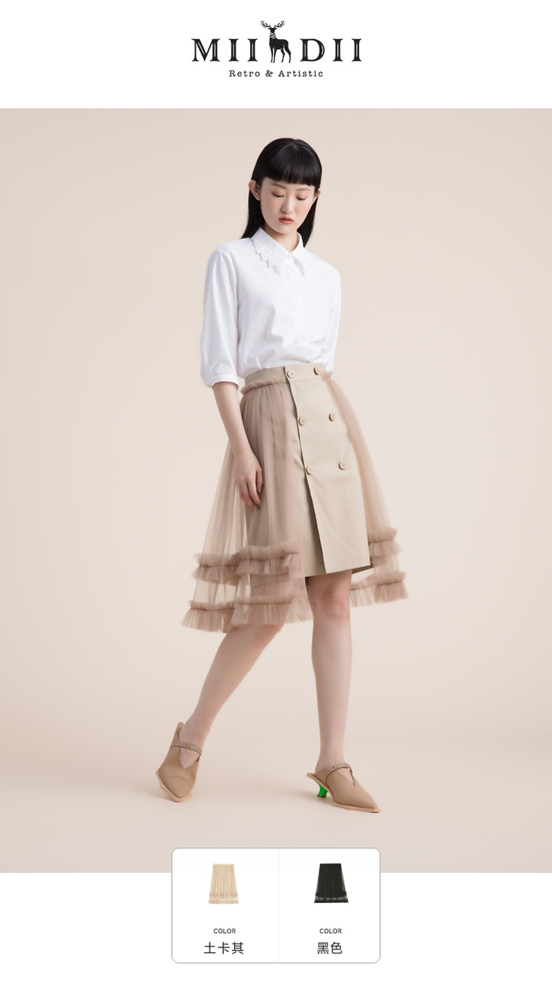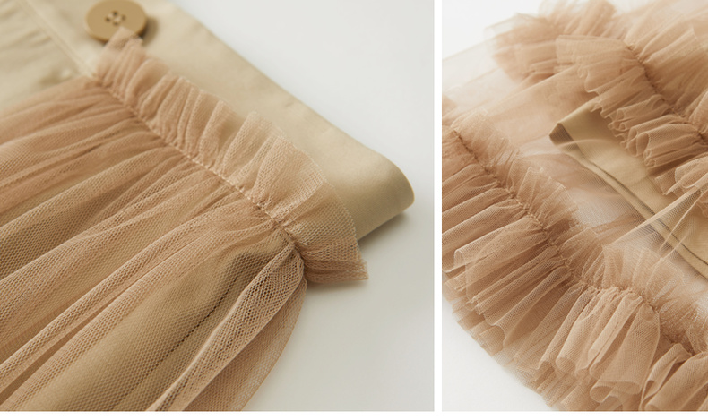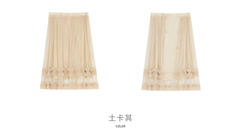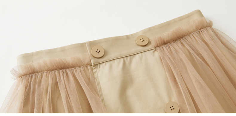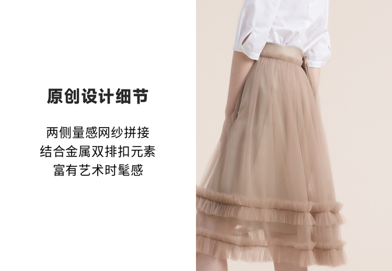 谜底2022夏季新款高腰显瘦双排扣A字仙女百褶网纱半身裙222MB0595