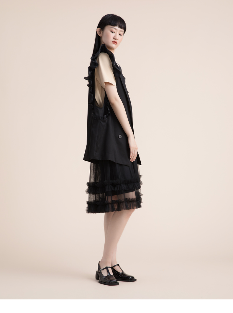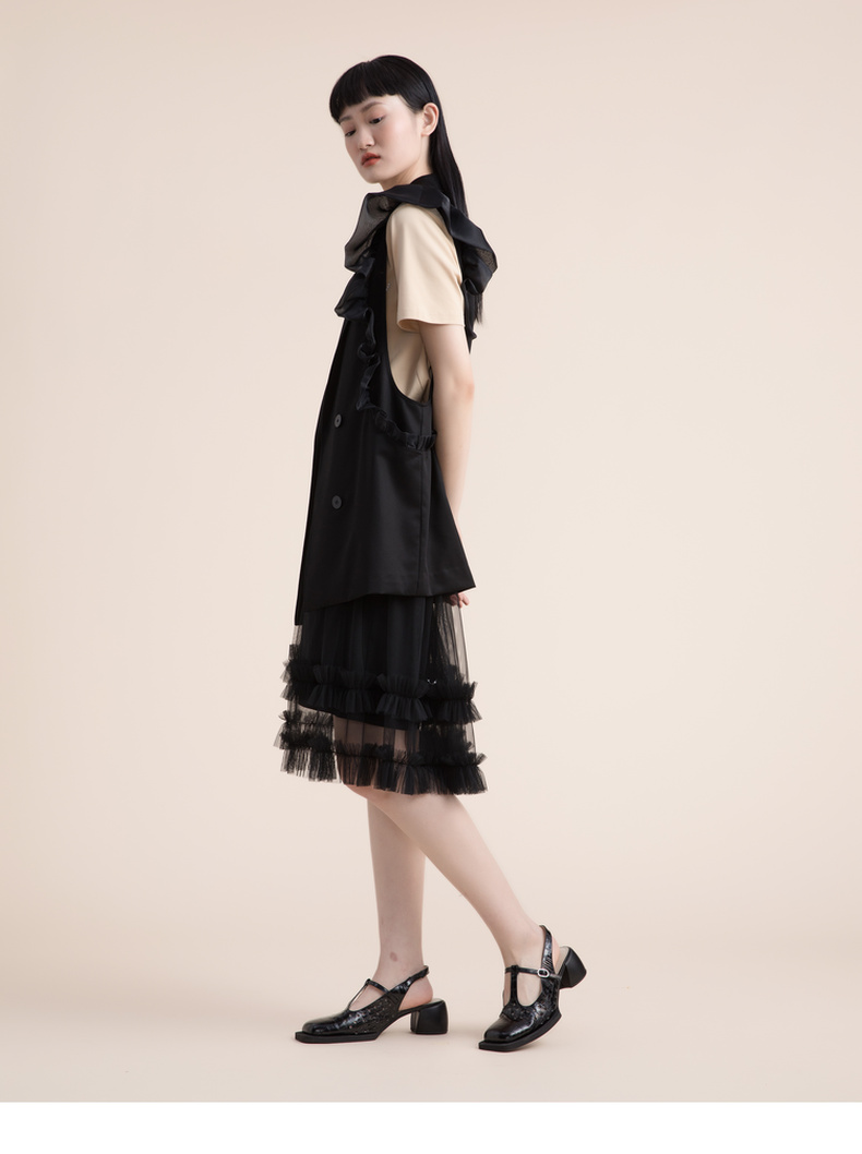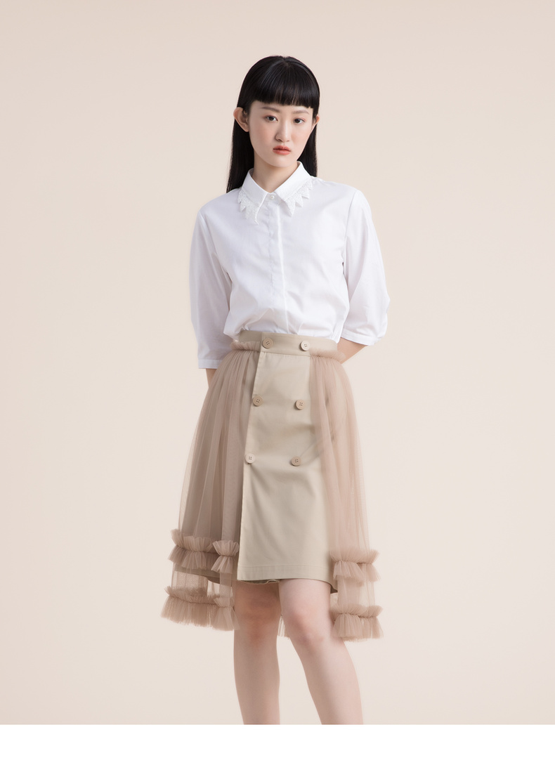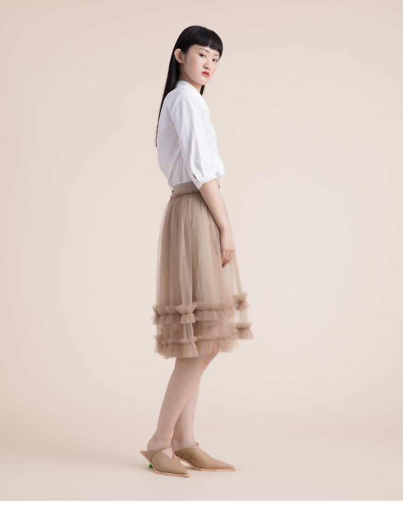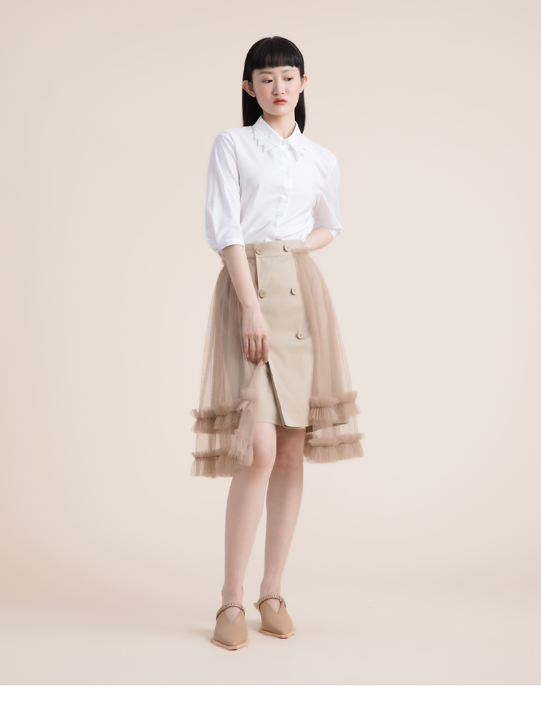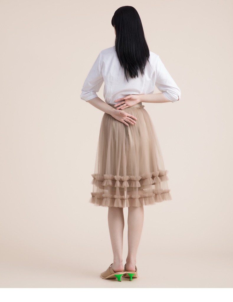 谜底2022夏季新款高腰显瘦双排扣A字仙女百褶网纱半身裙222MB0595
