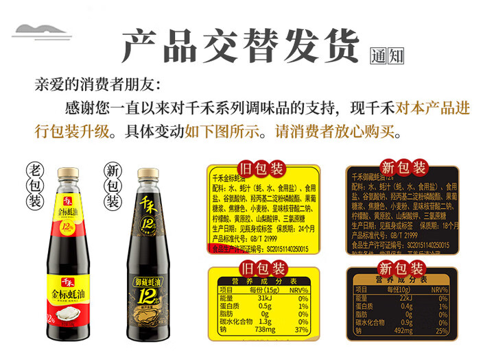 千禾 蚝油+白醋 御藏蚝油12% 510g+白醋500ml