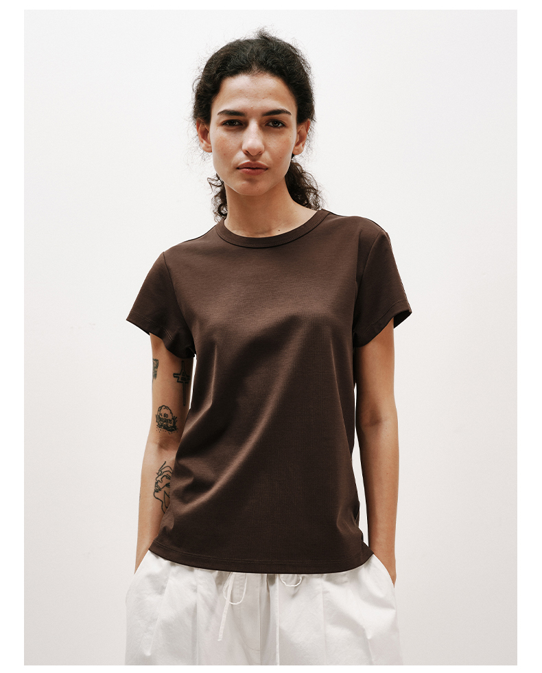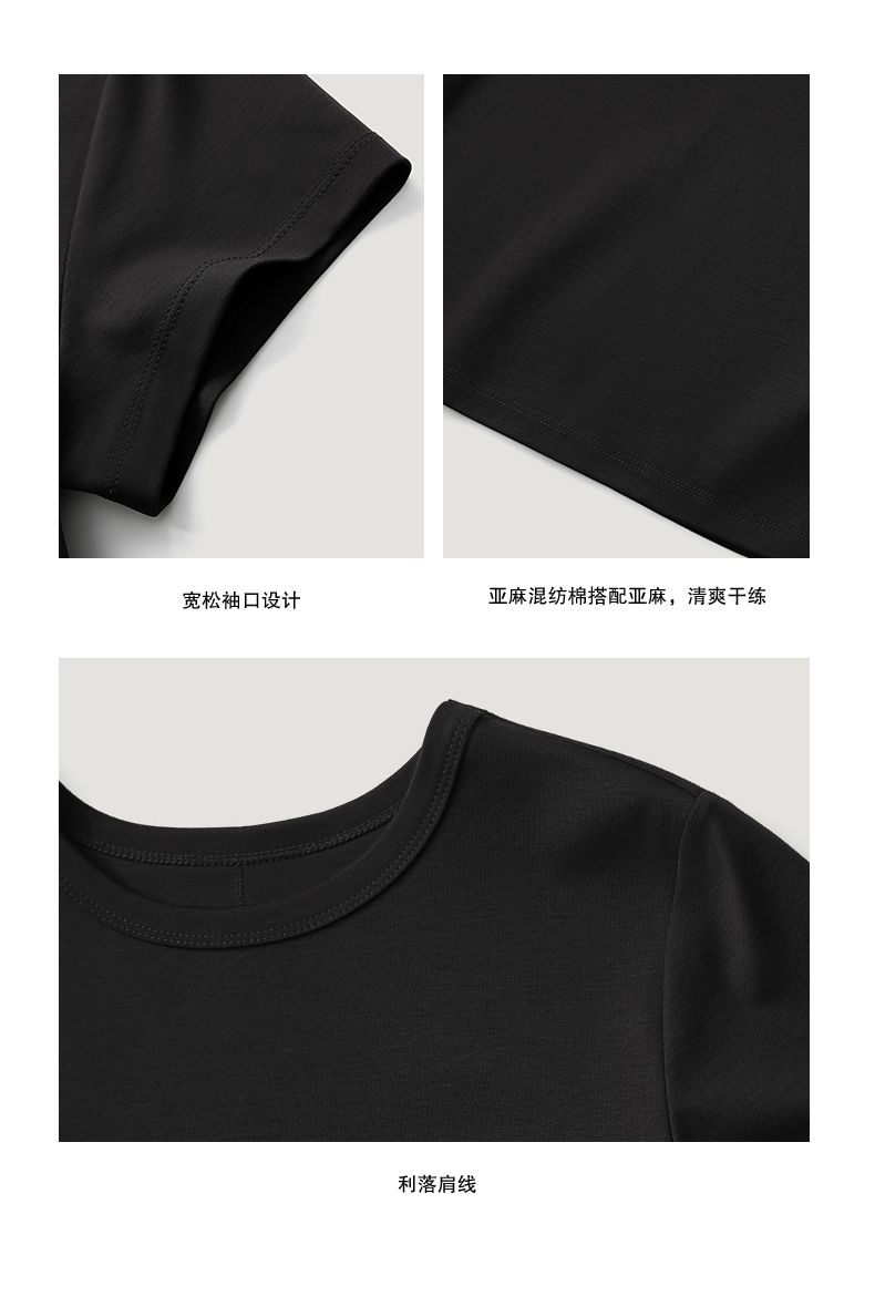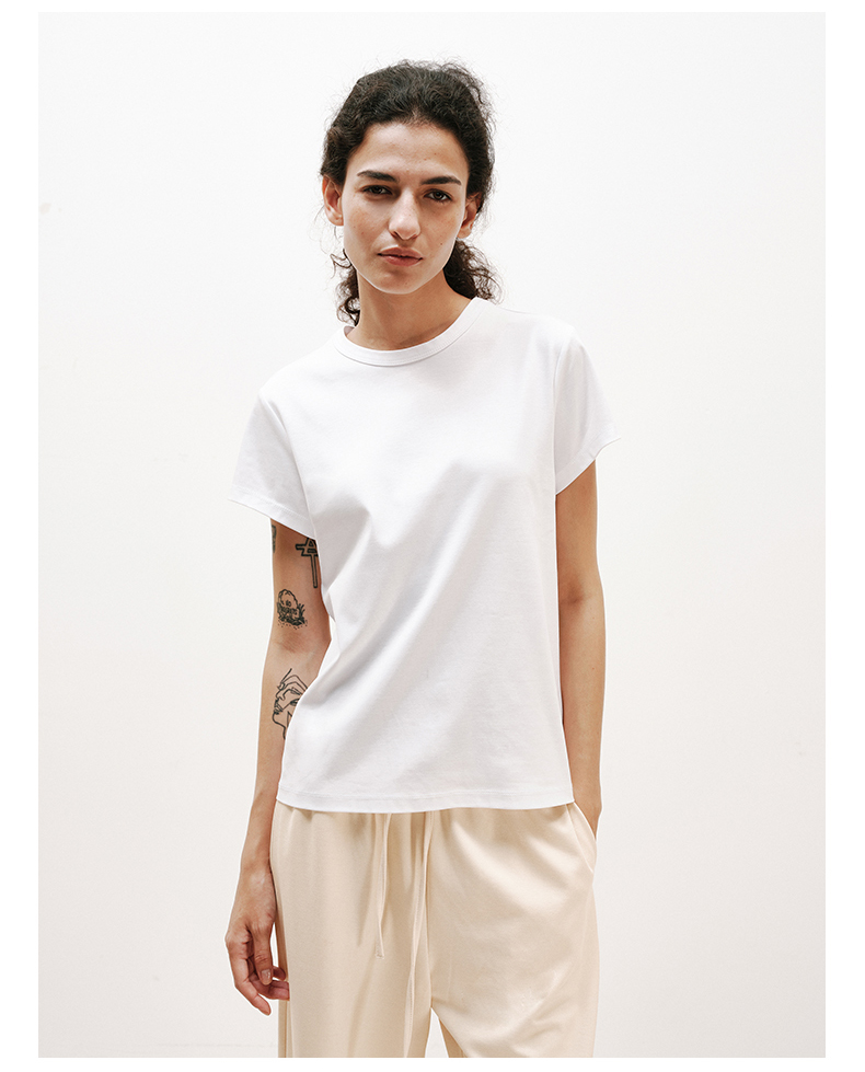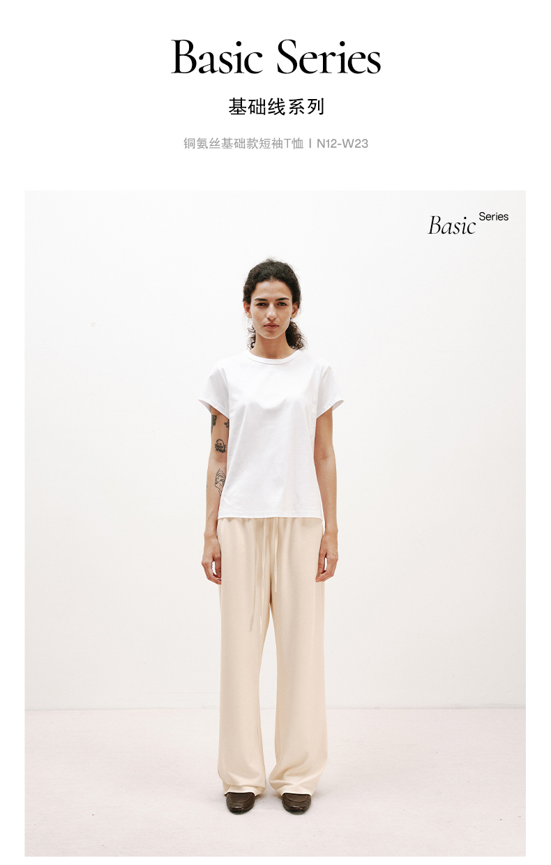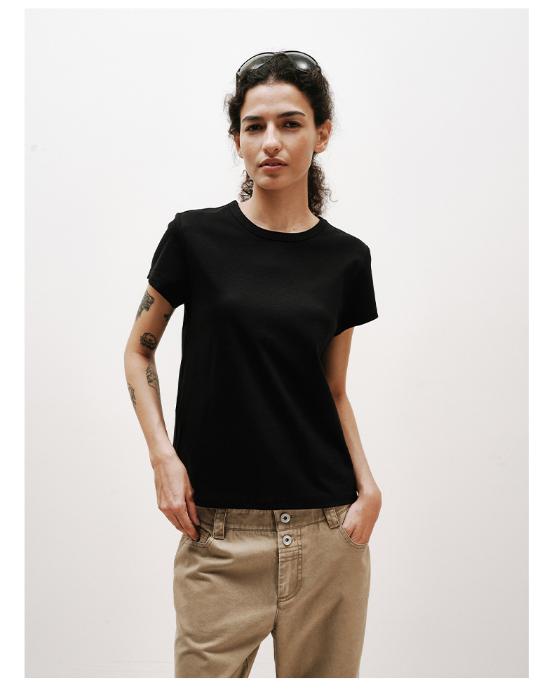 NUTH铜氨丝百搭基础正肩修身圆领短袖T恤女 黑色/白色