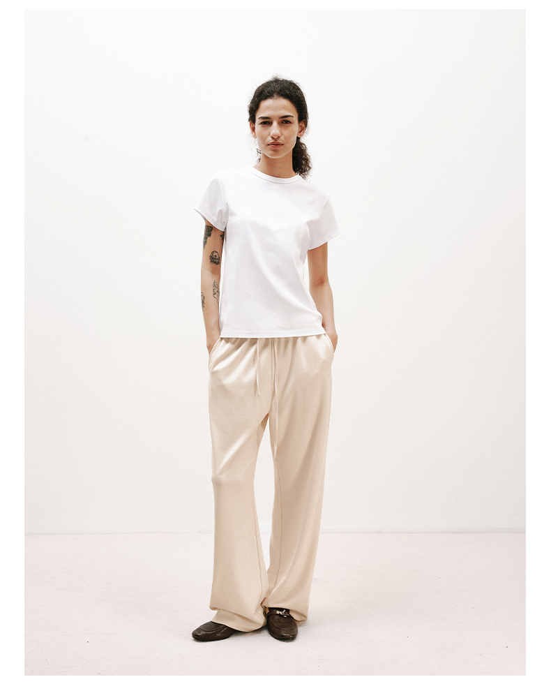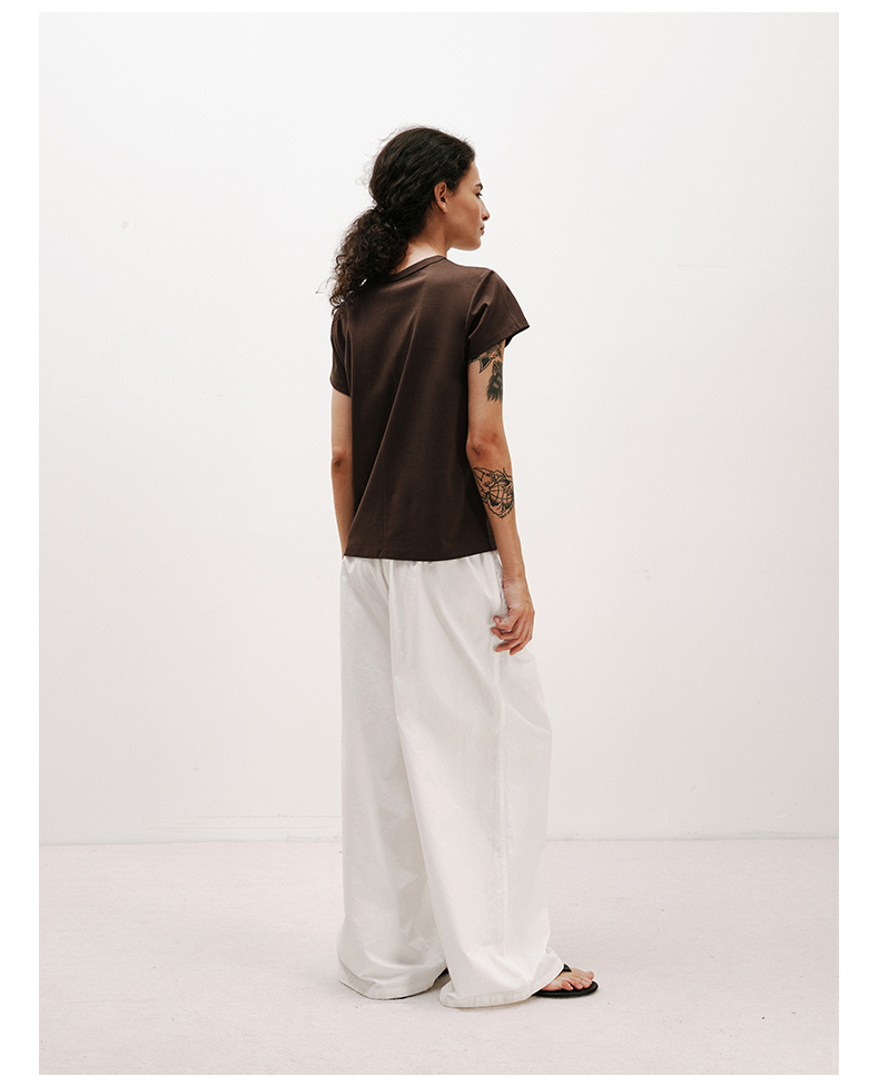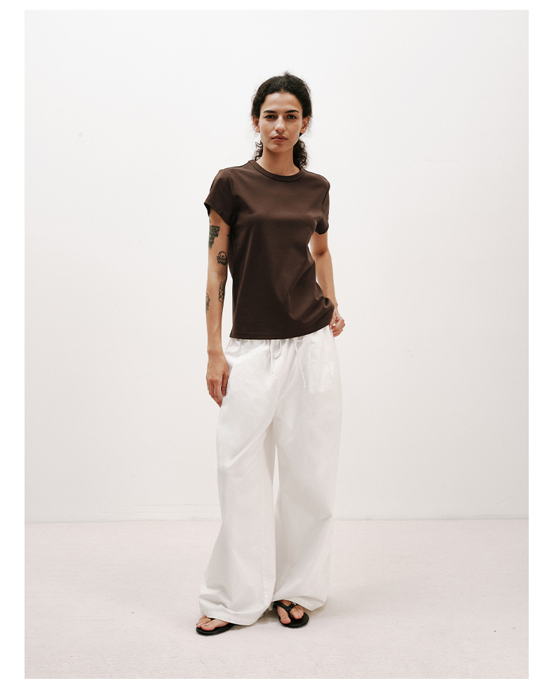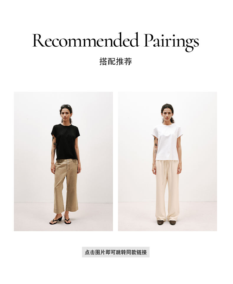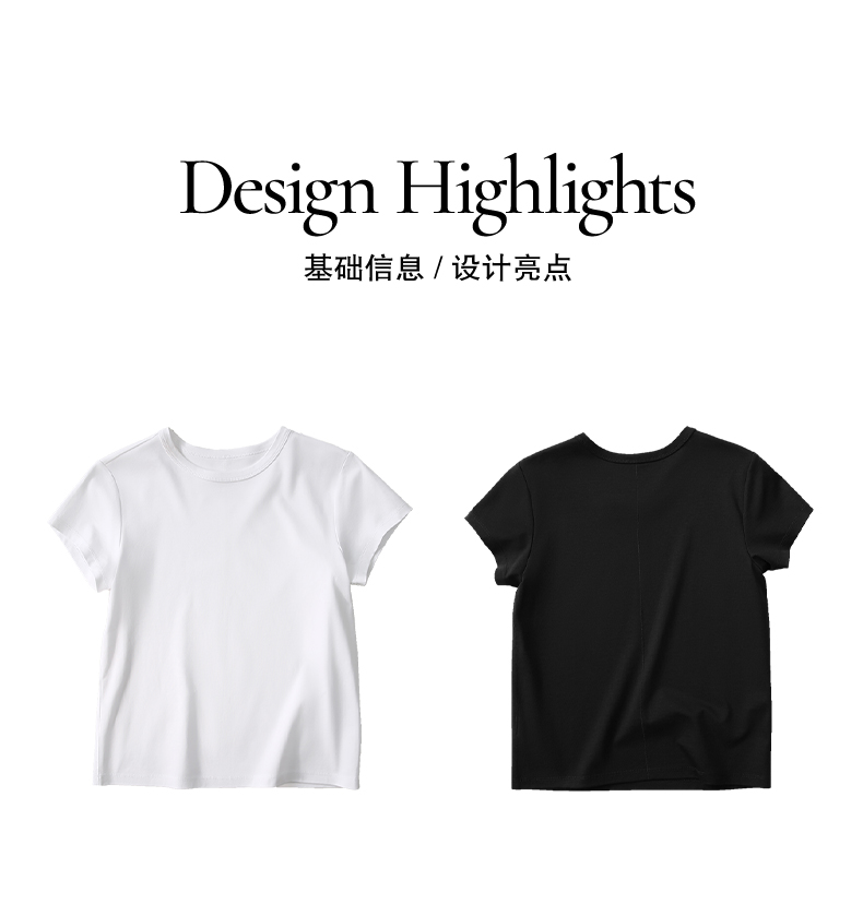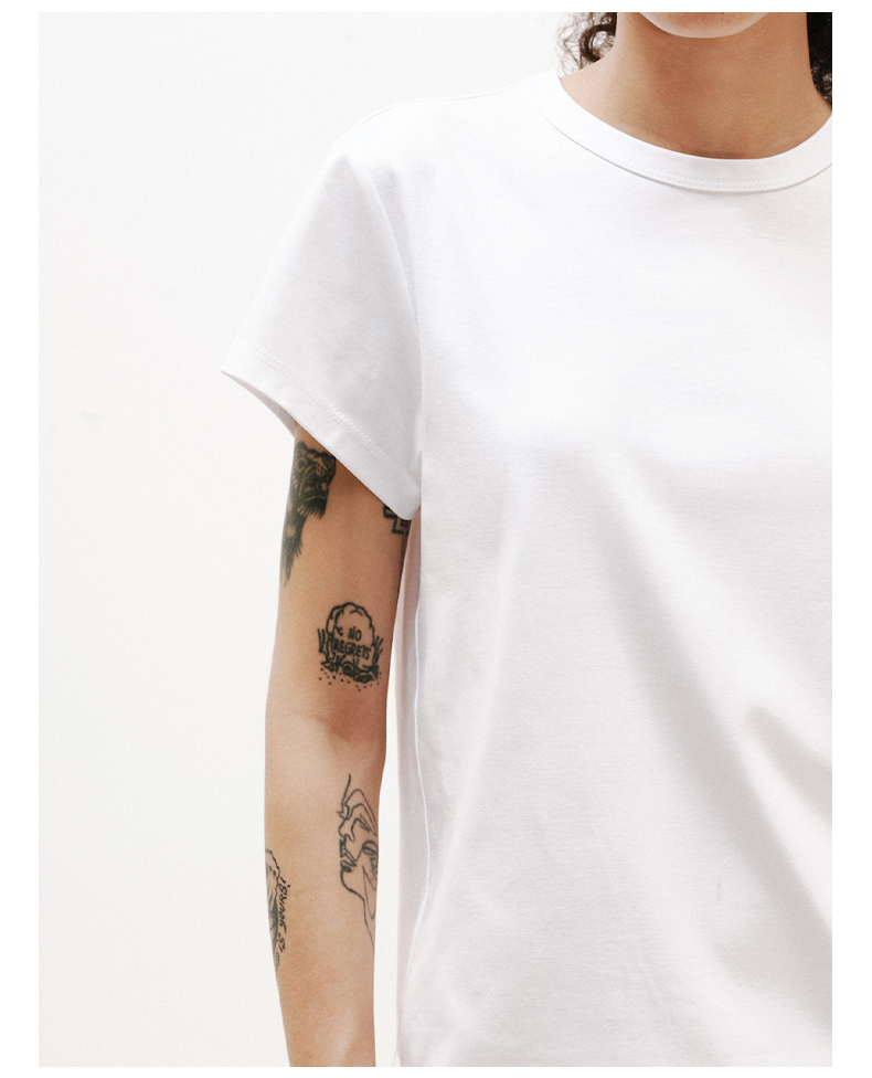 NUTH铜氨丝百搭基础正肩修身圆领短袖T恤女 黑色/白色