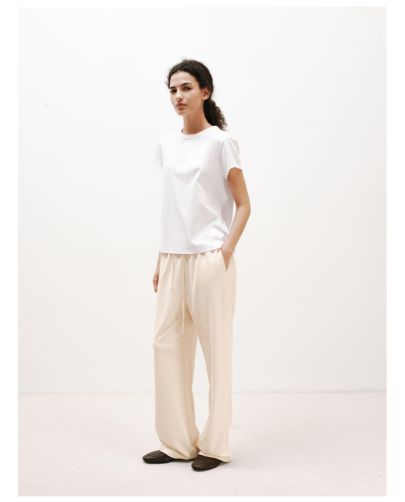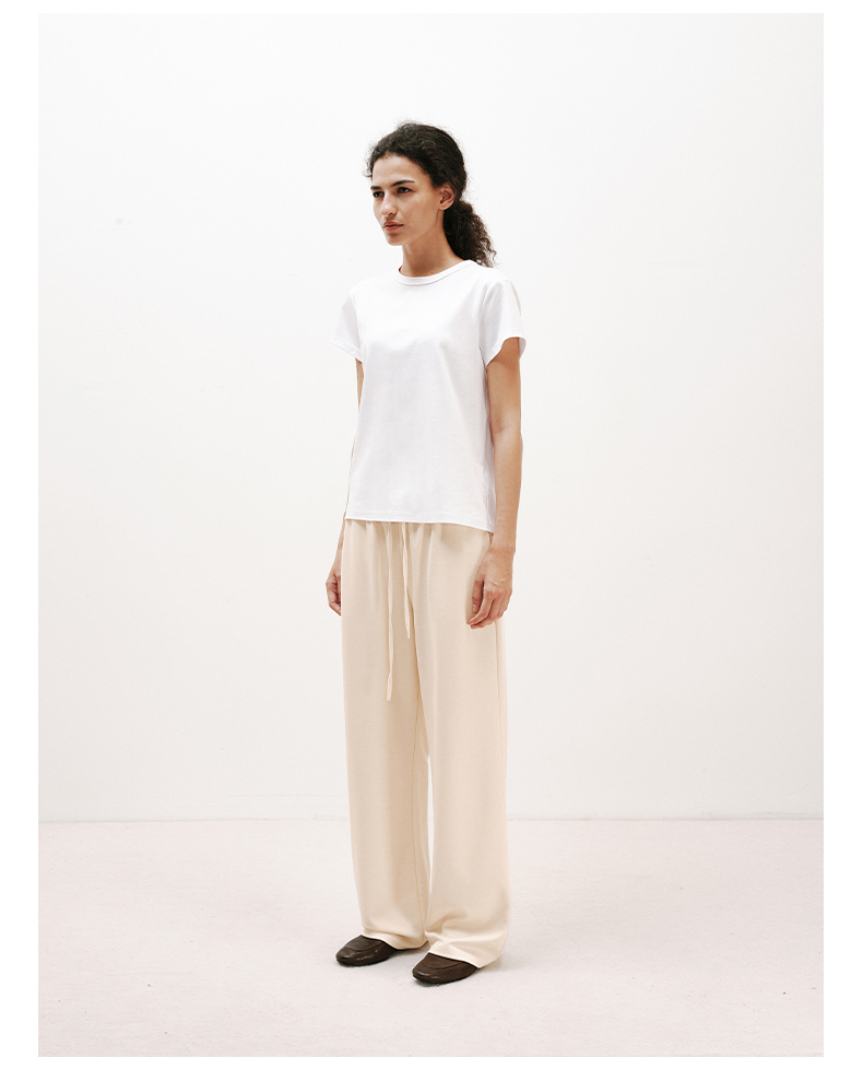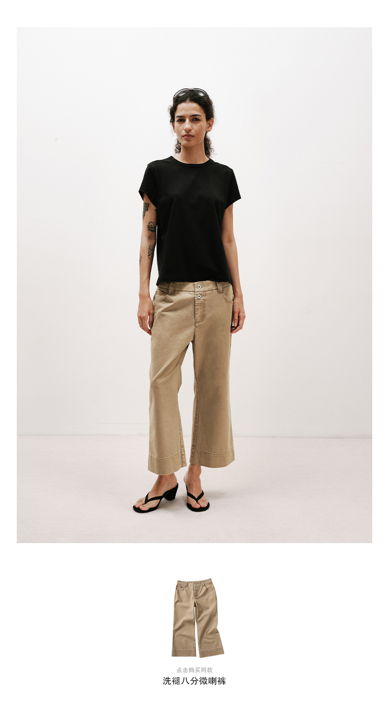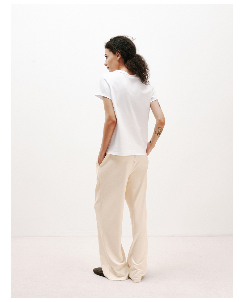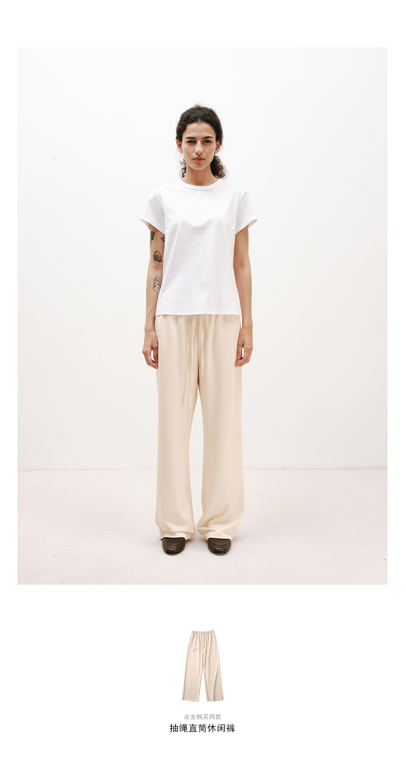 NUTH铜氨丝百搭基础正肩修身圆领短袖T恤女 黑色/白色