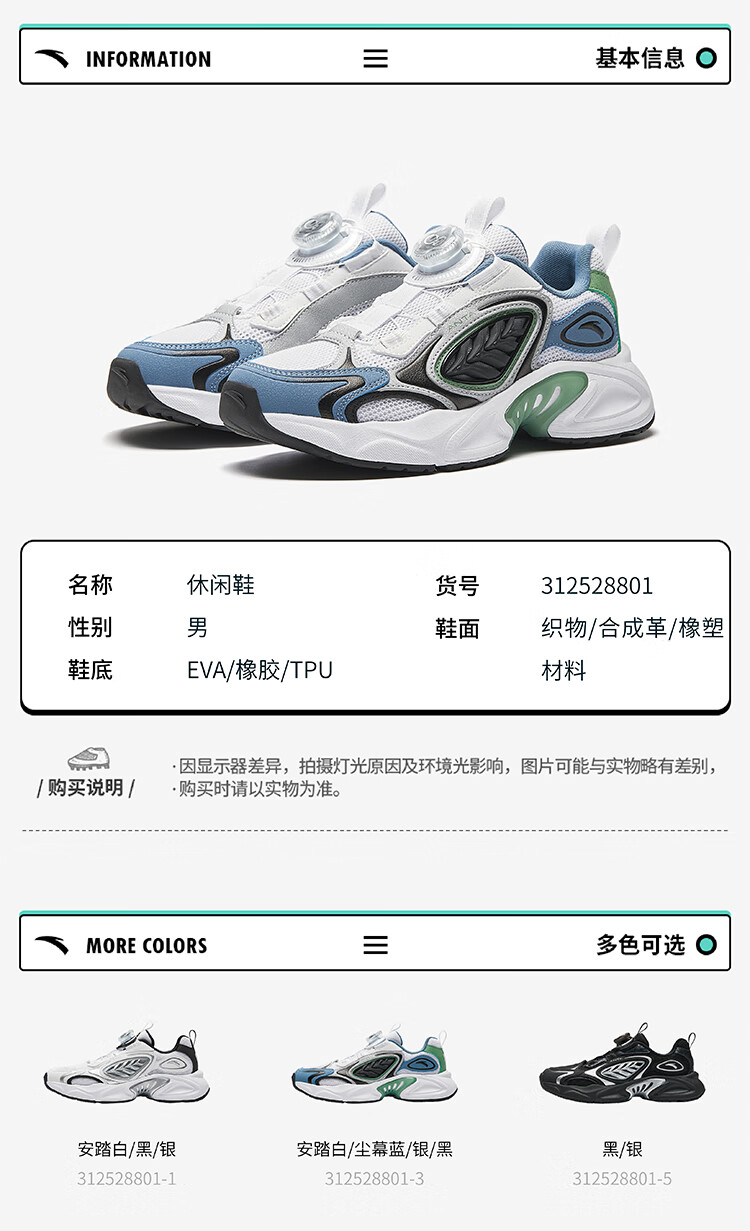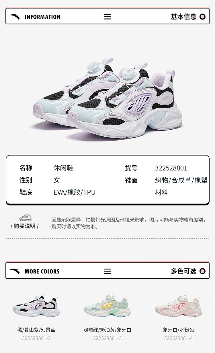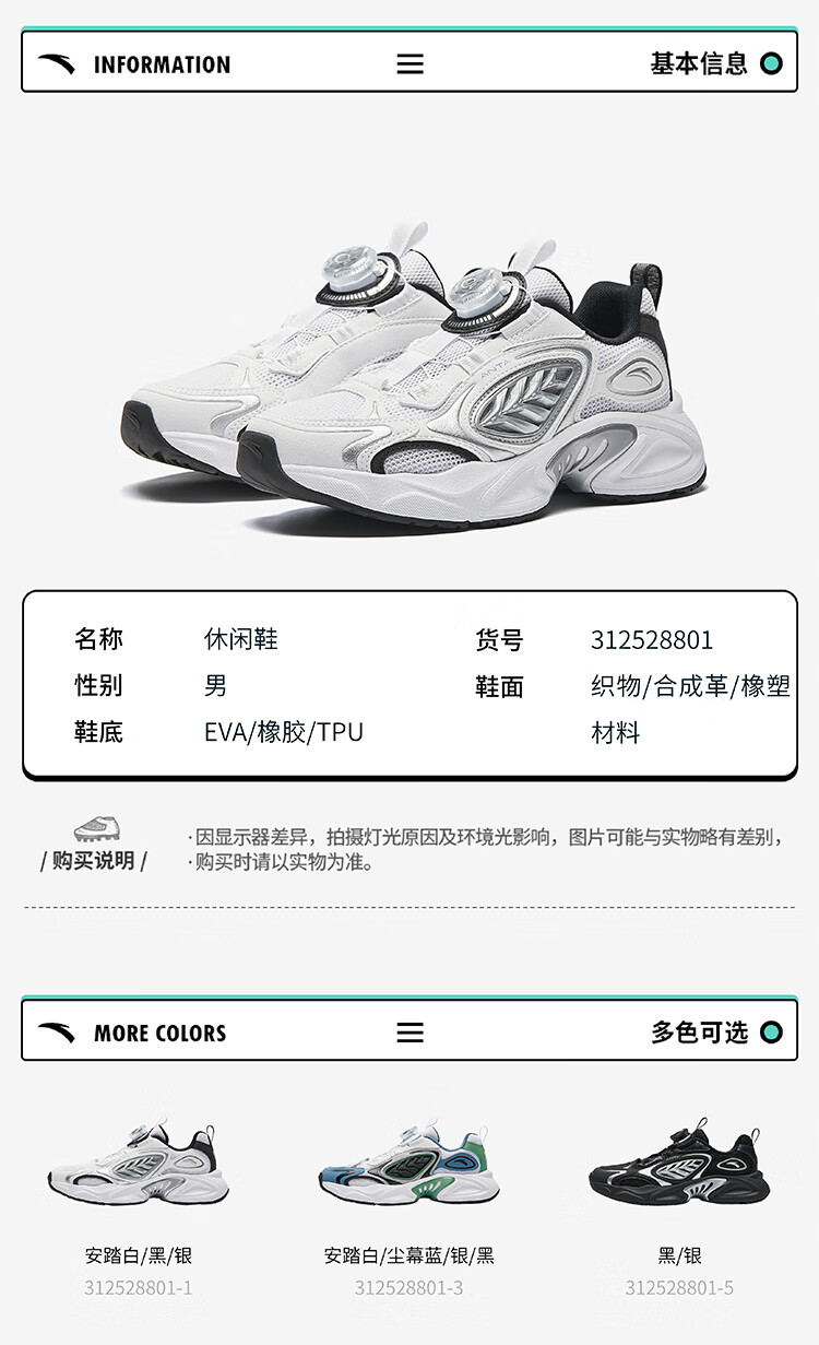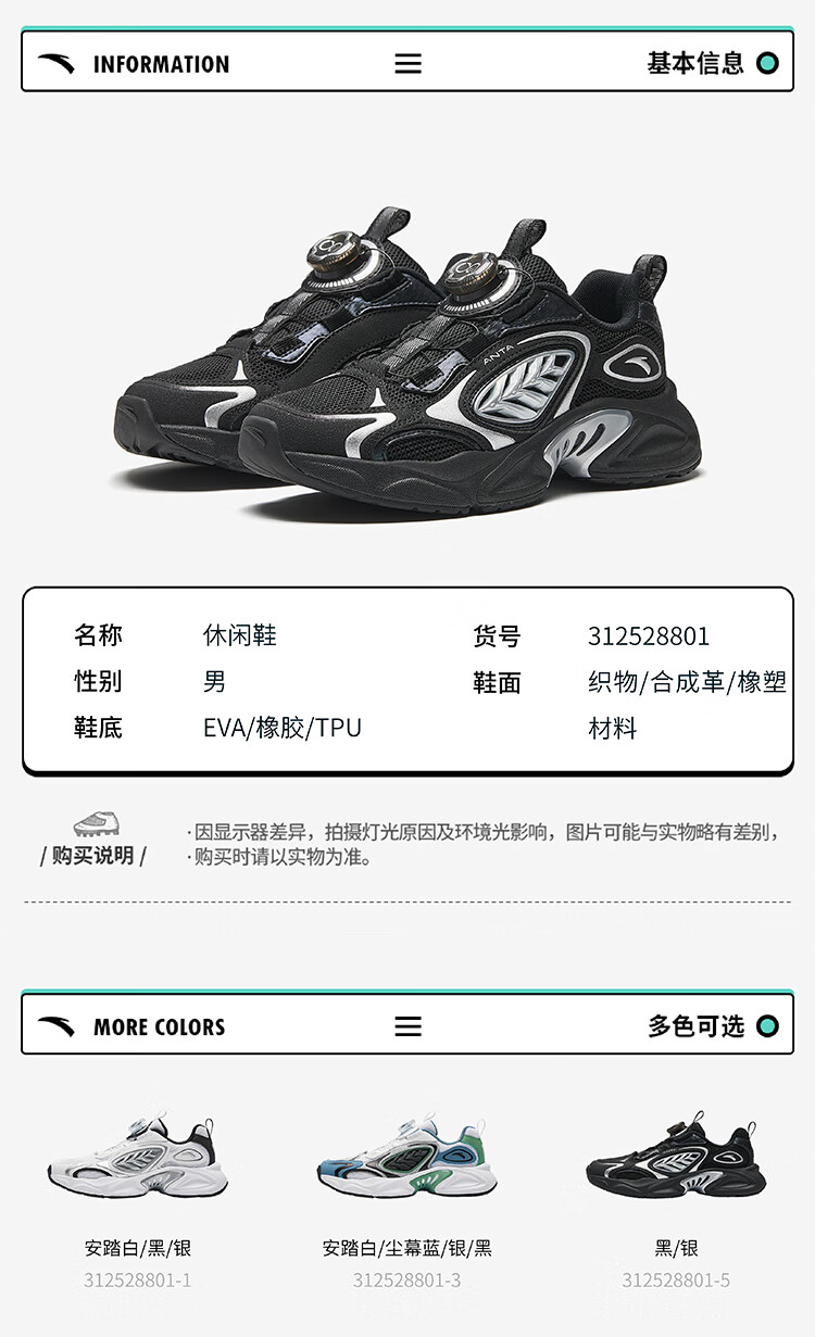 安踏儿童运动鞋男大童2025夏季旋钮低帮星游休闲鞋312528801