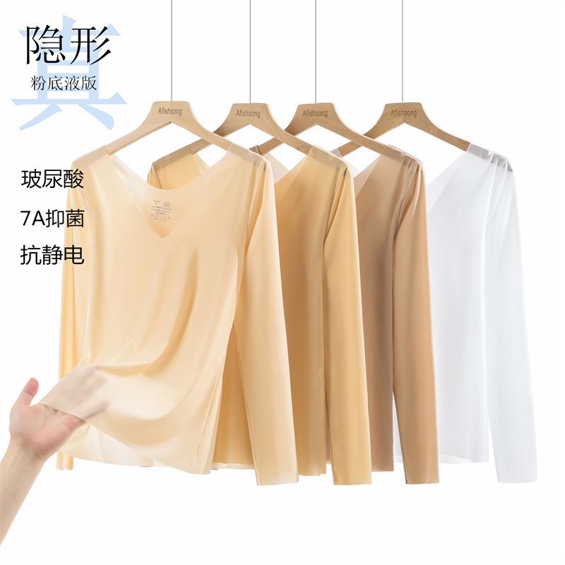 【玻尿酸肌底衣】超薄冰丝无痕肉色肌底衣肤色打底衫V领隐形打底
