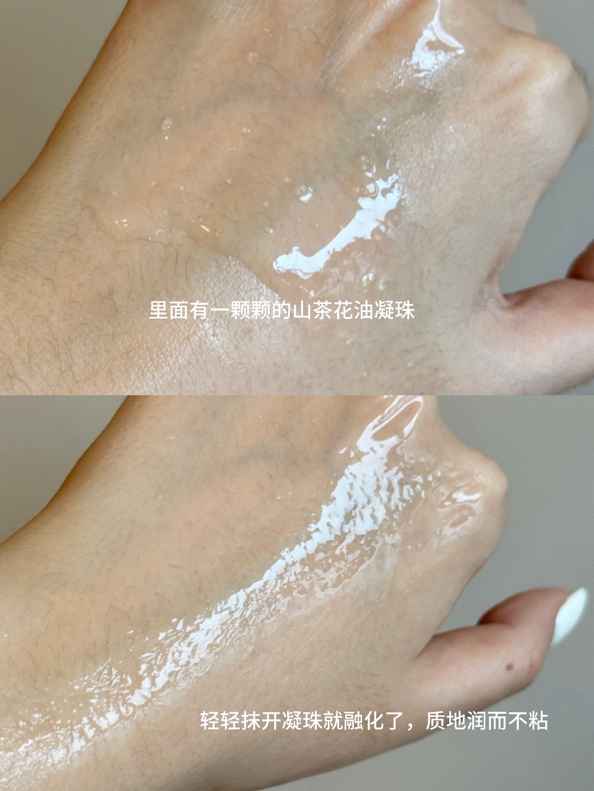 这个过程超享受的,他里面有一颗颗山茶花精华油小凝珠,一揉就会爆开,水油一起往毛孔里钻,肤感超级沁润💦